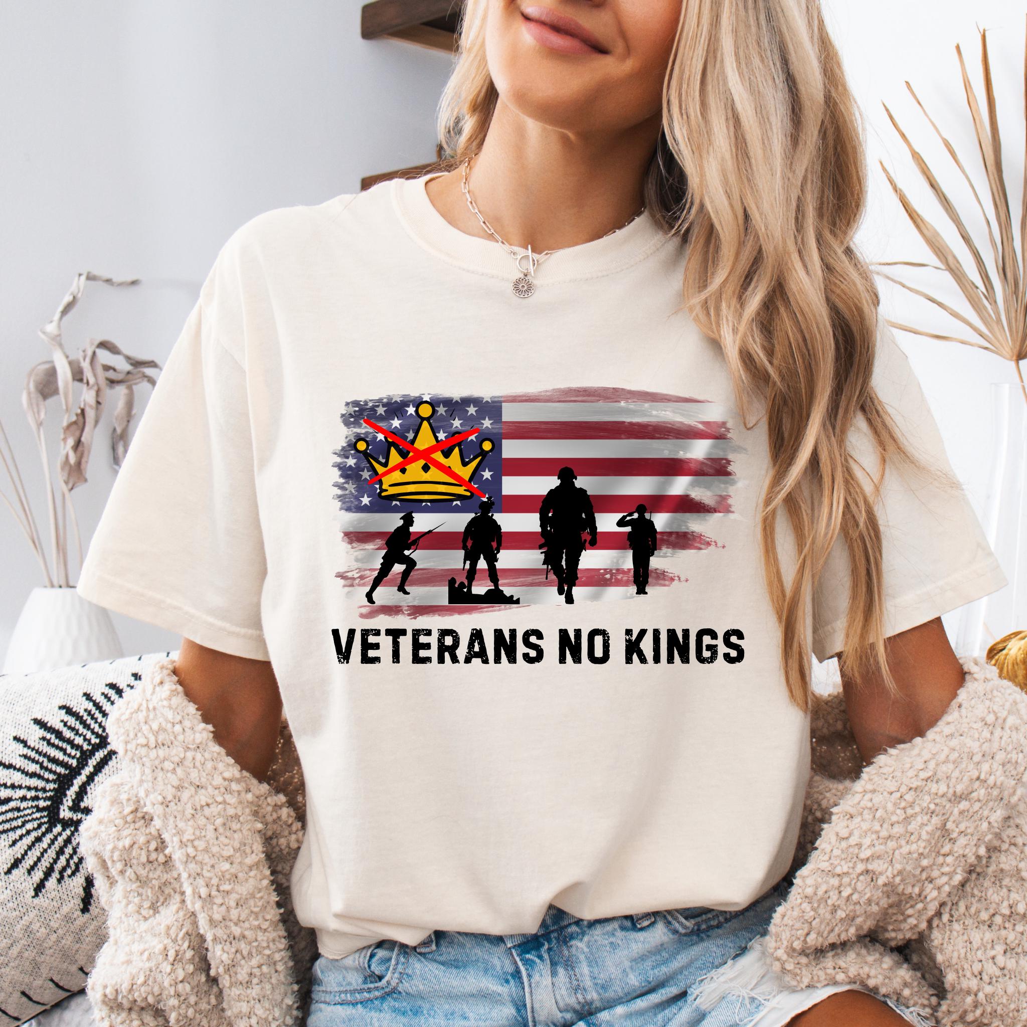 Keywords: veterans no kings shirt, patriotic freedom tee, american veteran gift, anti tyrant apparel, military pride shirt, usa flag t-shirt, independence day top, pro democracy apparel, veteran statement shirt
