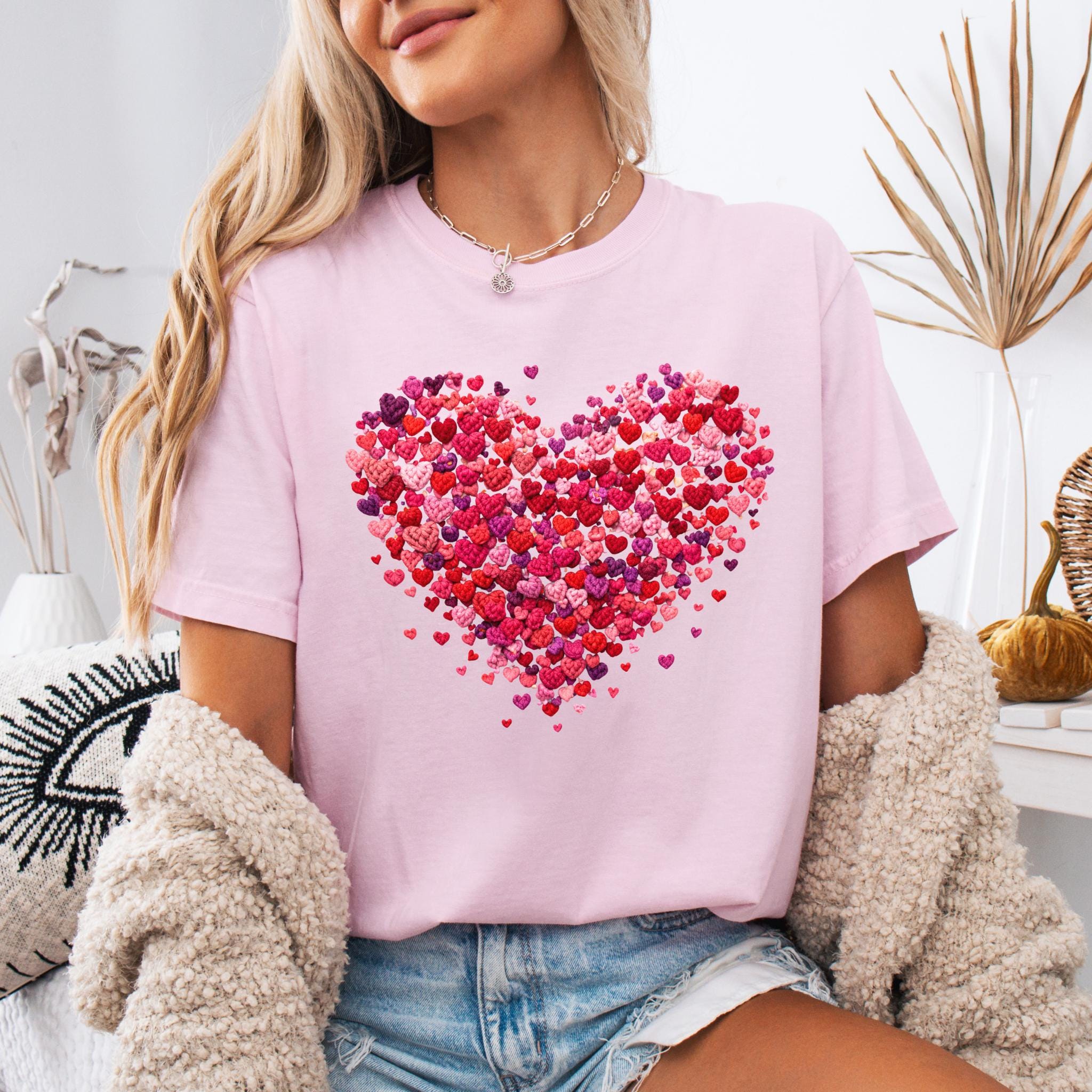 Celebrate love in the coziest way with this Faux Yarn Heart T-Shirt, featuring a beautifully layered heart made of tiny pink and red hearts. This romantic yet minimalist design is perfect for Valentine’s Day, date nights, or simply spreading love all year long.