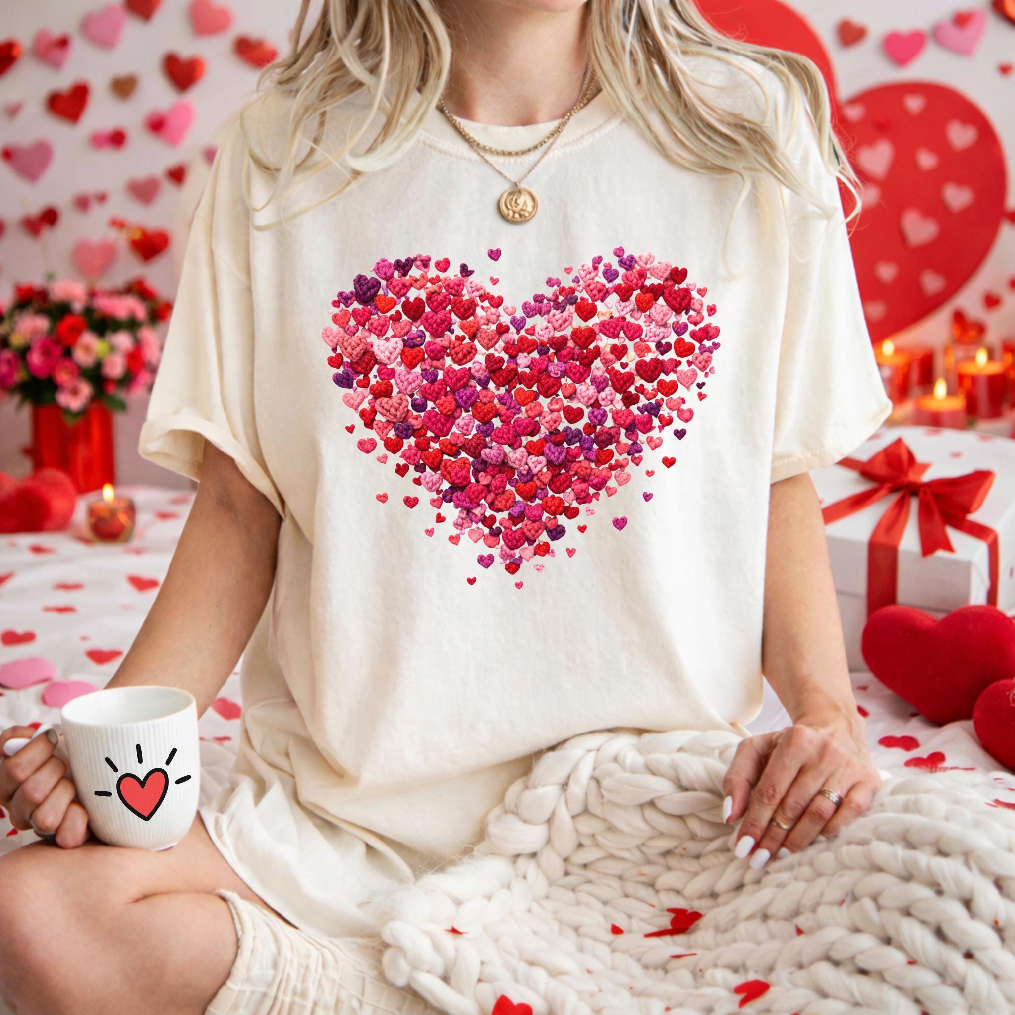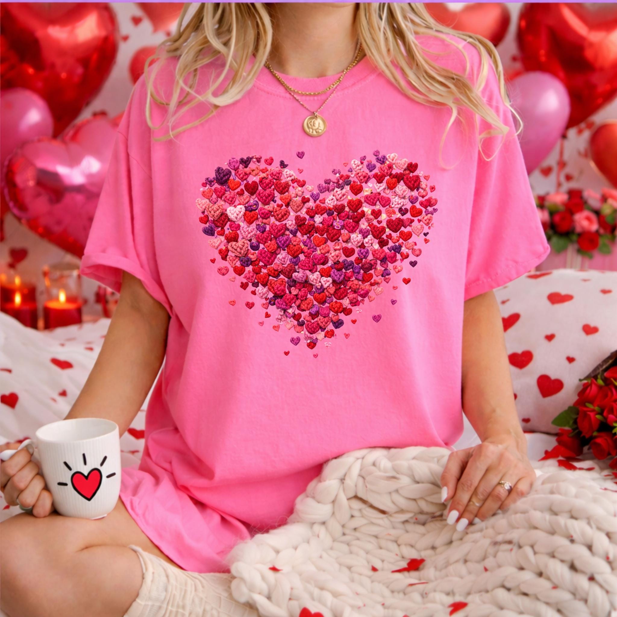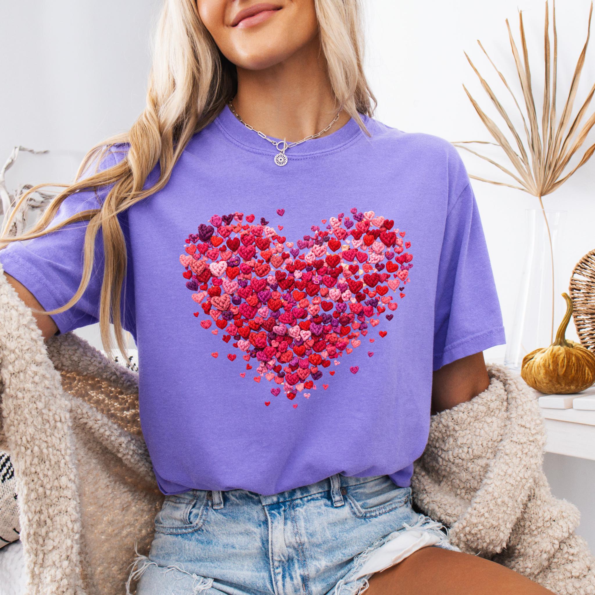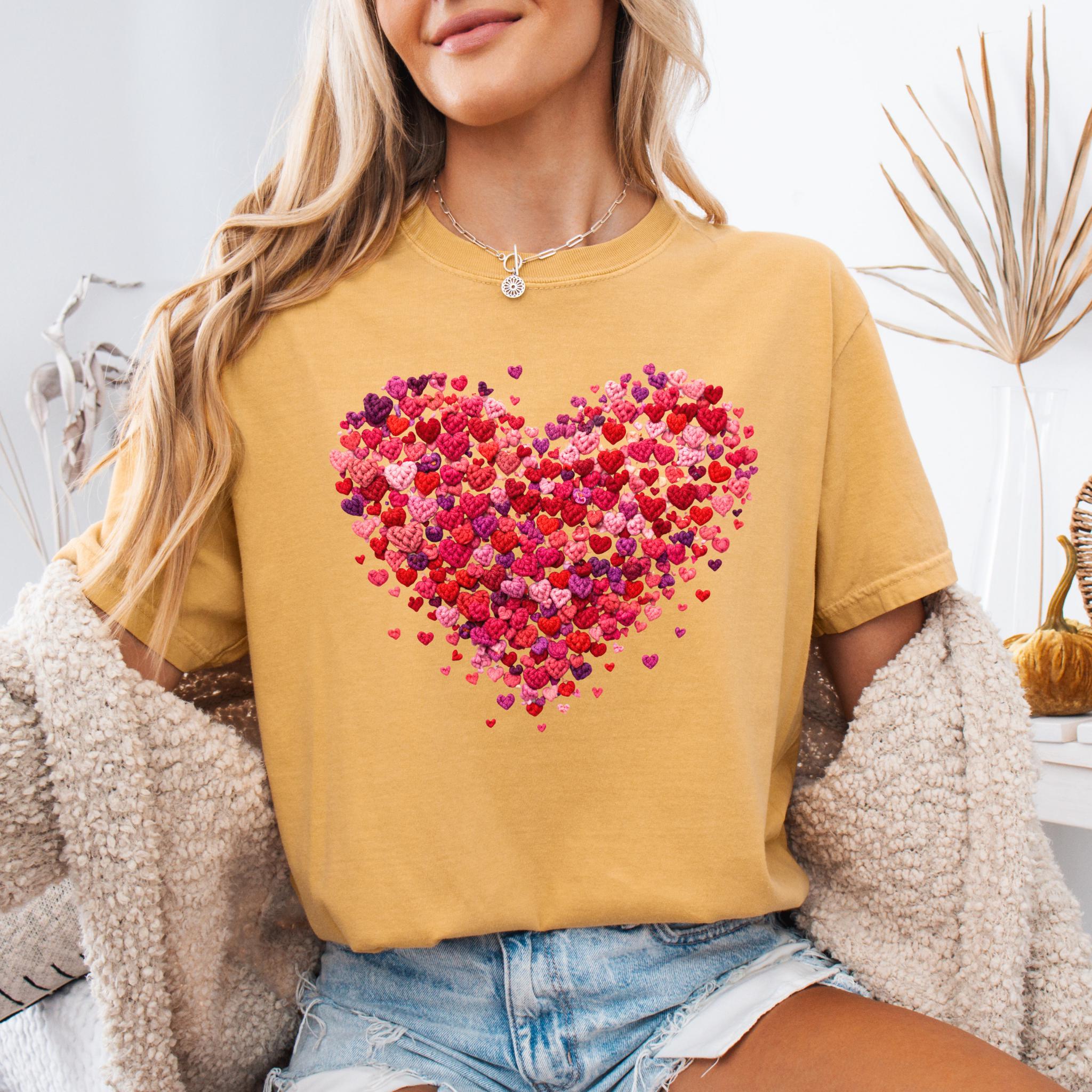 Celebrate love in the coziest way with this Faux Yarn Valentine Heart T-Shirt, featuring a beautifully layered heart made of tiny pink and red hearts. This romantic yet minimalist design is perfect for Valentine’s Day, date nights, or simply spreading love all year long.