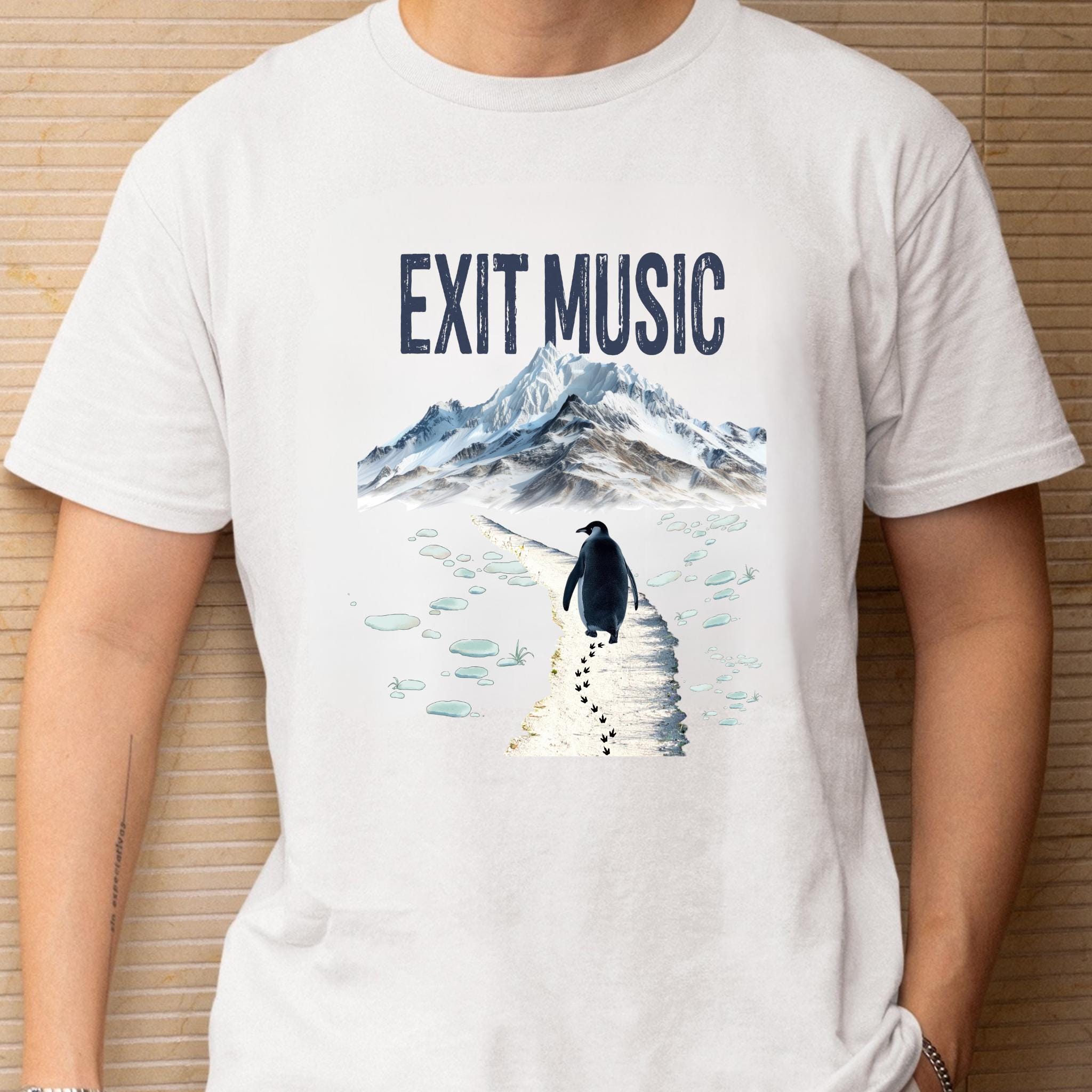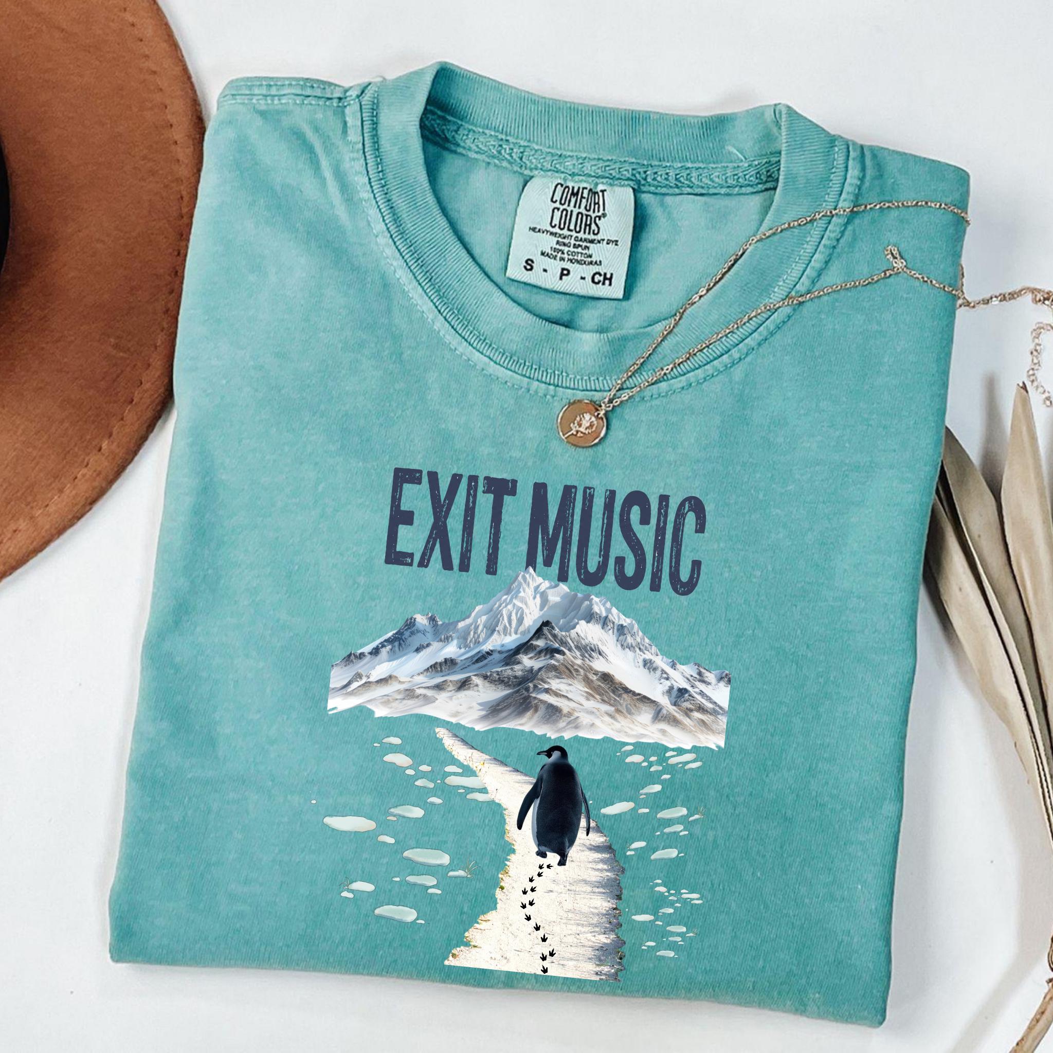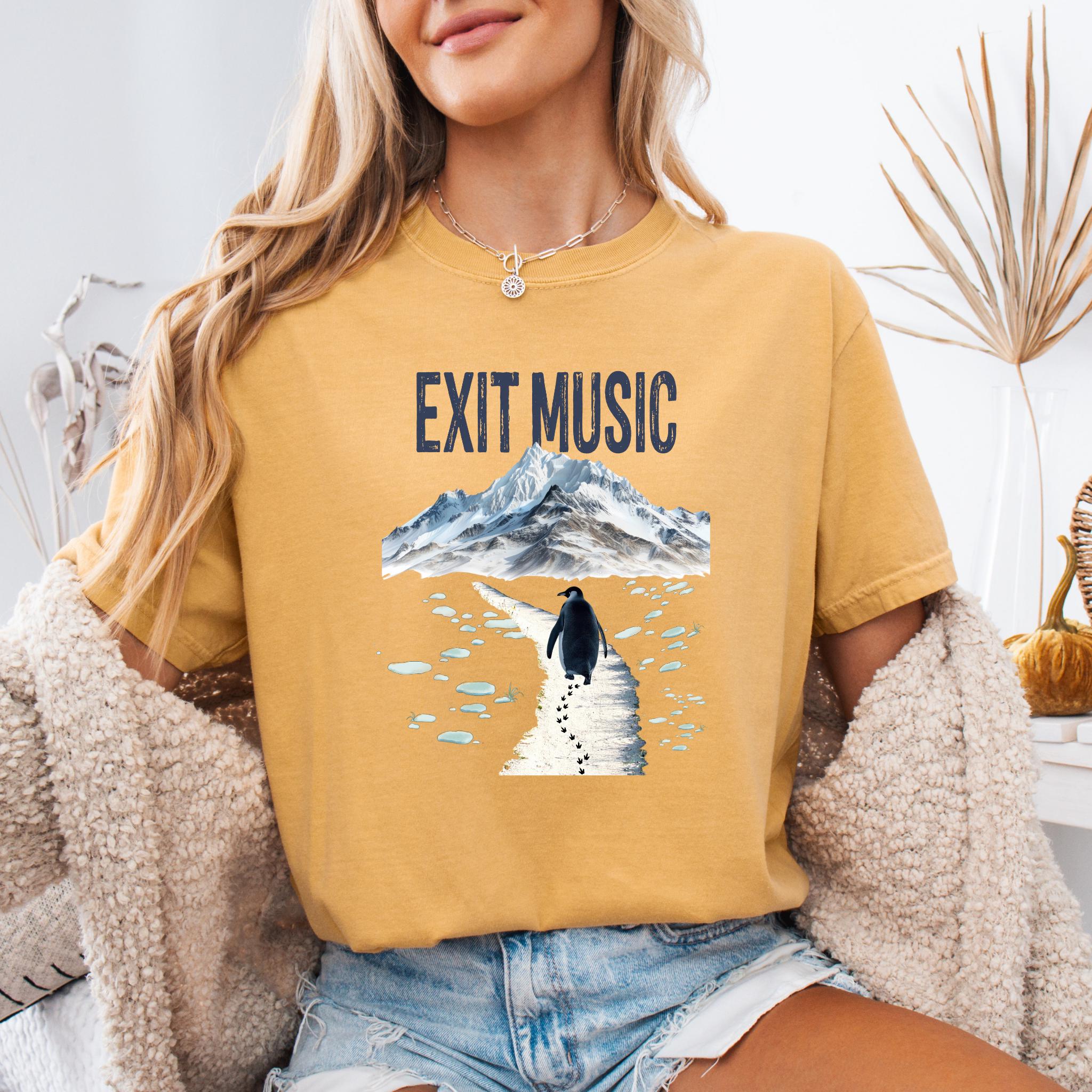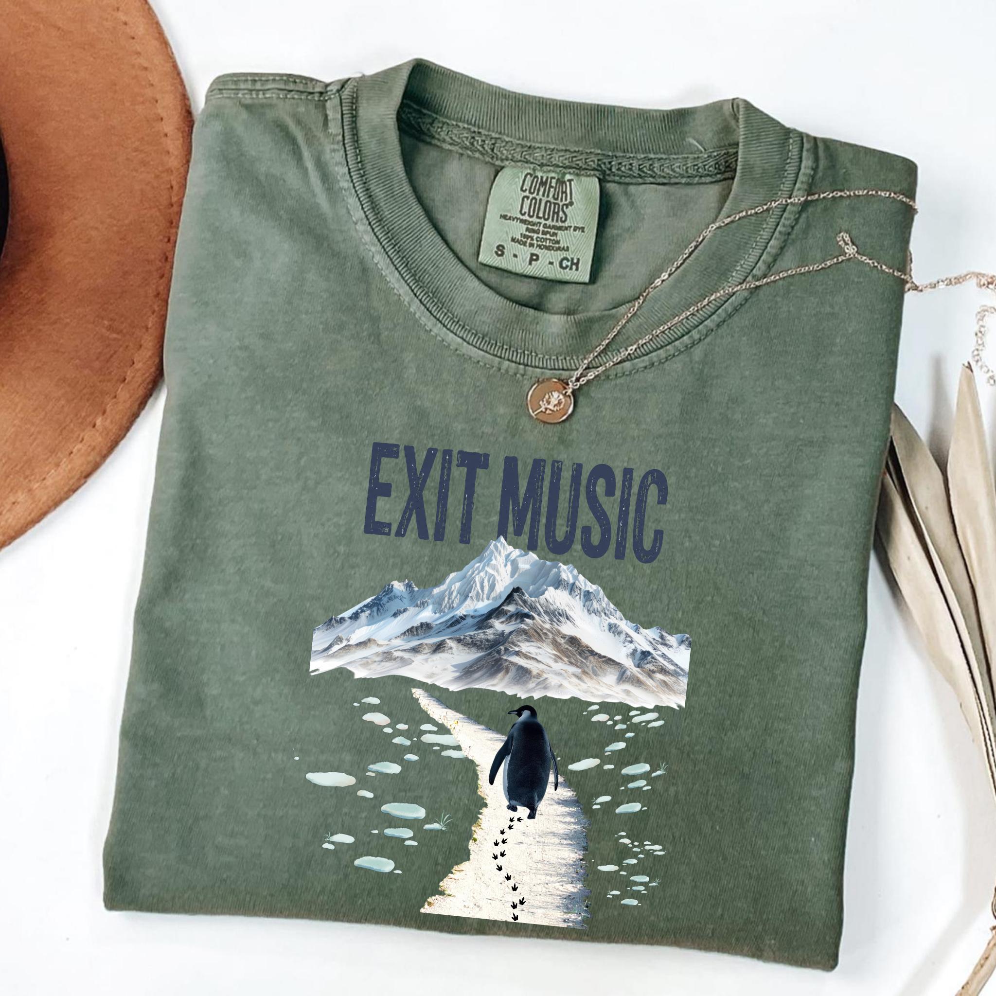This Exit Music But Why? penguin t-shirt is inspired by the viral clip of a penguin walking away from the group — a moment that became a symbol of modern existential humor, burnout, and quiet confusion.