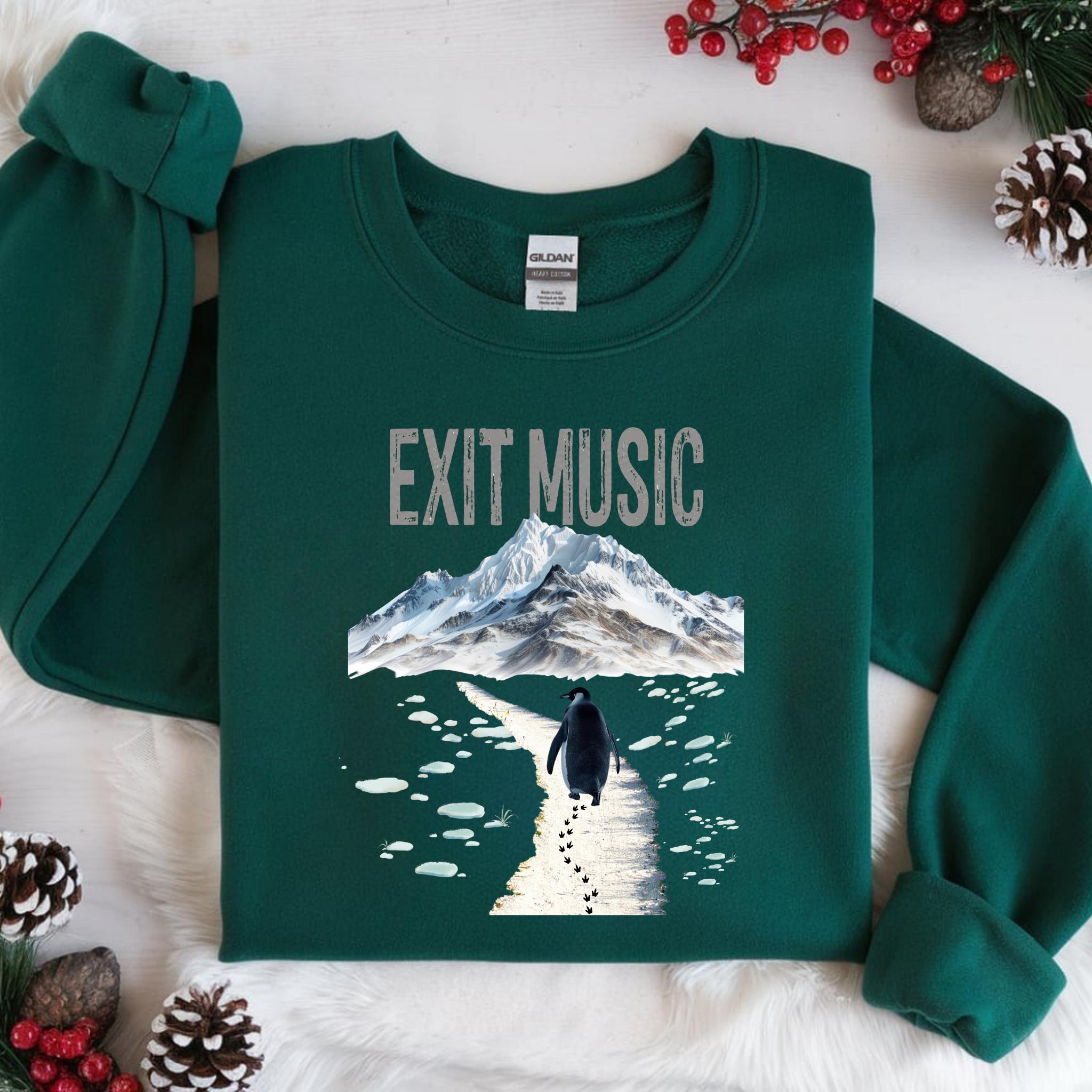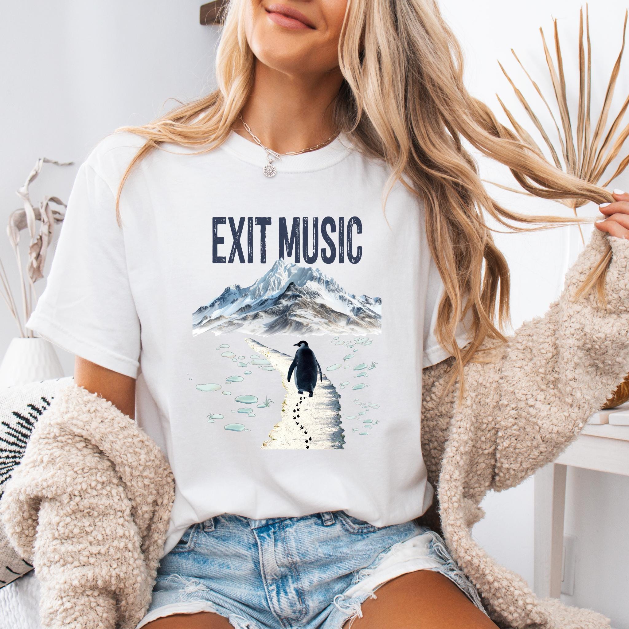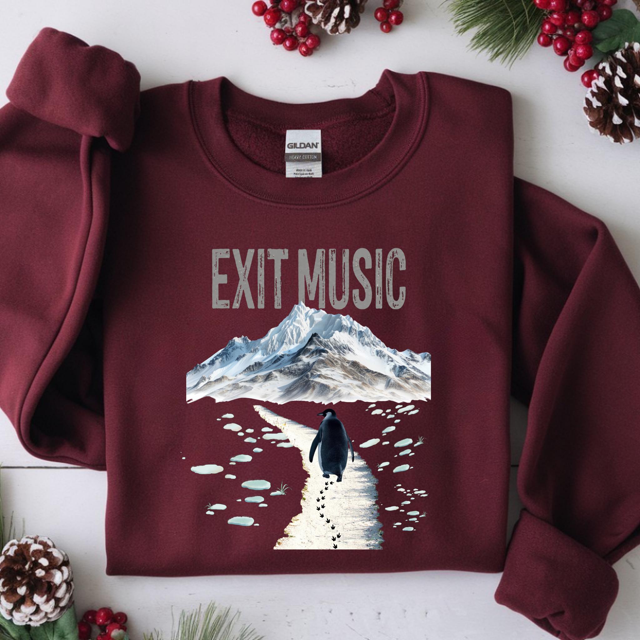 This Exit Music But Why? penguin t-shirt is inspired by the viral clip of a penguin walking away from the group — a moment that became a symbol of modern existential humor, burnout, and quiet confusion.