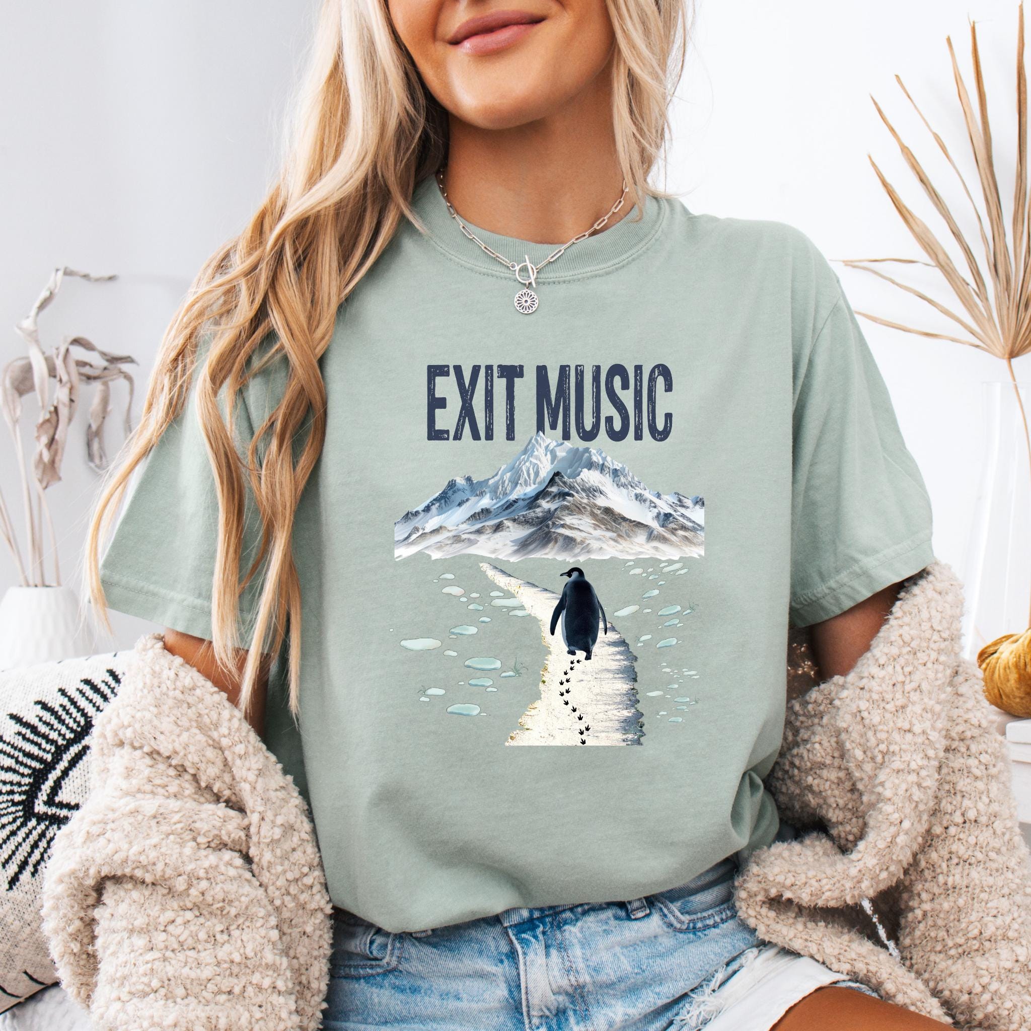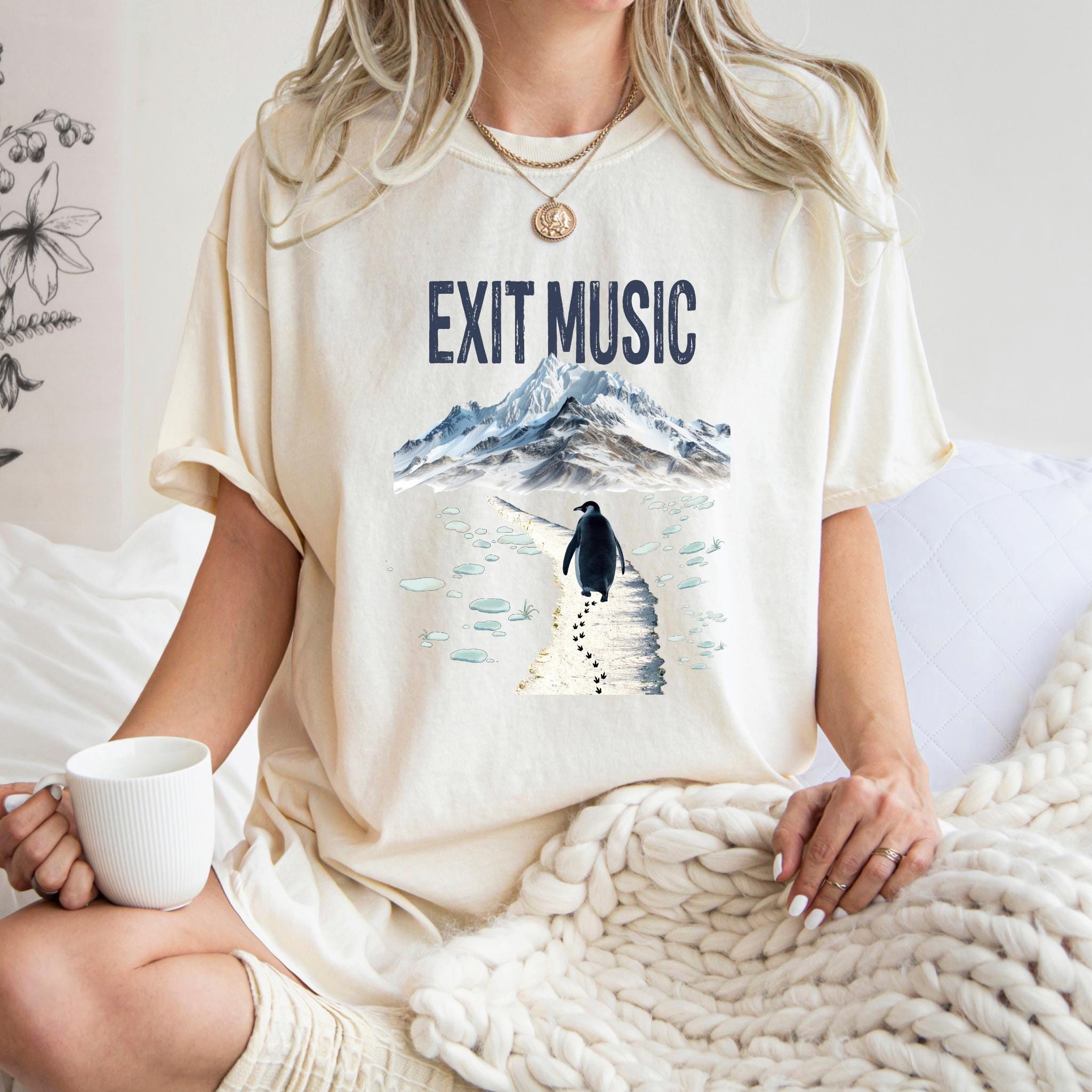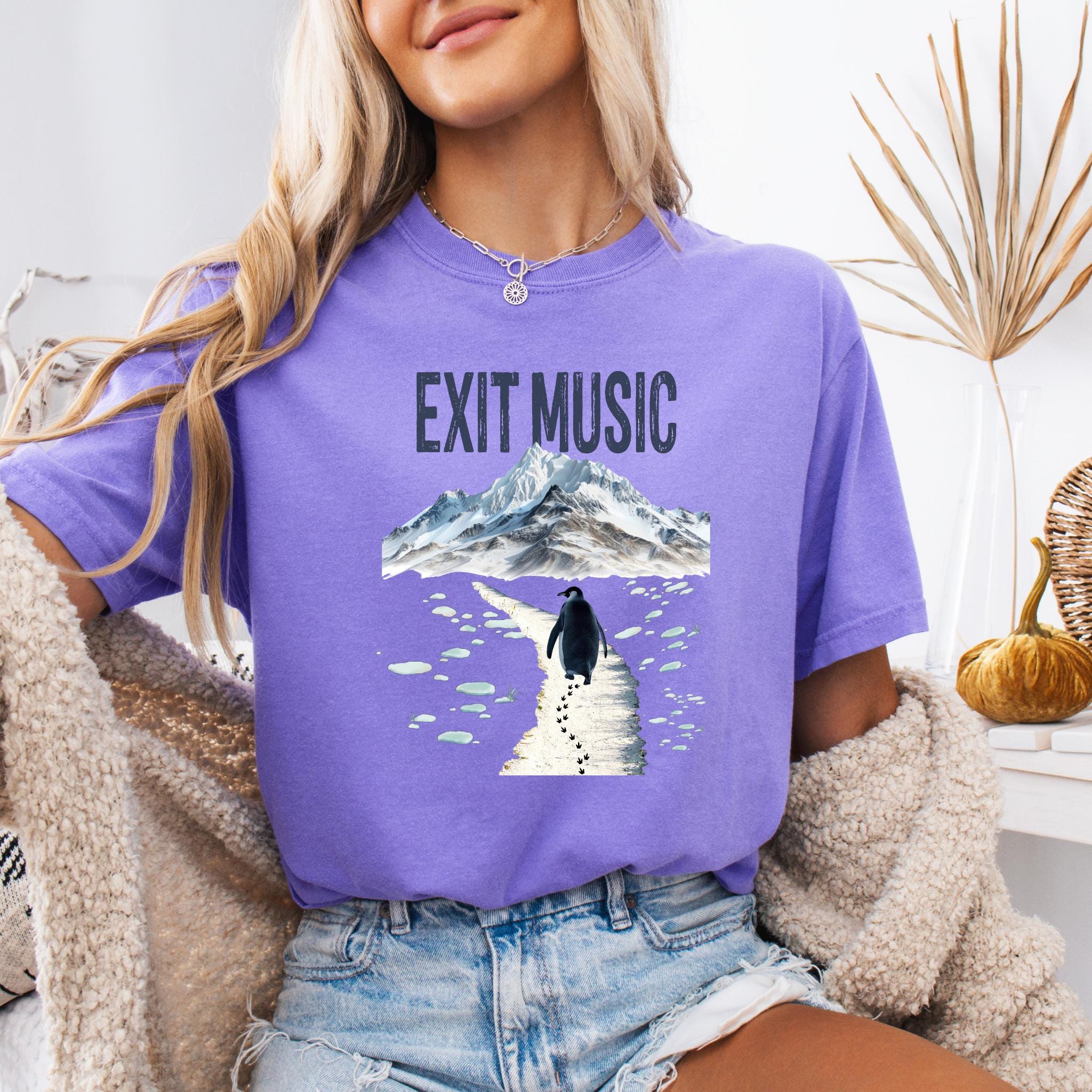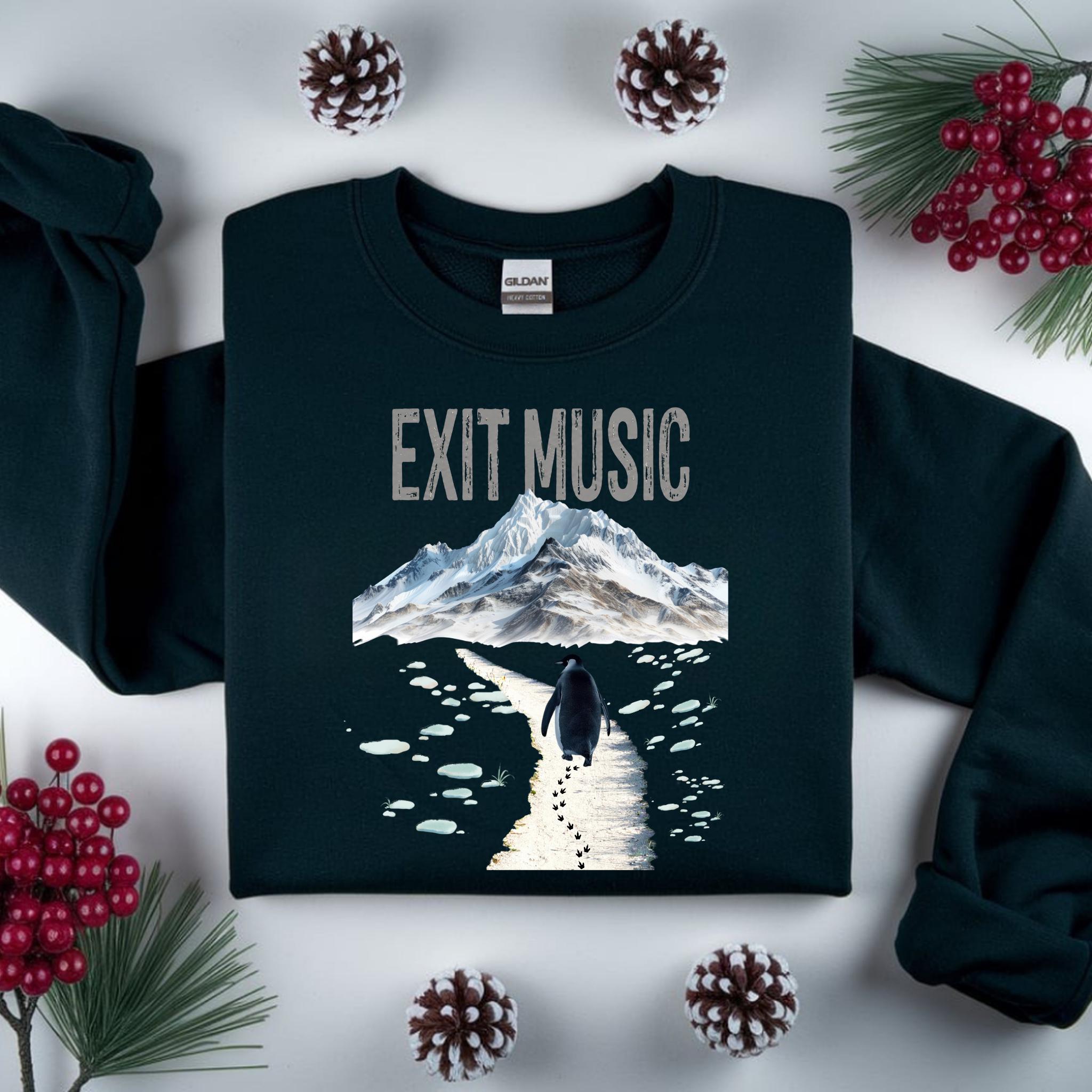 This Exit Music But Why? penguin t-shirt is inspired by the viral clip of a penguin walking away from the group — a moment that became a symbol of modern existential humor, burnout, and quiet confusion.