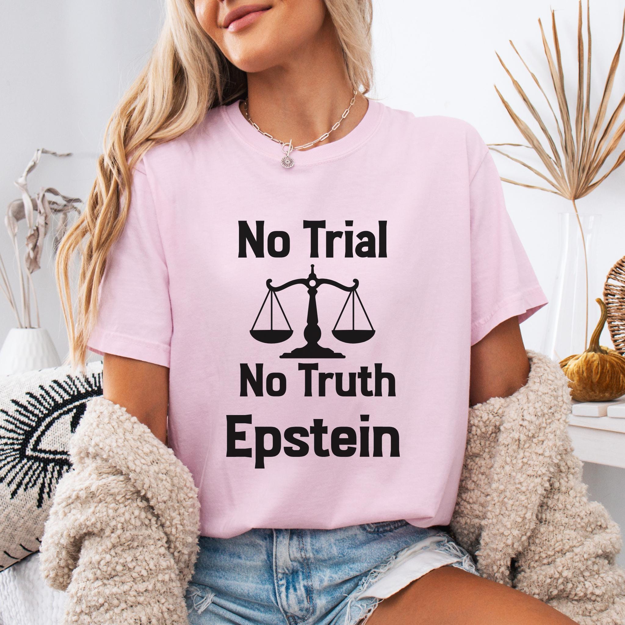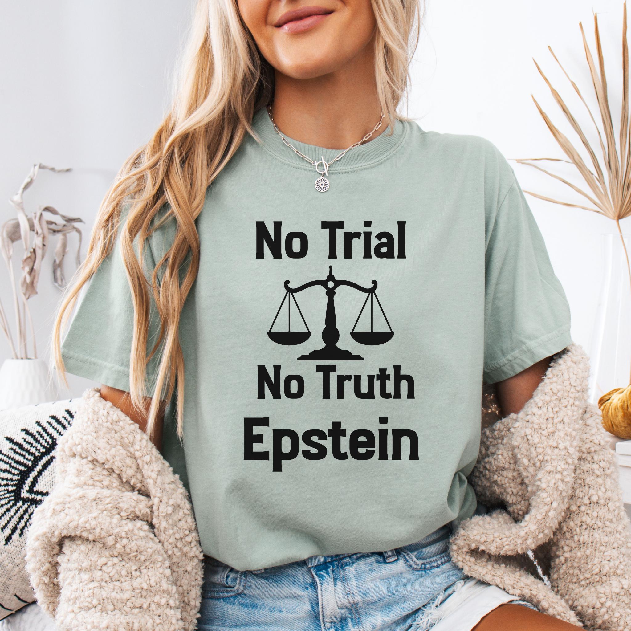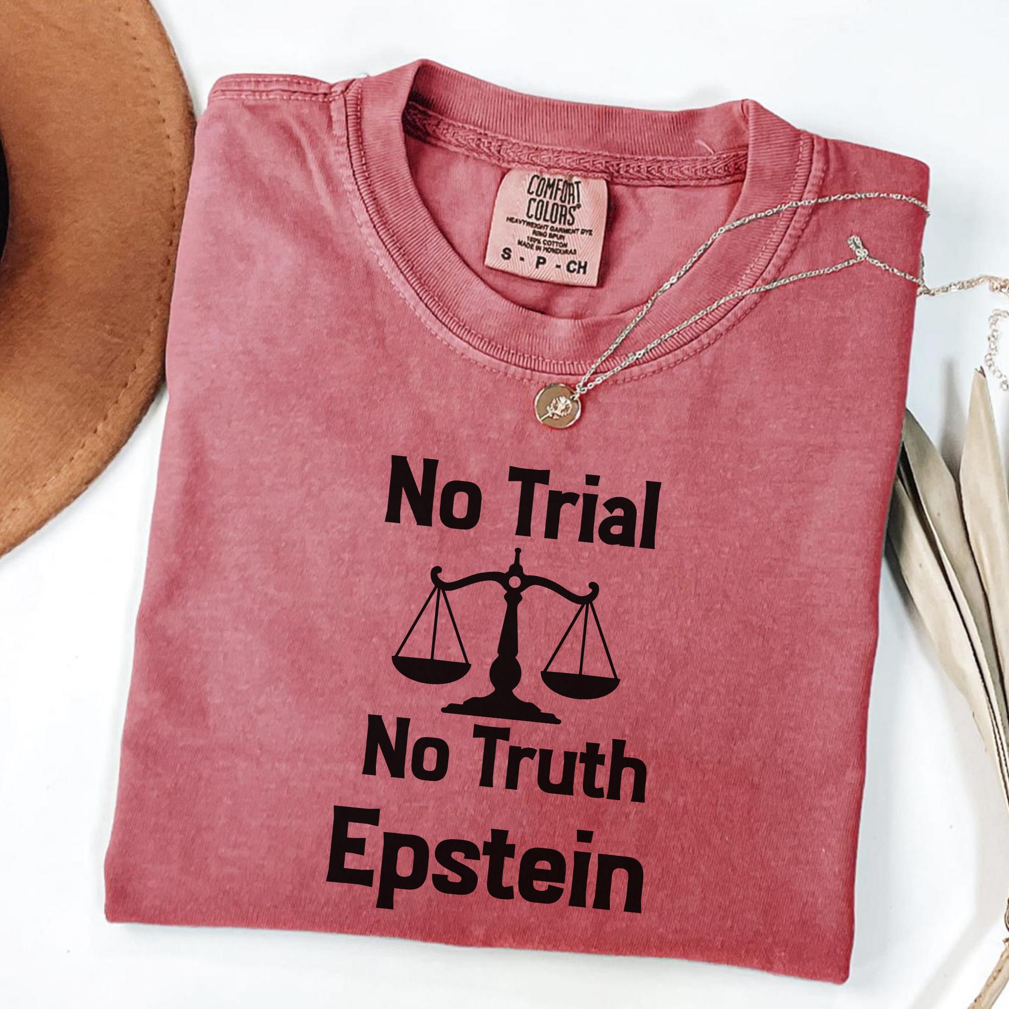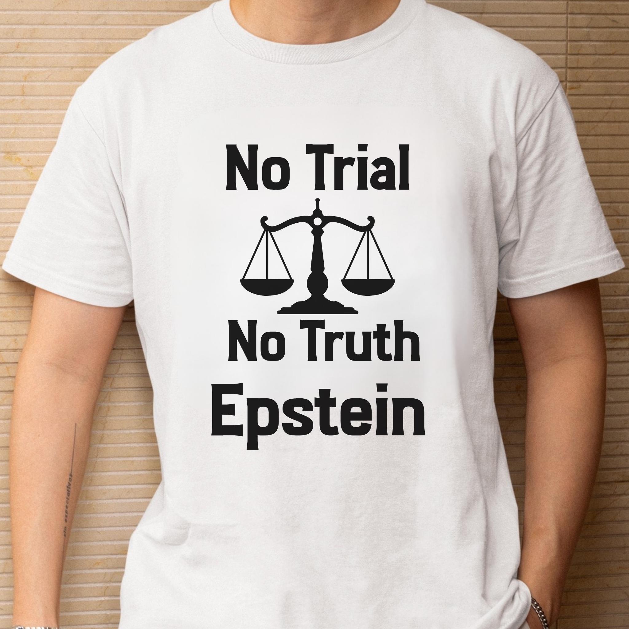 This No Trial No Truth protest Epstein t-shirt is a bold statement piece designed to raise awareness about justice, accountability, and transparency. Featuring a powerful balance scale graphic, this design reflects public frustration with systems that fail to deliver truth and accountability.