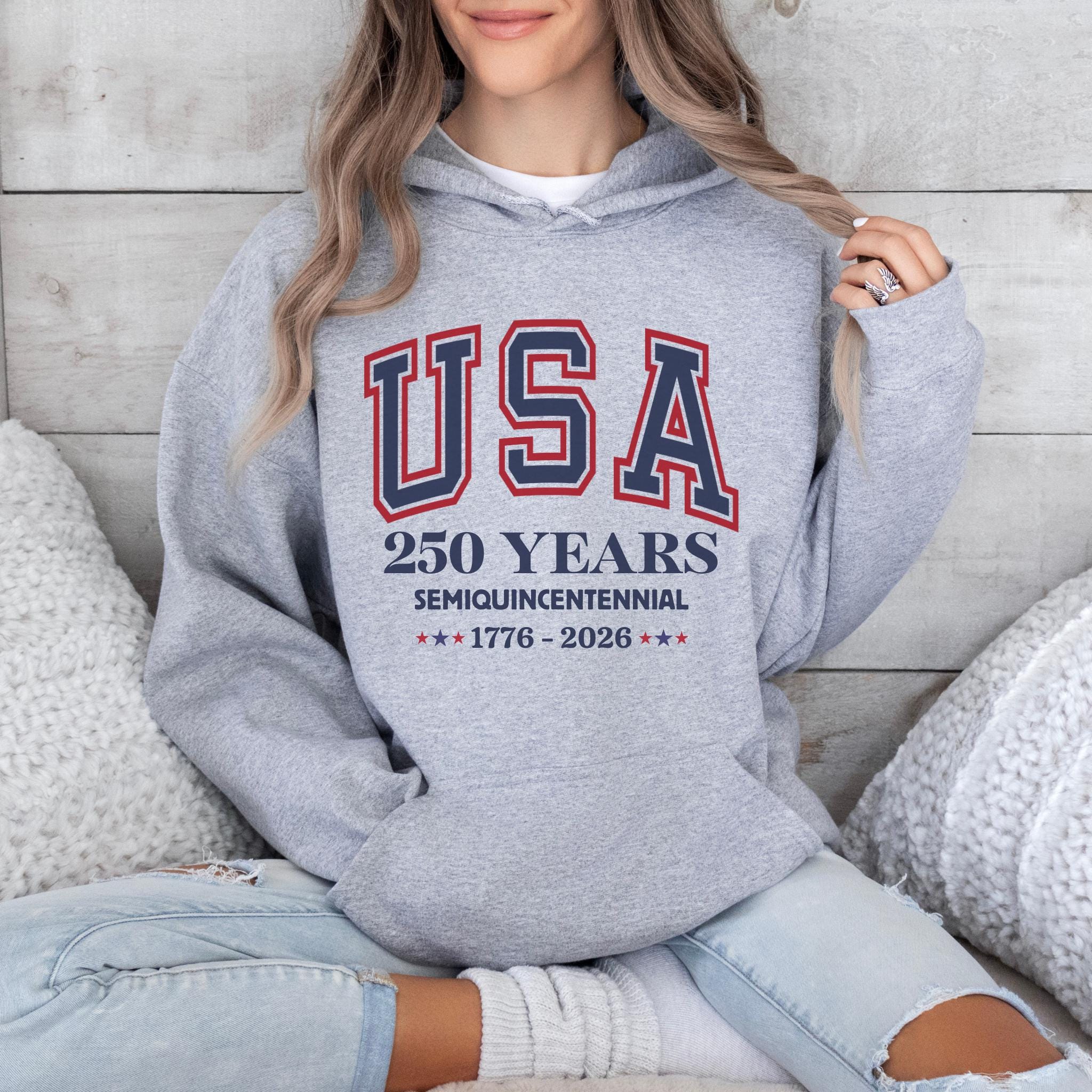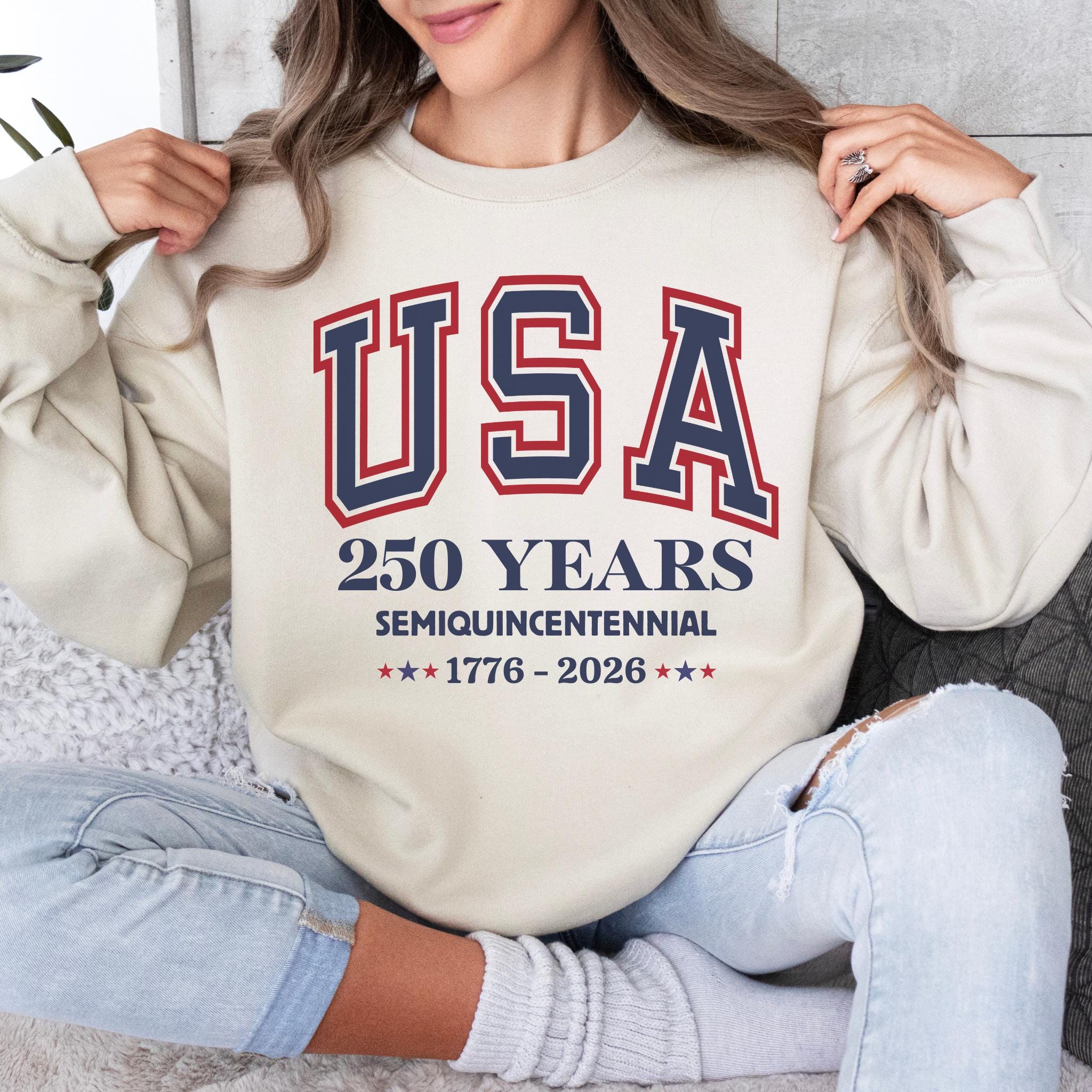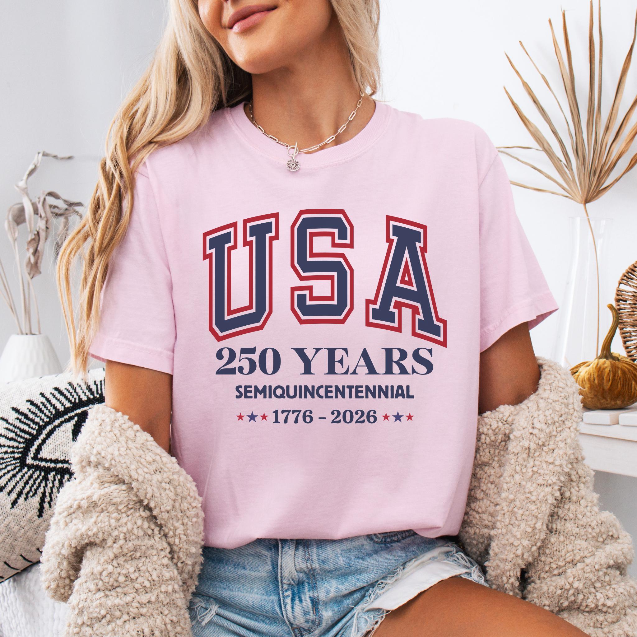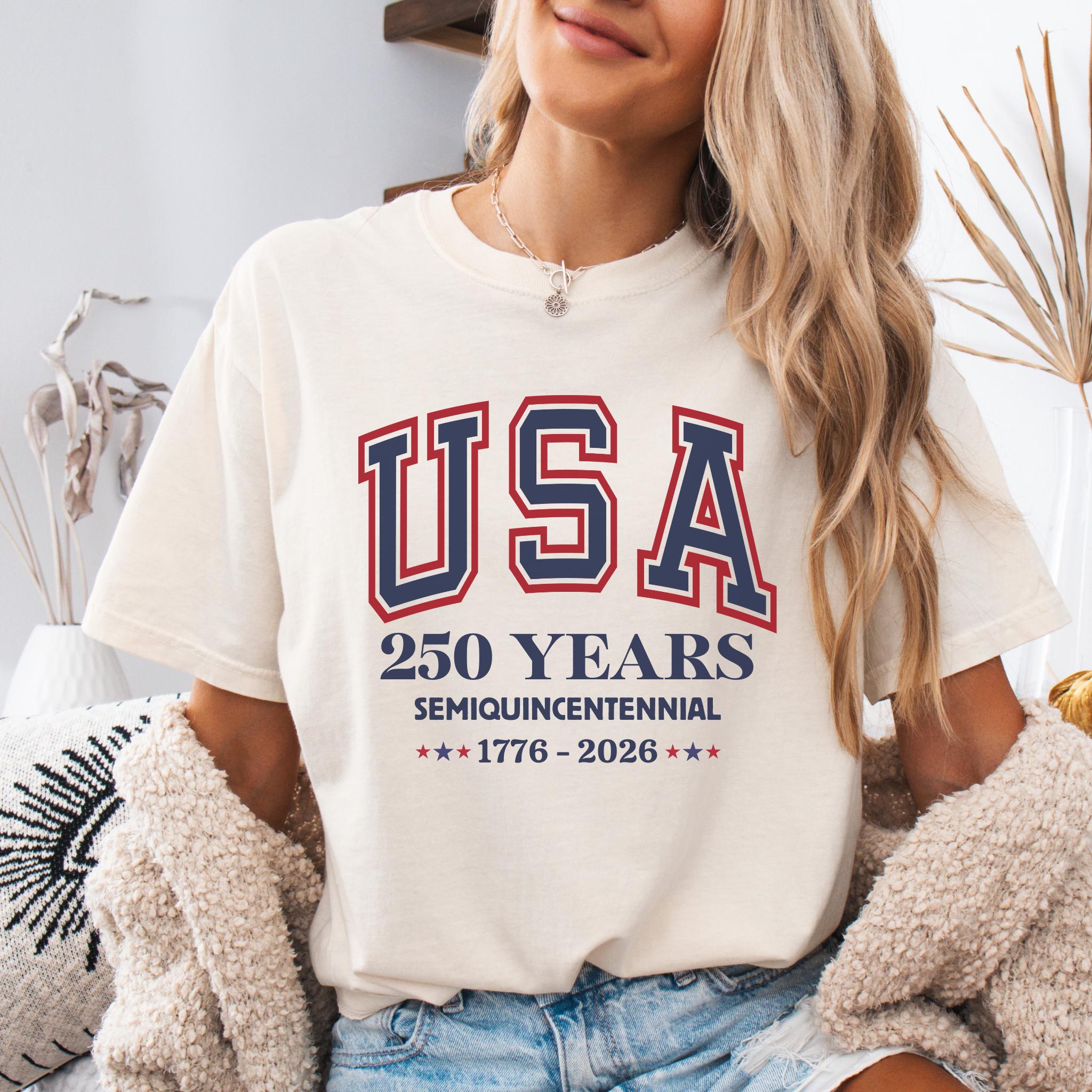 This America 250th Anniversary Shirt commemorates the Semiquincentennial of the United States, marking 250 years of American history from 1776 to 2026. Featuring bold collegiate-style “USA” lettering and clean anniversary typography, the design offers a timeless and proud tribute to America’s historic milestone.
