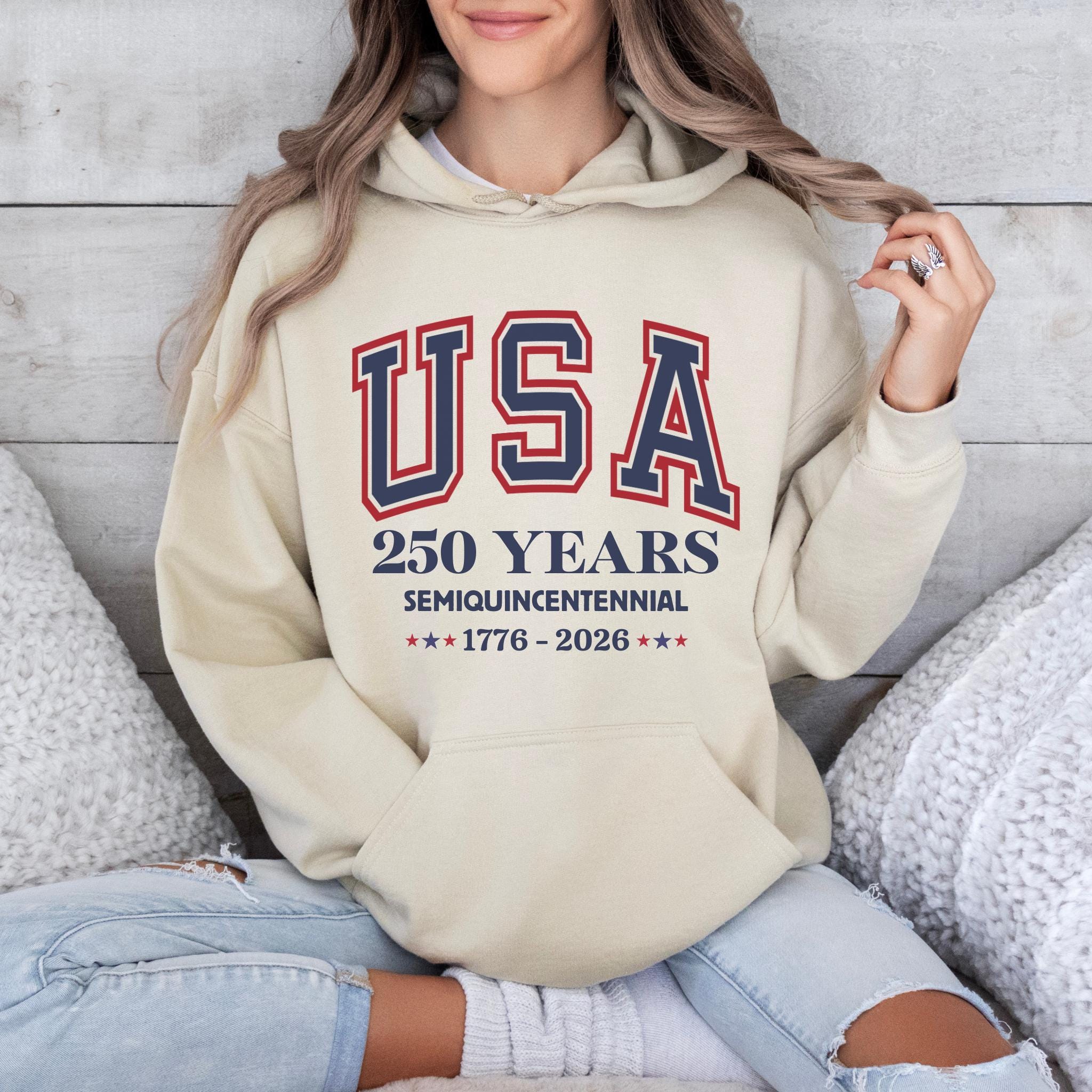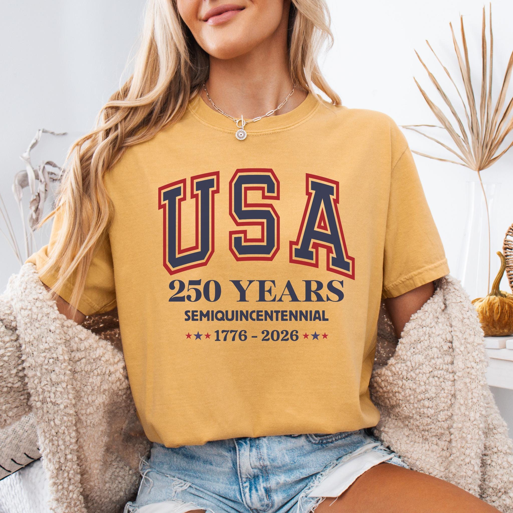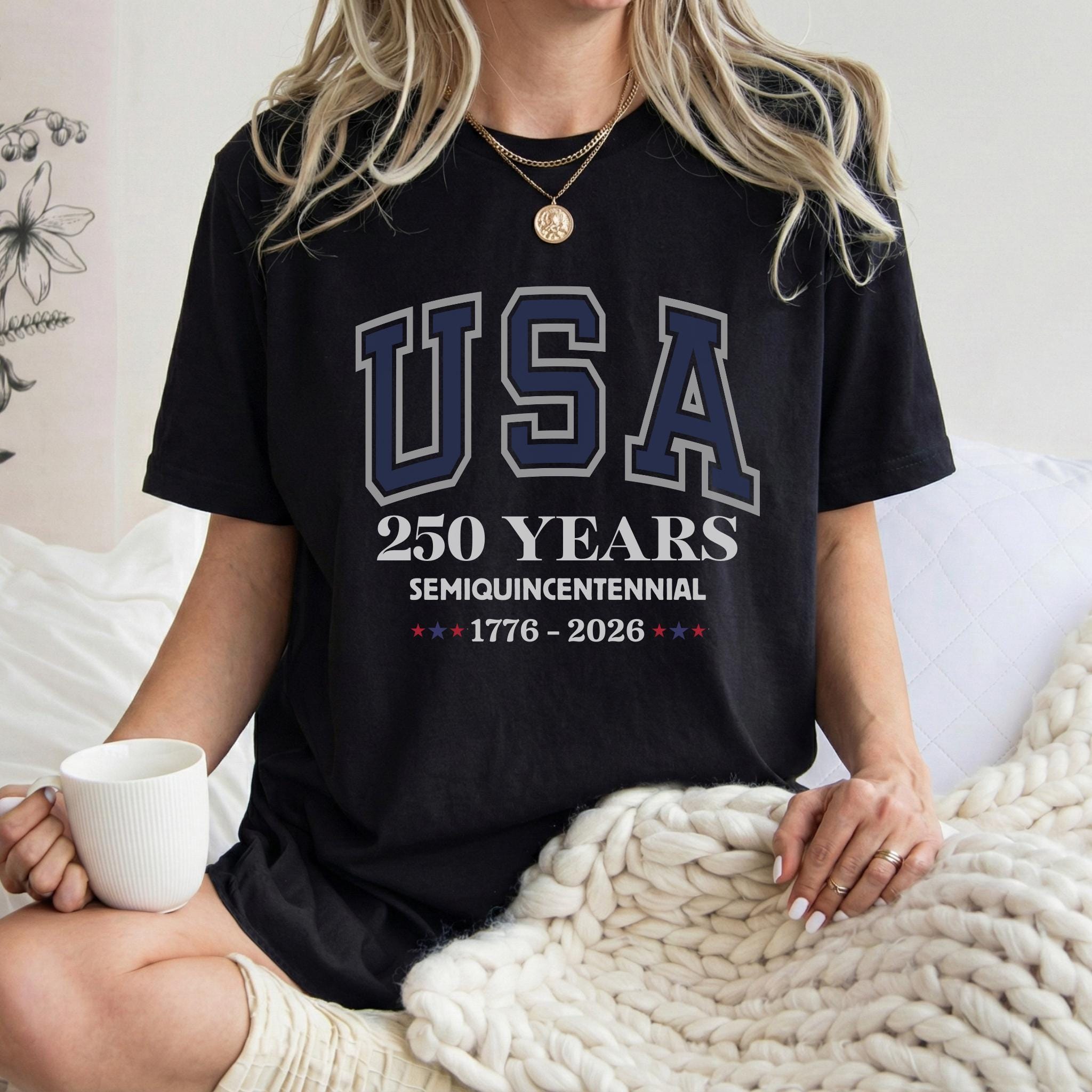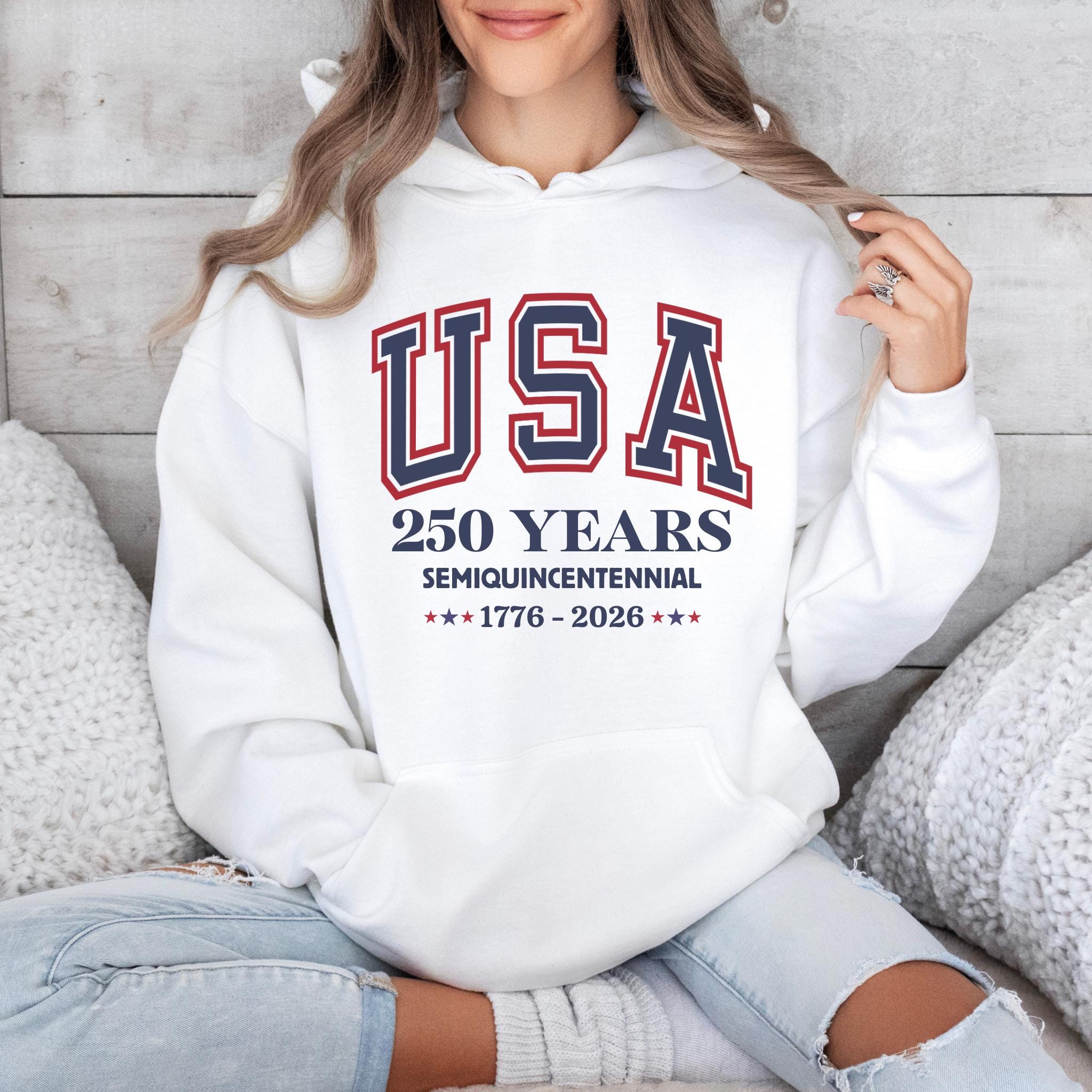 This America 250th Anniversary Shirt commemorates the Semiquincentennial of the United States, marking 250 years of American history from 1776 to 2026. Featuring bold collegiate-style “USA” lettering and clean anniversary typography, the design offers a timeless and proud tribute to America’s historic milestone.