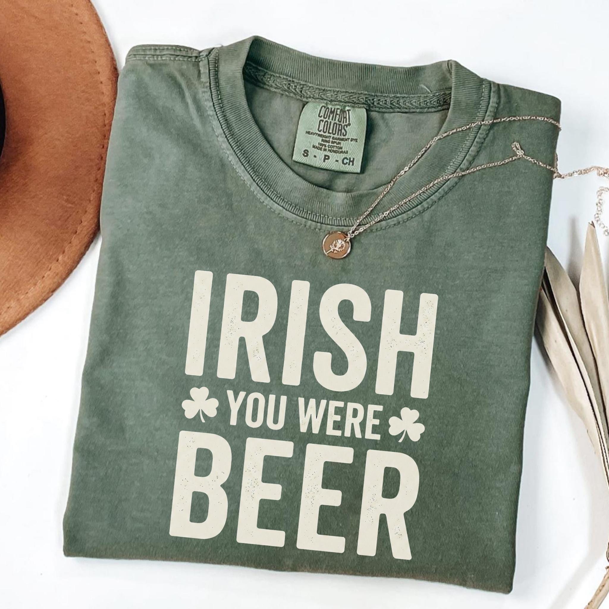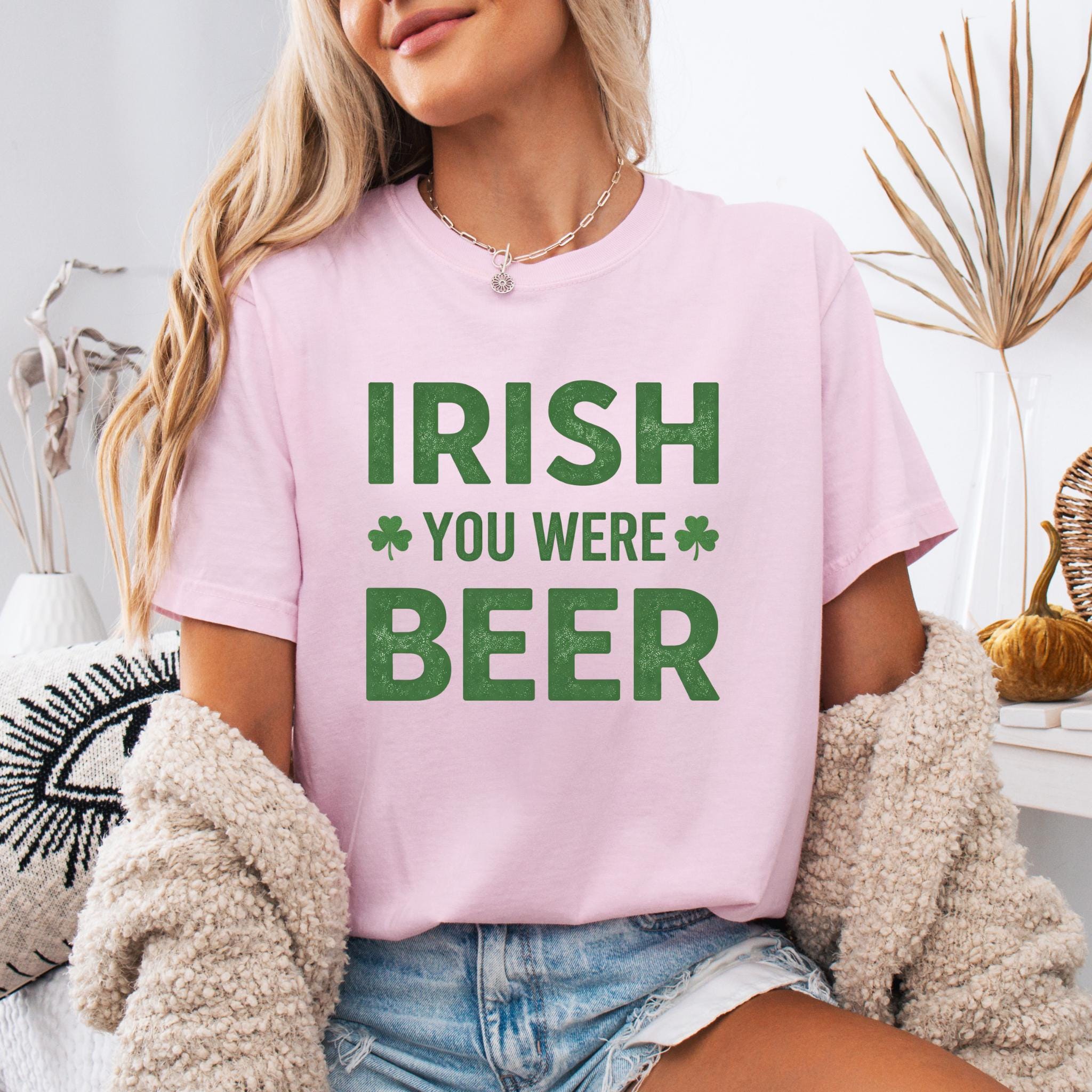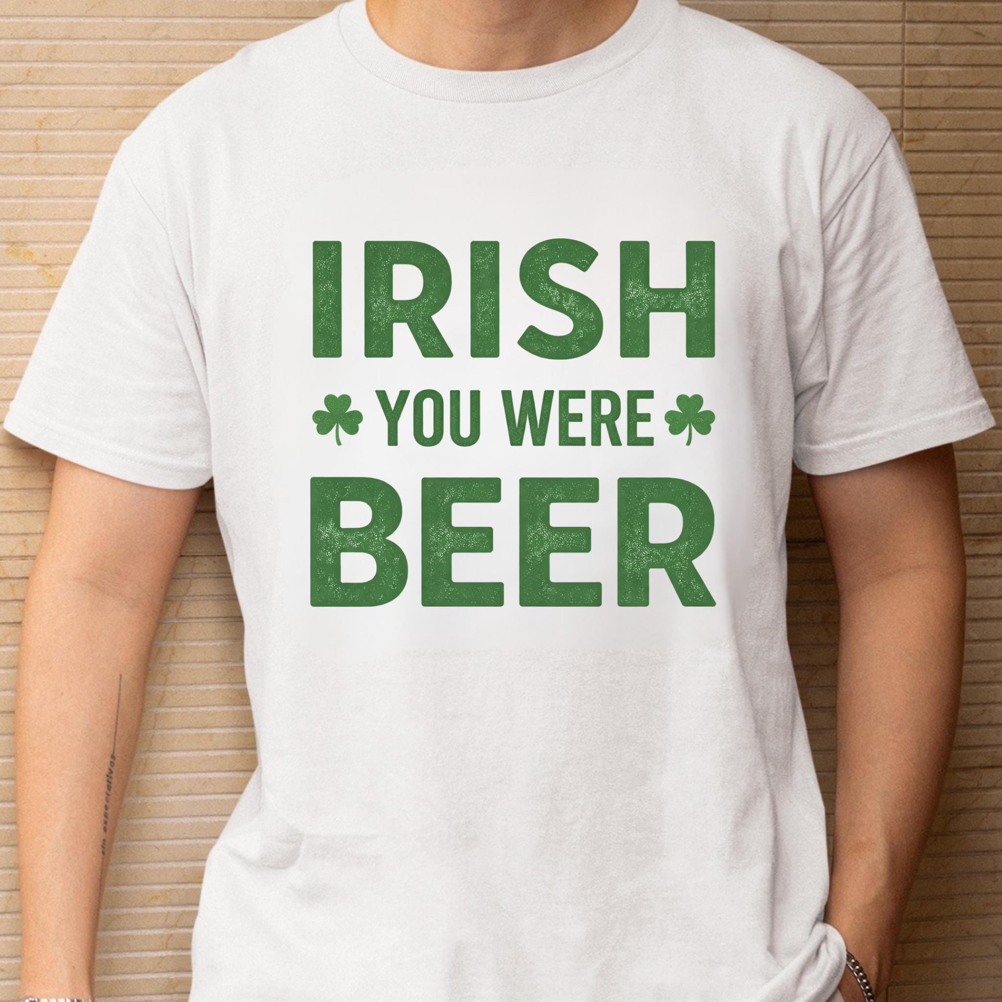 This Irish You Were Beer Green T-Shirt features a playful wordplay design that blends Irish humor with a lighthearted beer pun, making it perfect for celebrating St. Patrick’s Day in a fun and casual way. The bold typography and shamrock accents give the design a festive feel without being over-the-top.