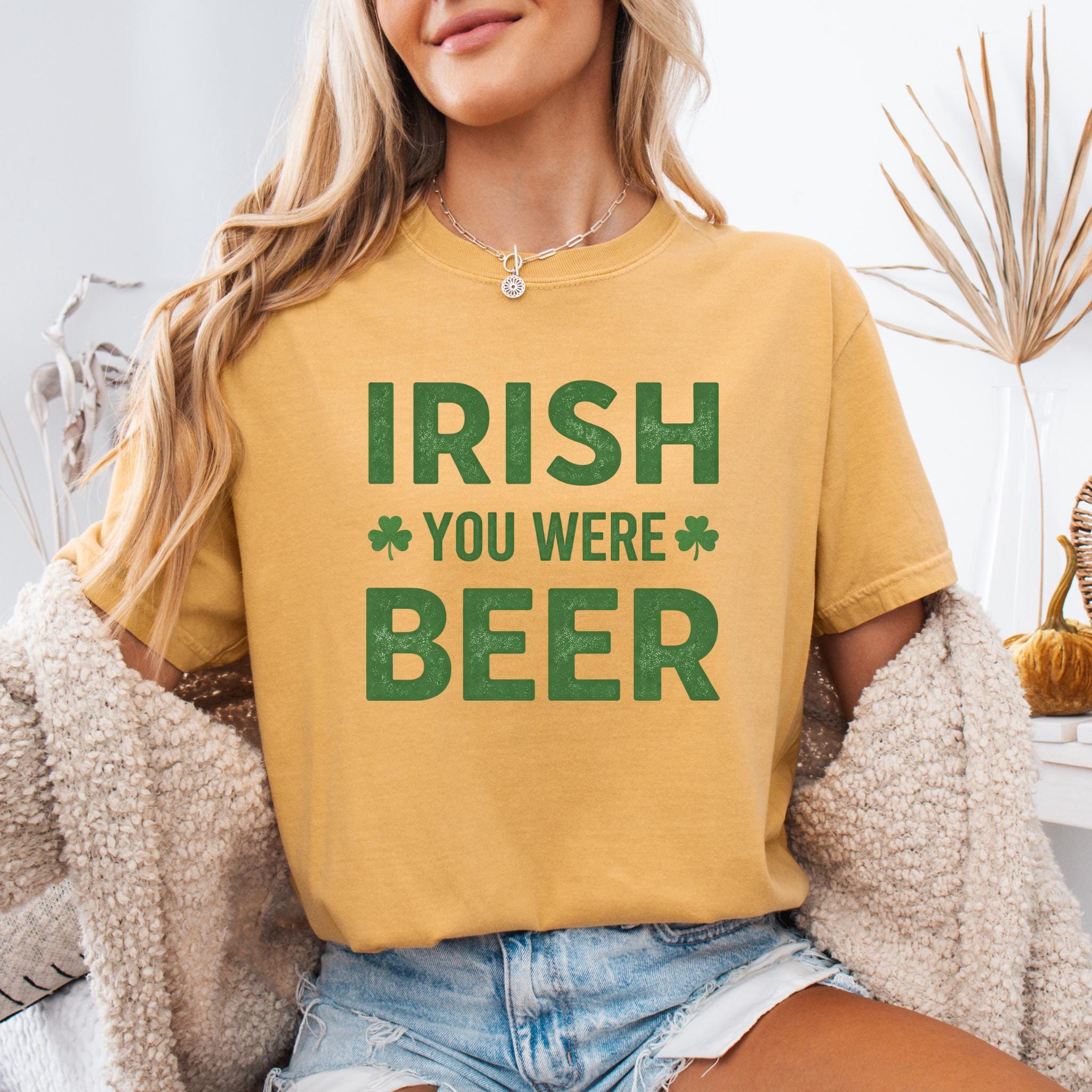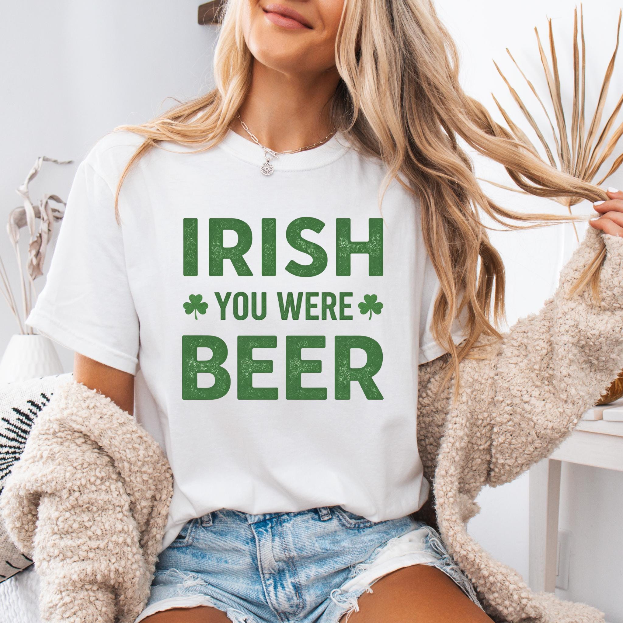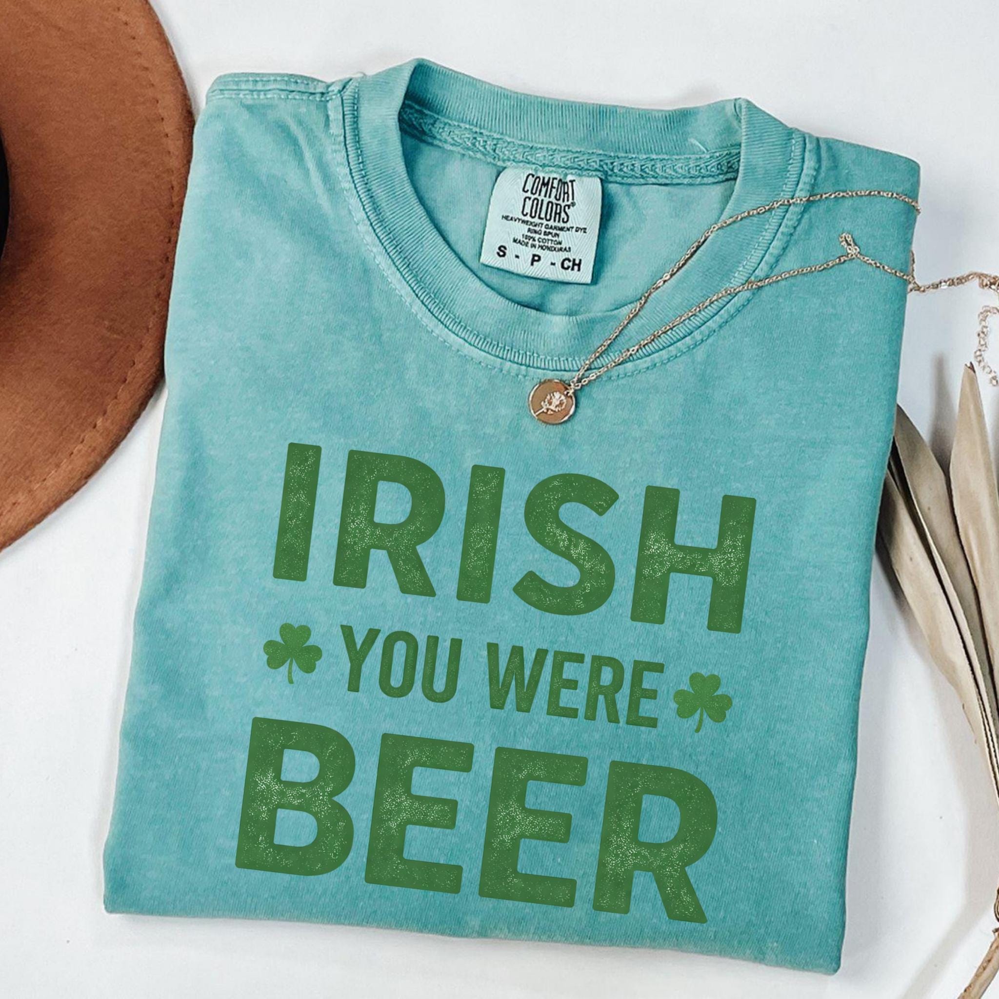 This Irish You Were Beer Green T-Shirt features a playful wordplay design that blends Irish humor with a lighthearted beer pun, making it perfect for celebrating St. Patrick’s Day in a fun and casual way. The bold typography and shamrock accents give the design a festive feel without being over-the-top.