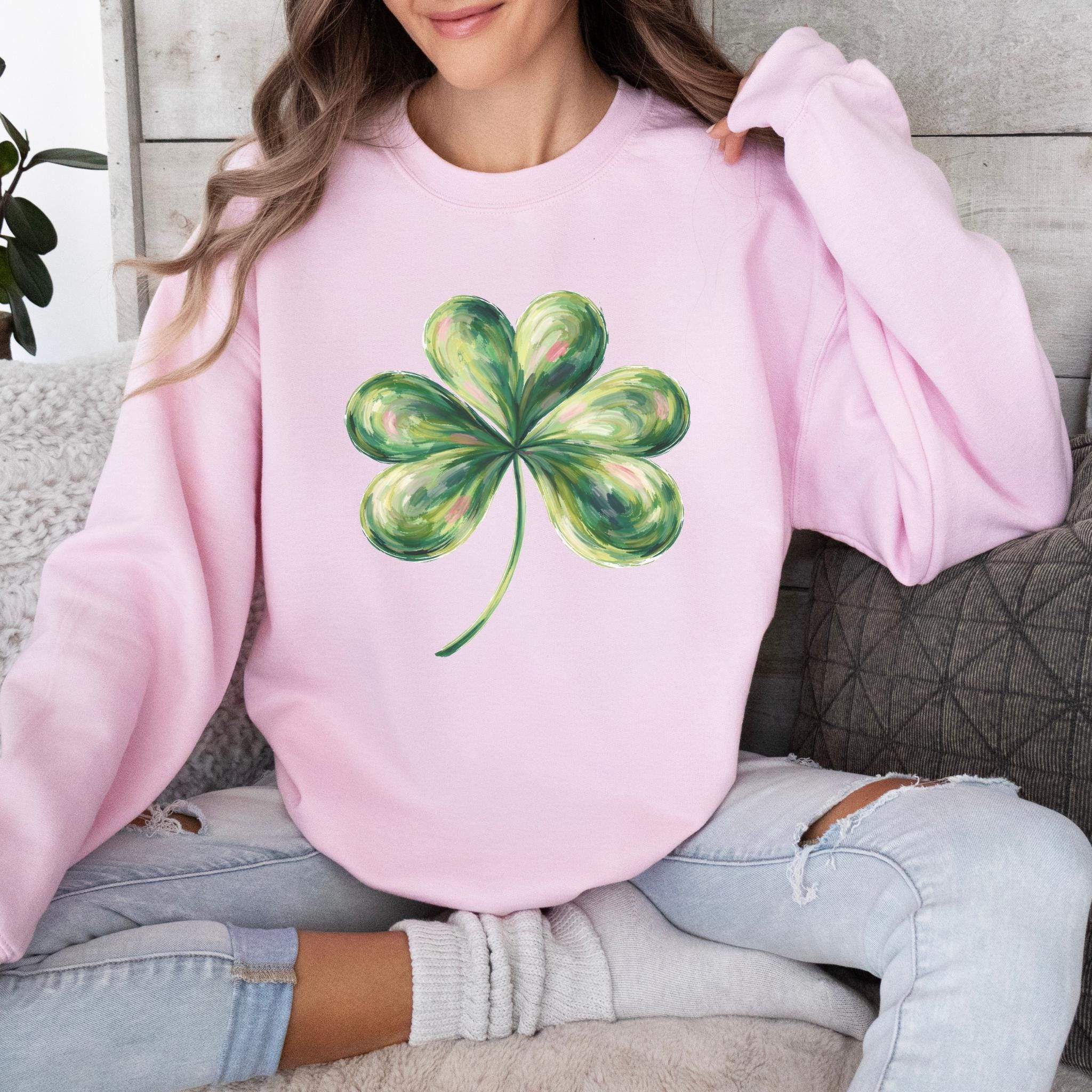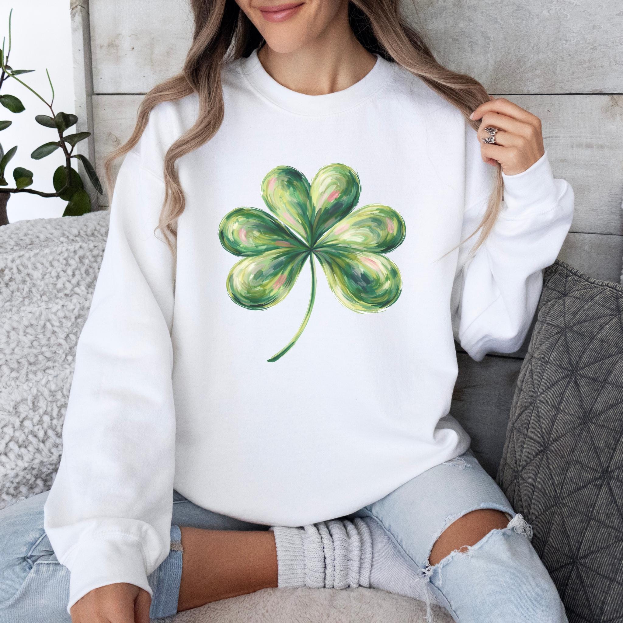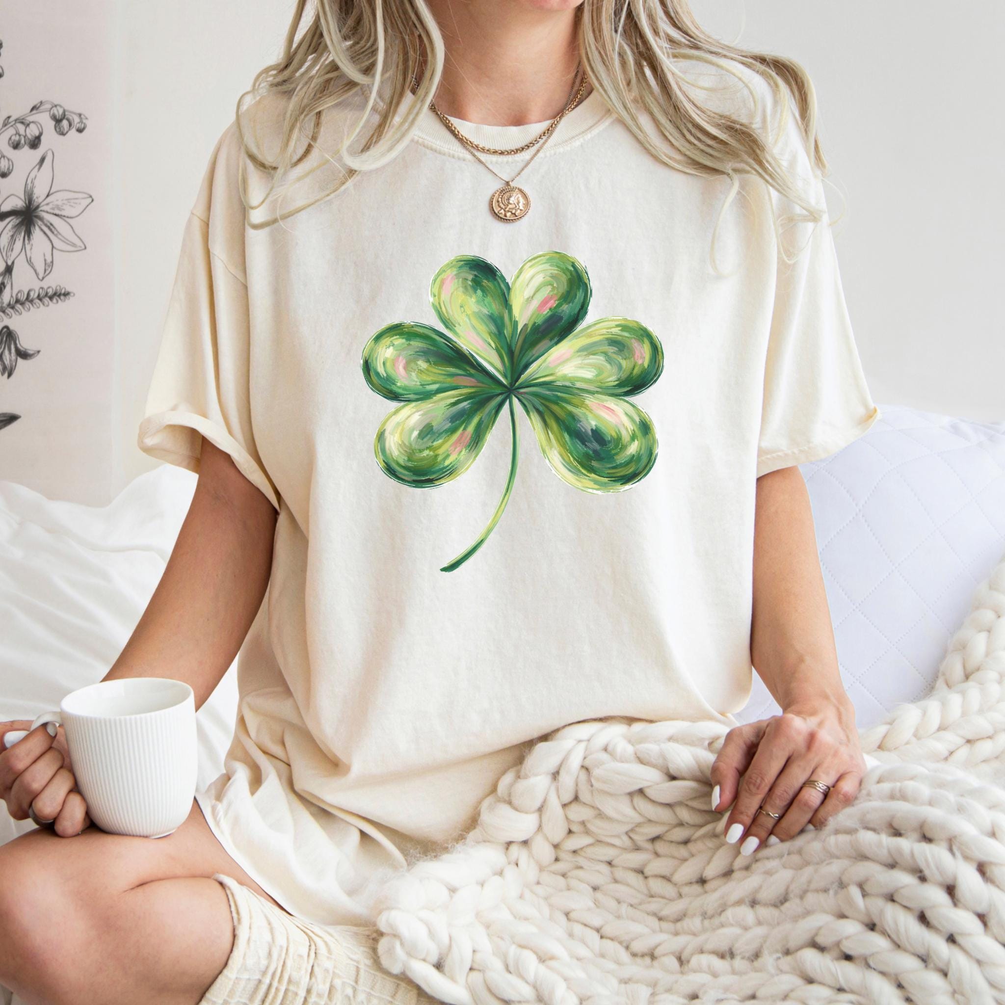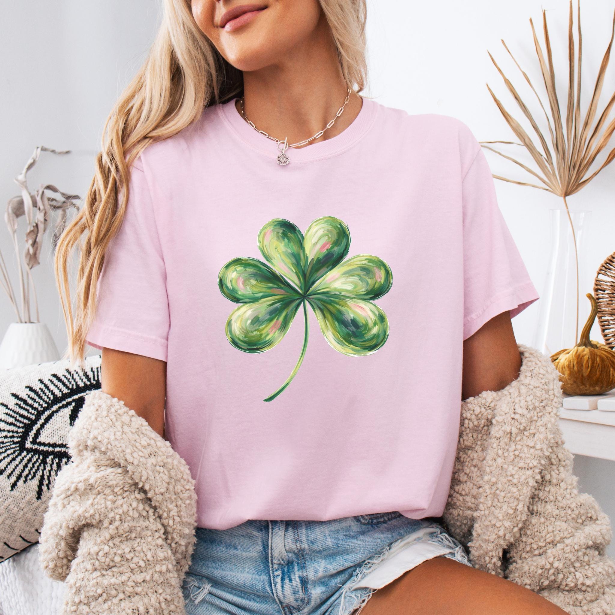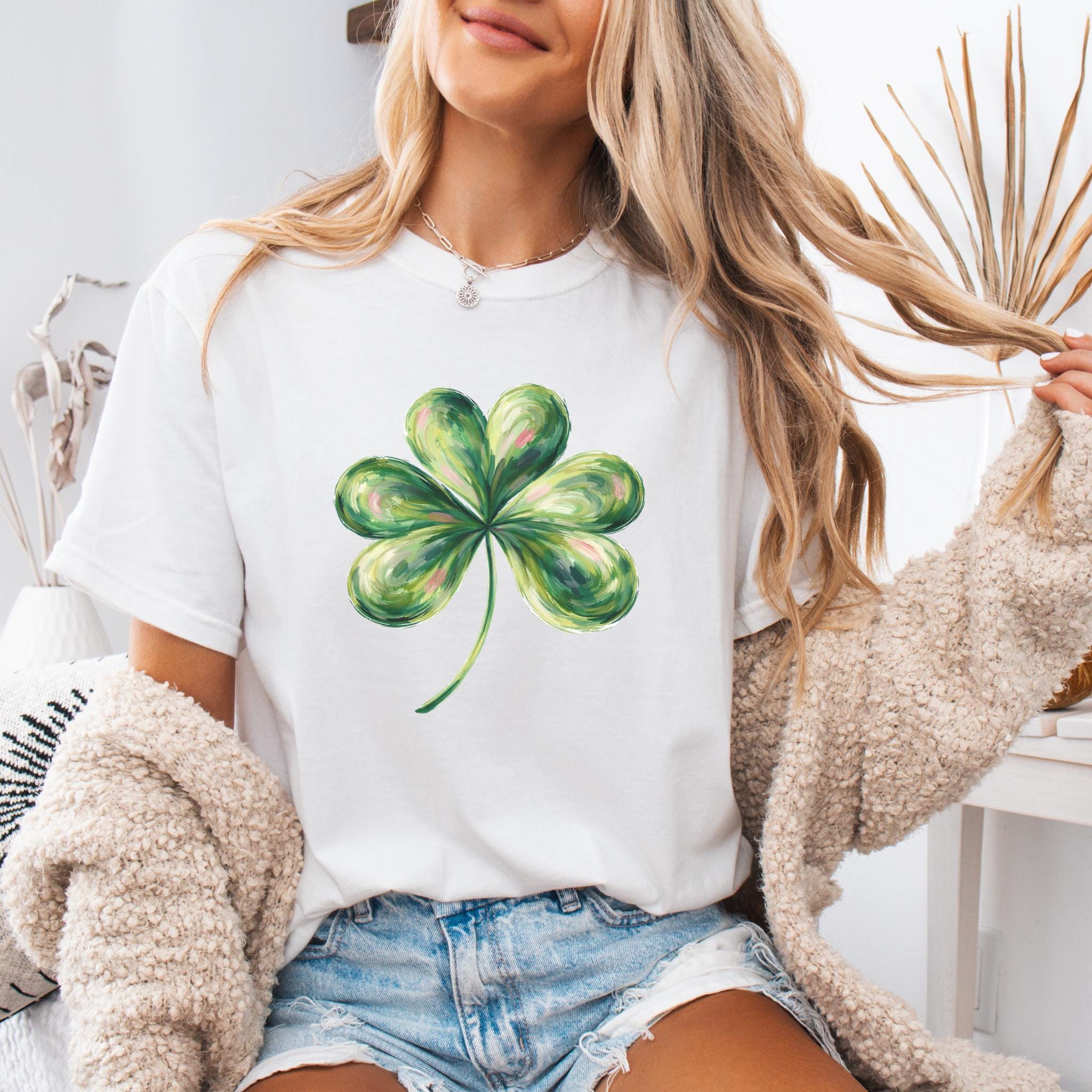 This St Patricks Day Lucky Shamrock Shirt features a hand-painted style four-leaf clover illustration with a soft, artistic look inspired by luck and Irish tradition. The clean and minimal design makes it perfect for celebrating St. Patrick’s Day in a subtle, stylish way.