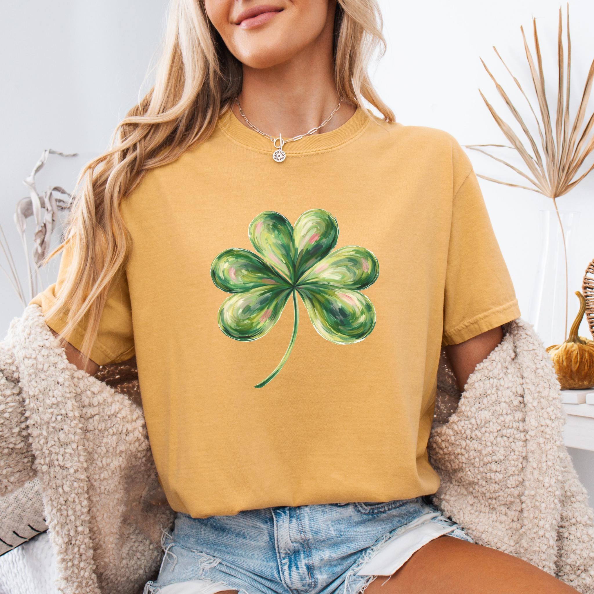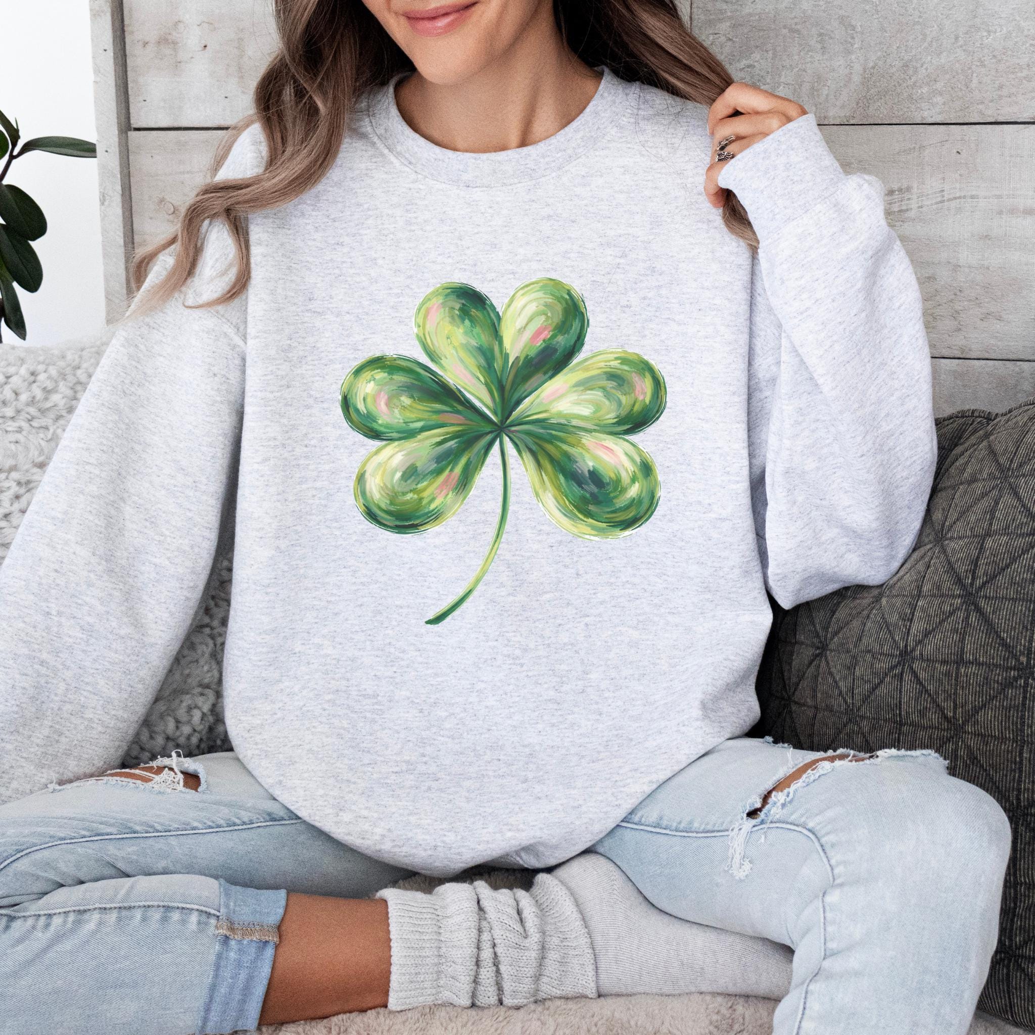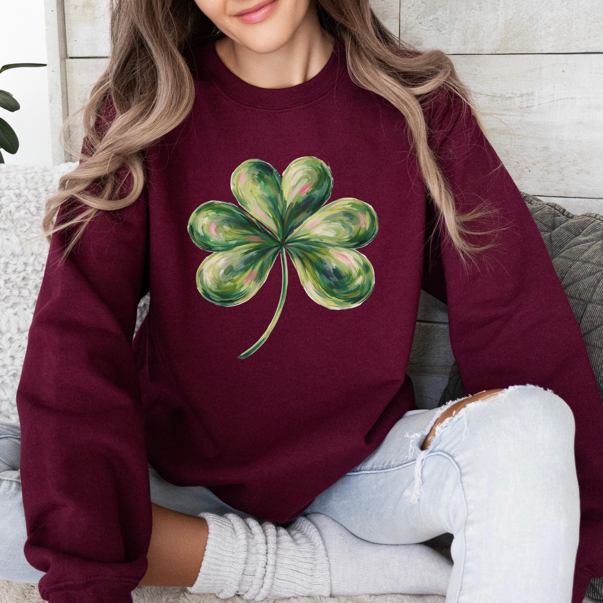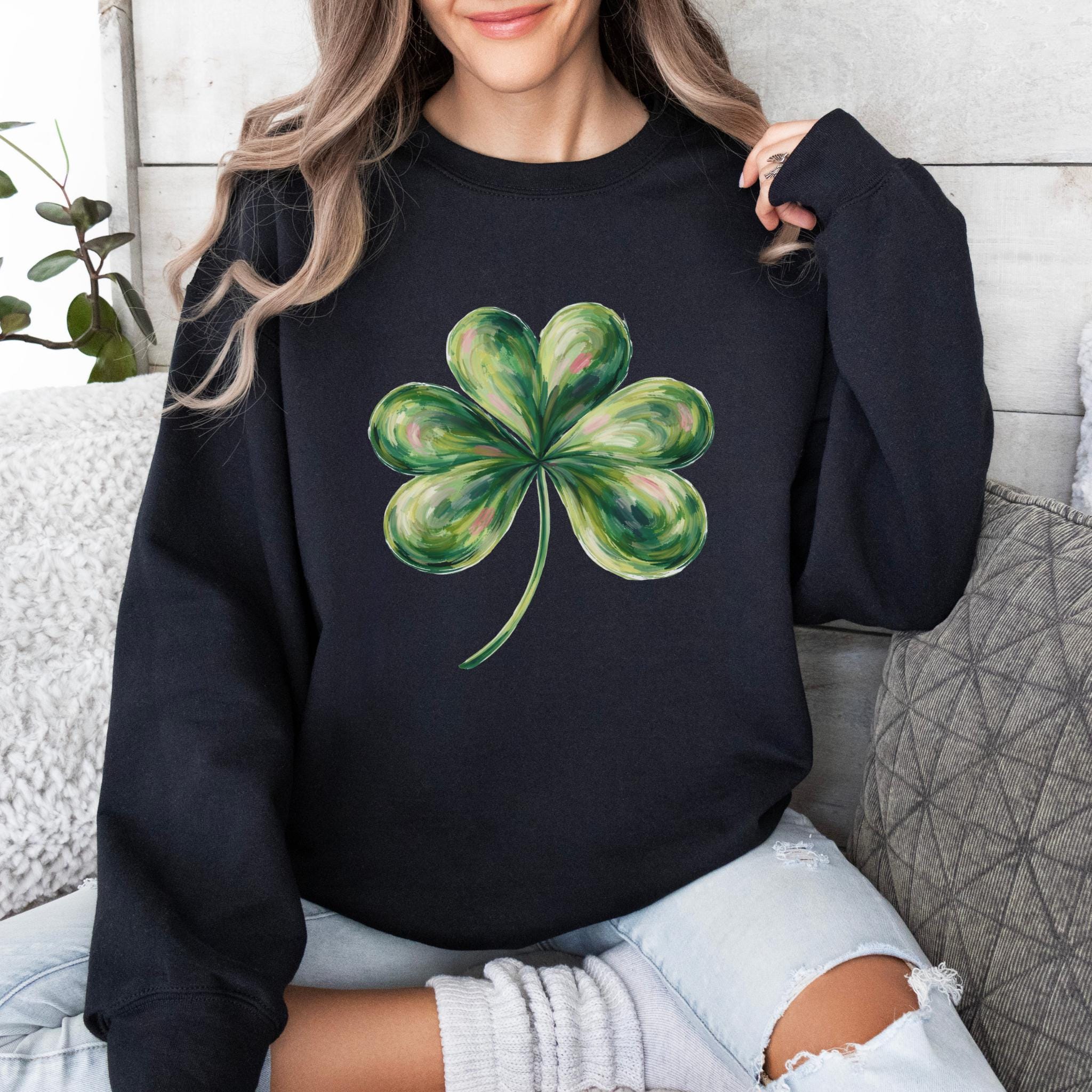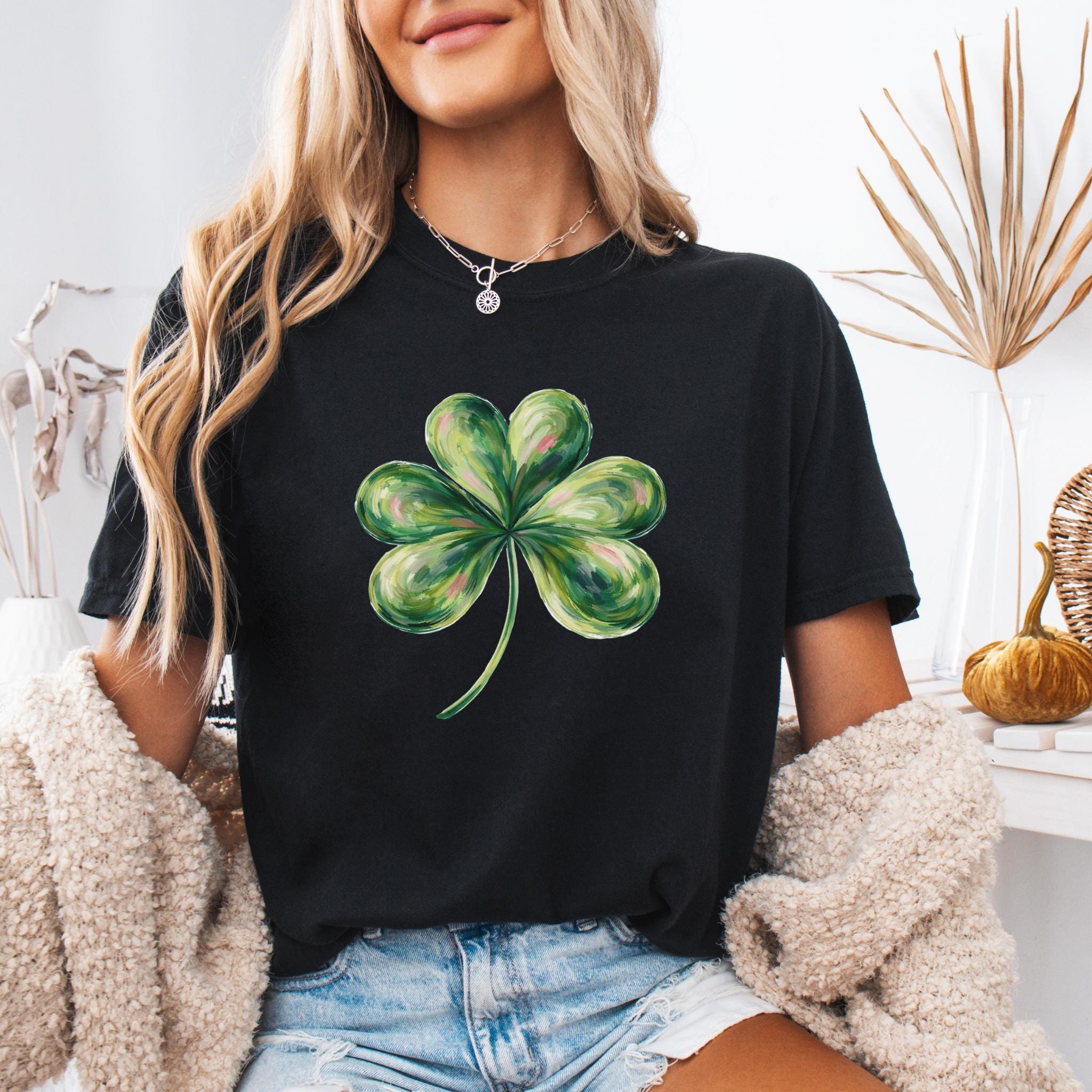 This St Patricks Day Lucky Shamrock Shirt features a hand-painted style four-leaf clover illustration with a soft, artistic look inspired by luck and Irish tradition. The clean and minimal design makes it perfect for celebrating St. Patrick’s Day in a subtle, stylish way.