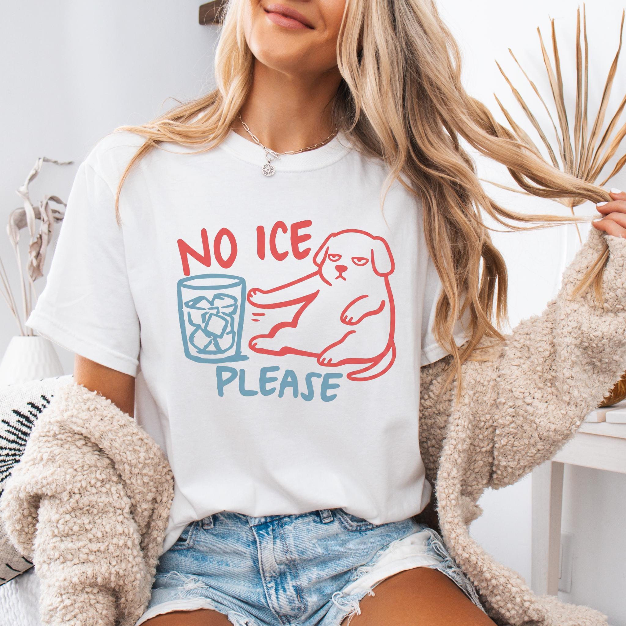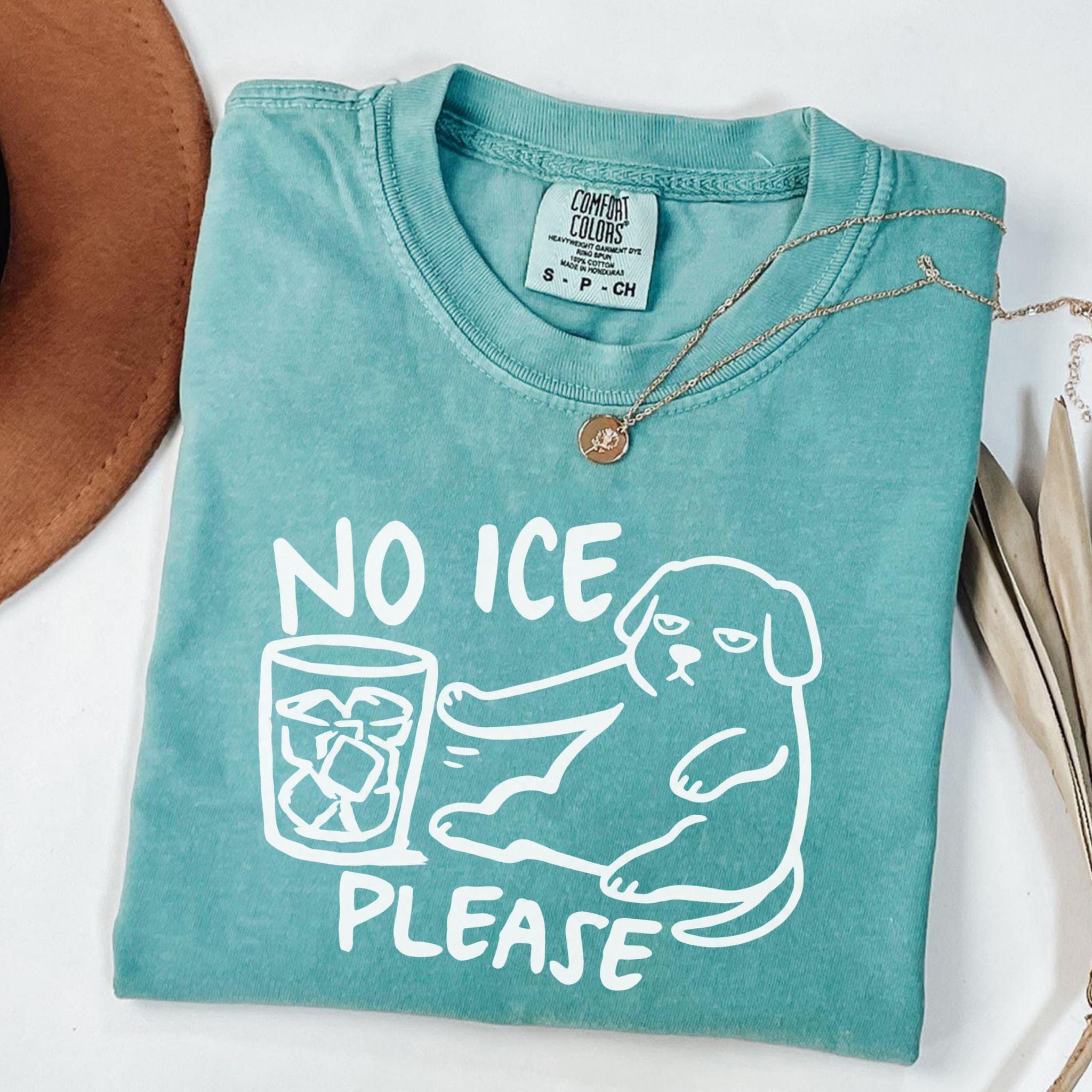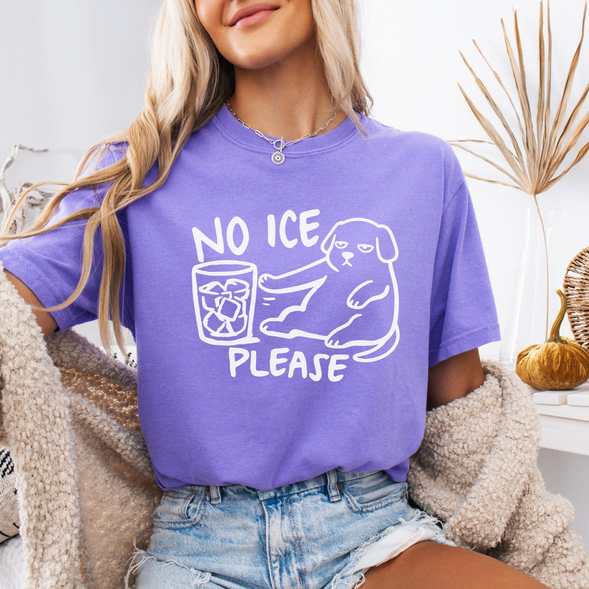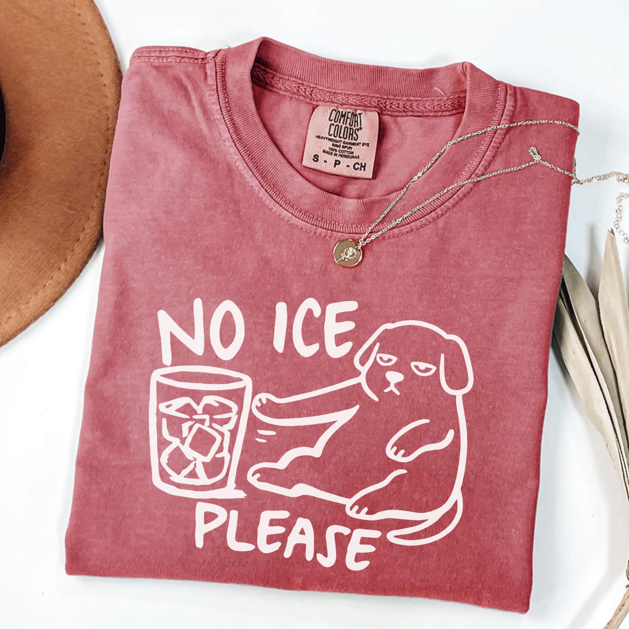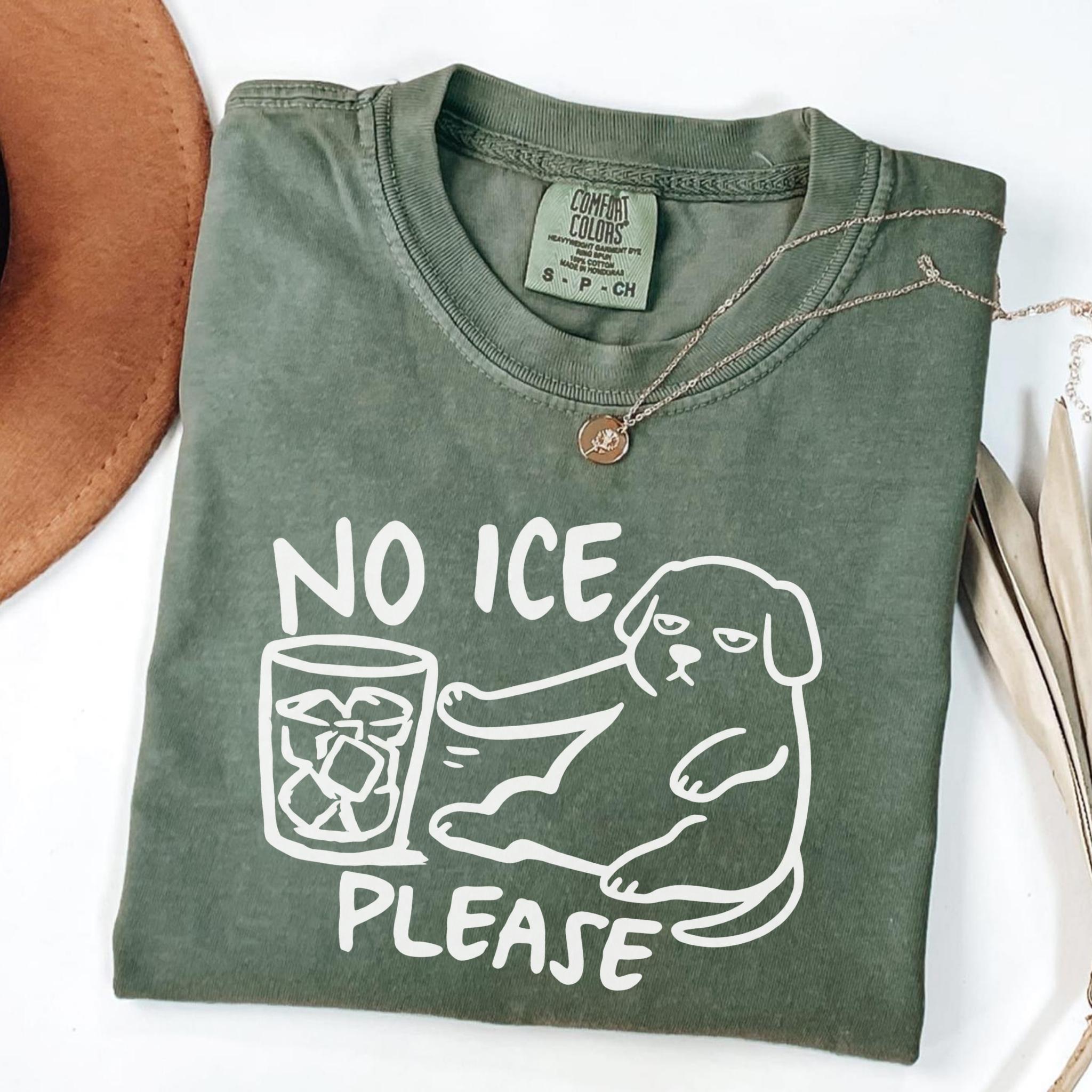 This “NO ICE PLEASE DOG” graphic tee features a simple line-art style dog pushing away a glass full of ice — the perfect visual for anyone who is tired of paying for a cup full of cubes instead of a real drink.