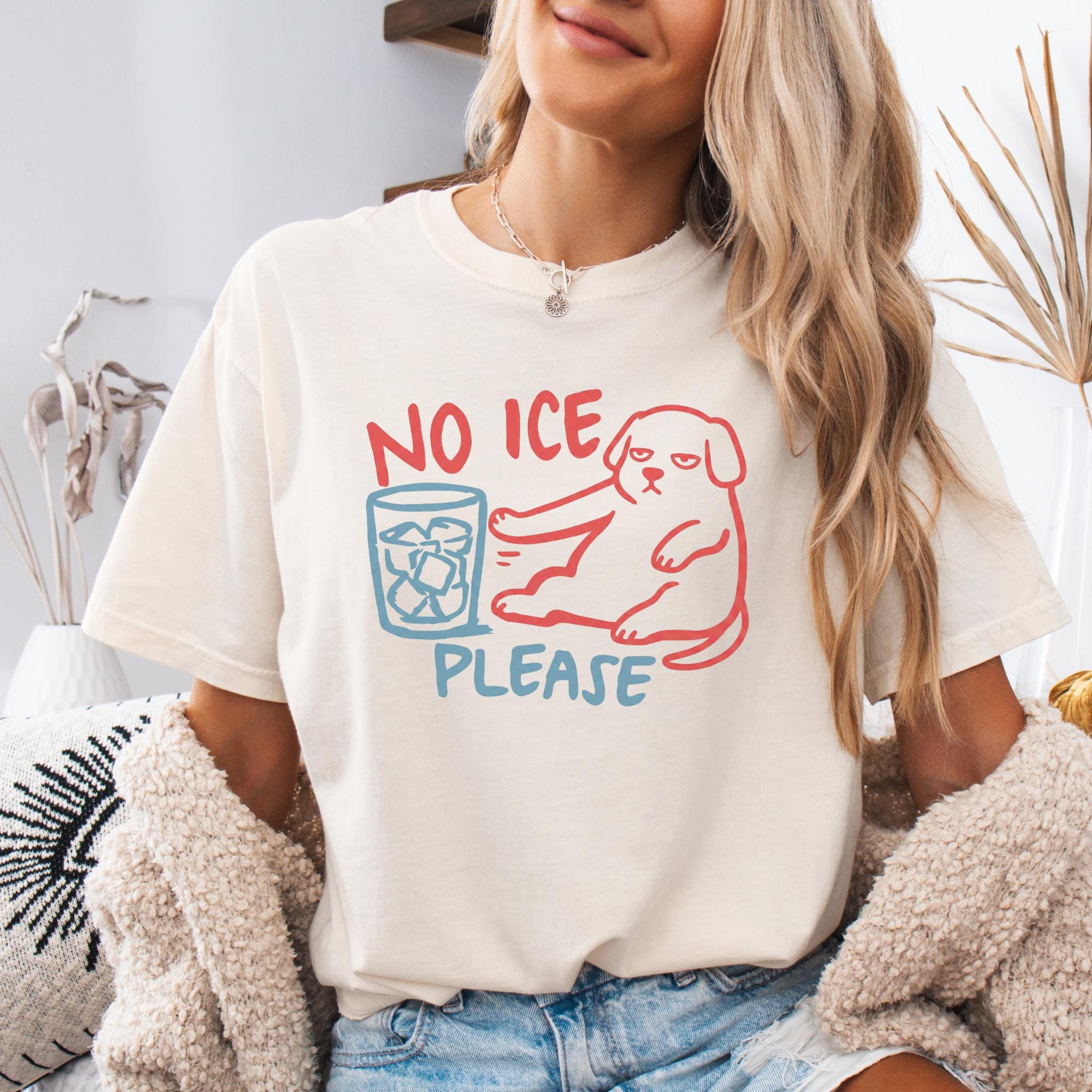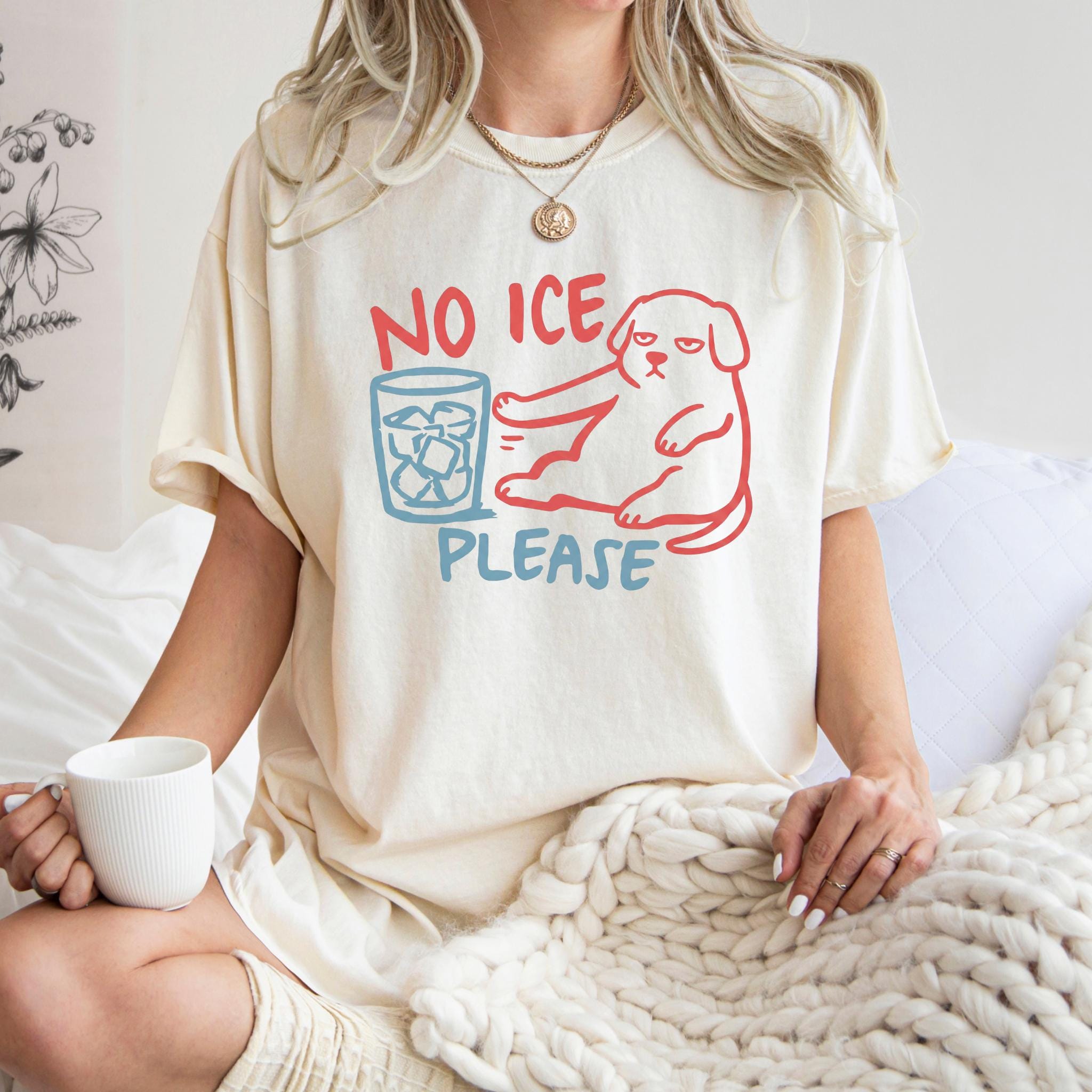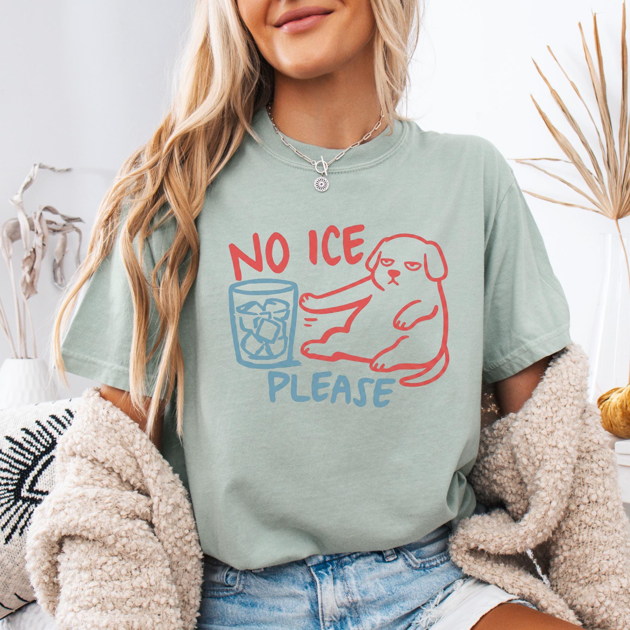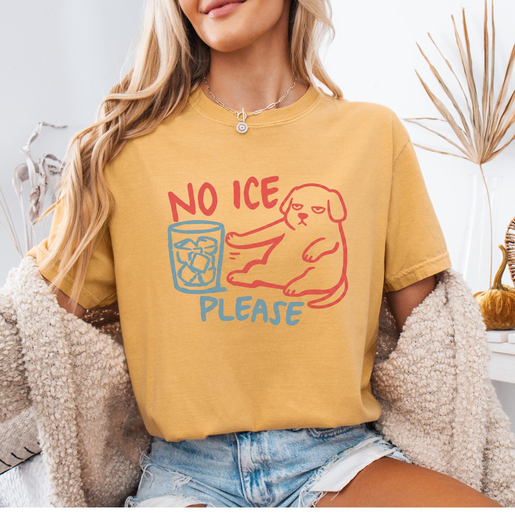 This “NO ICE PLEASE DOG” graphic tee features a simple line-art style dog pushing away a glass full of ice — the perfect visual for anyone who is tired of paying for a cup full of cubes instead of a real drink.