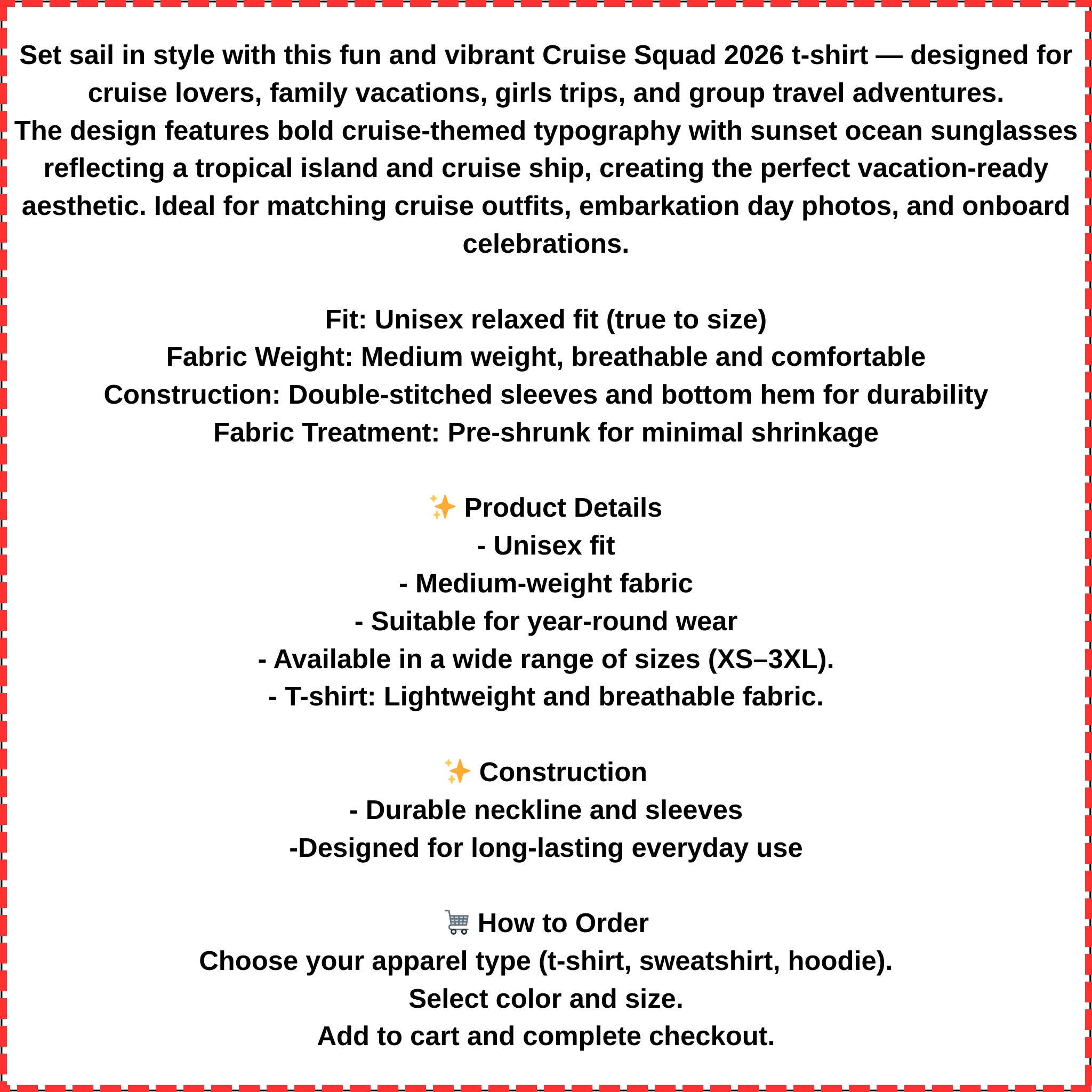 Set sail in style with this fun and vibrant Cruise Squad 2026 t-shirt — designed for cruise lovers, family vacations, girls trips, and group travel adventures.