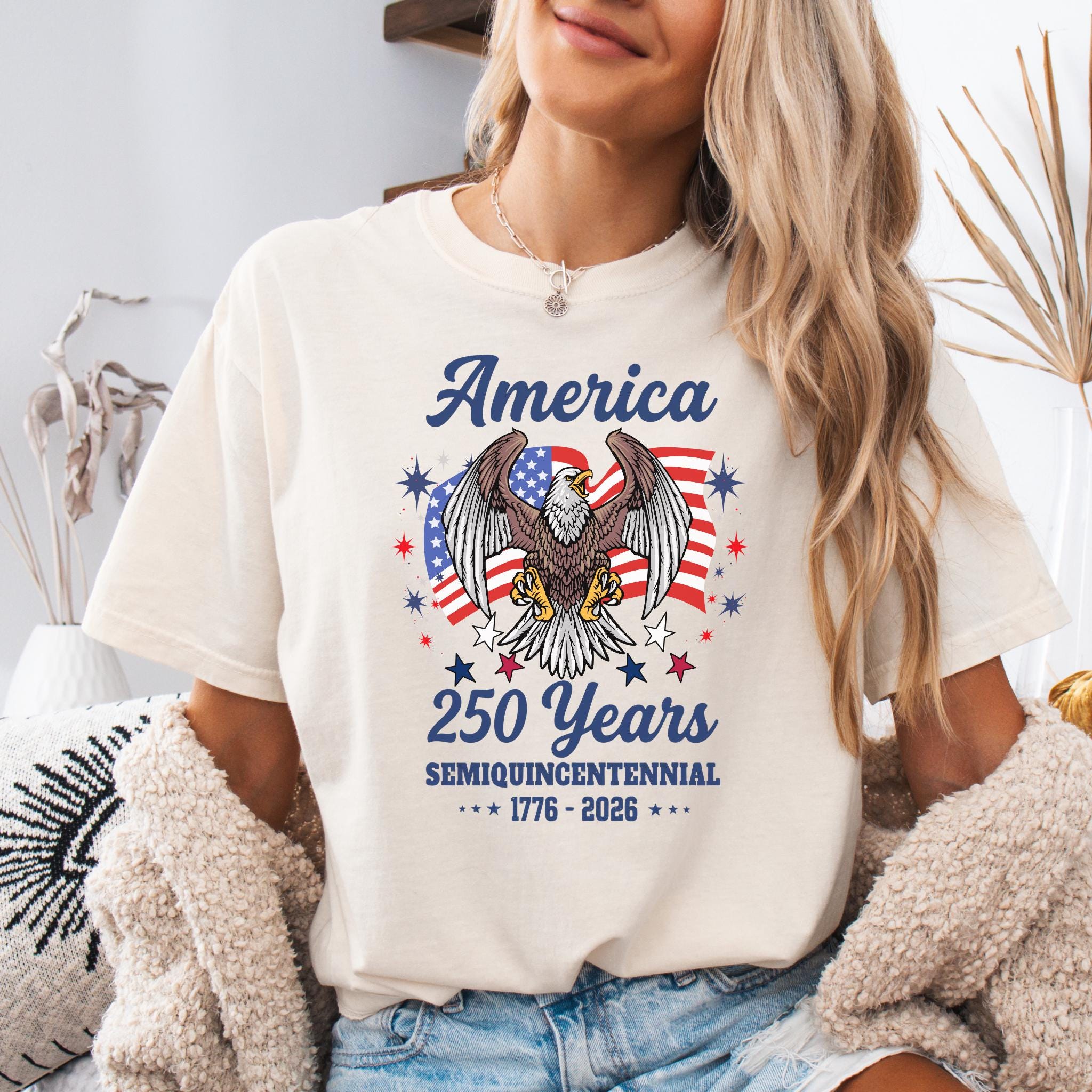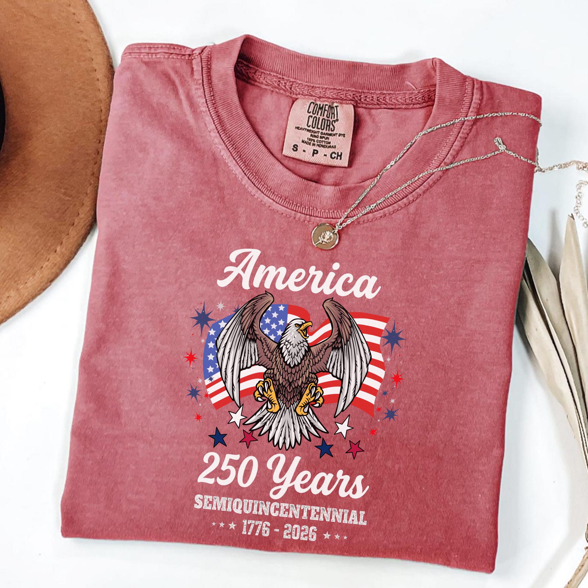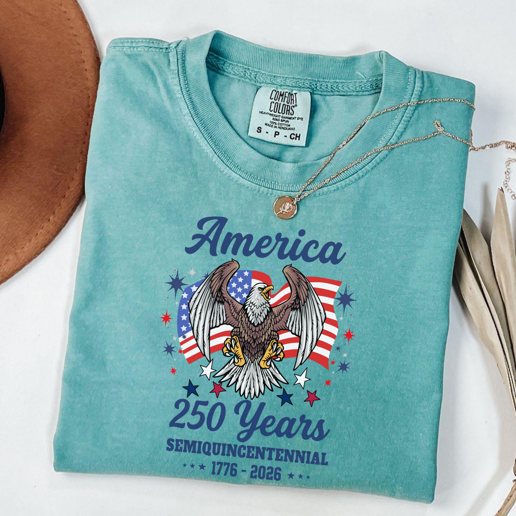 Celebrate America 250 Years Patriotic Eagle (1776–2026) with this bold patriotic eagle design honoring the United States Semiquincentennial. Featuring a powerful bald eagle with American flag backdrop, this graphic represents strength, freedom, and national pride.