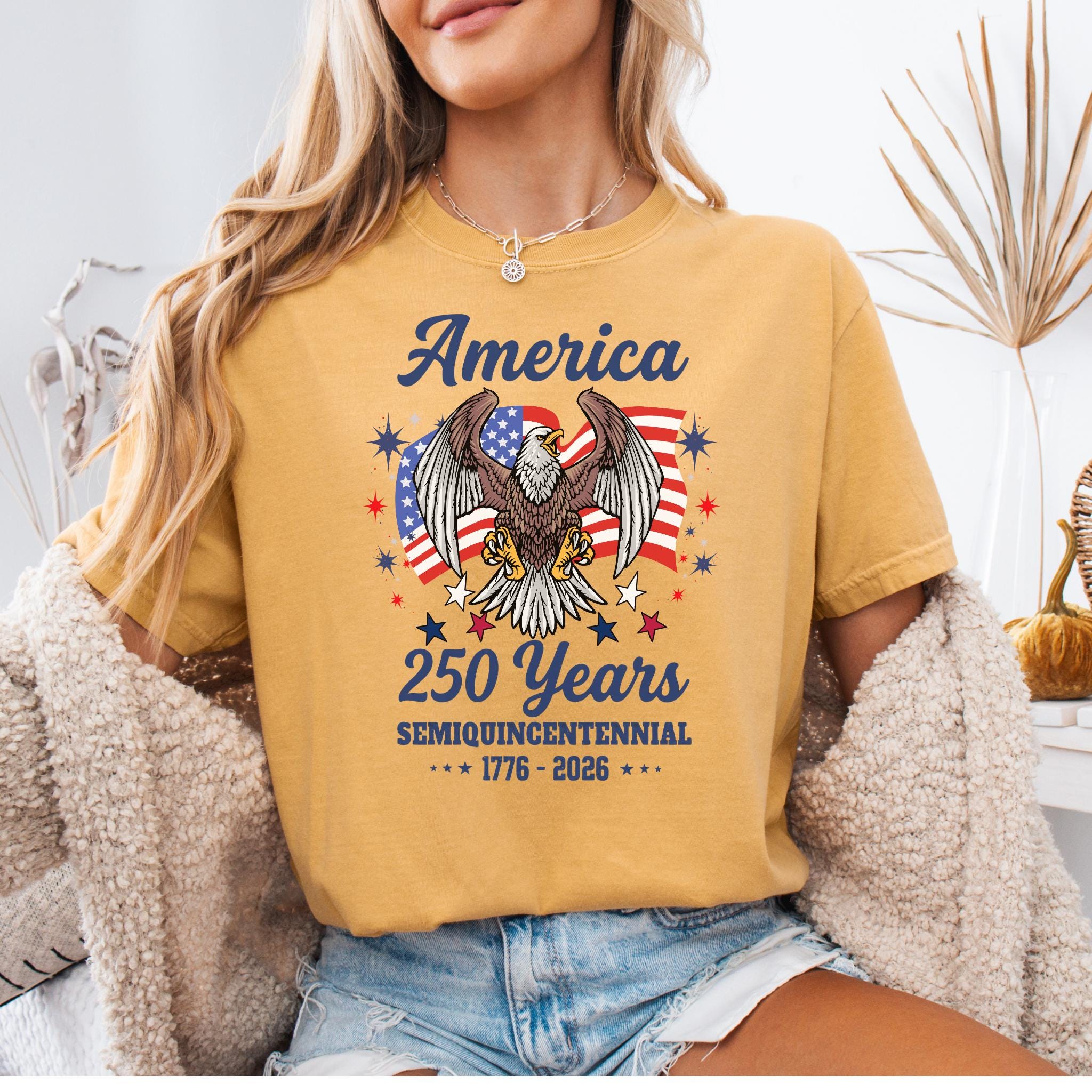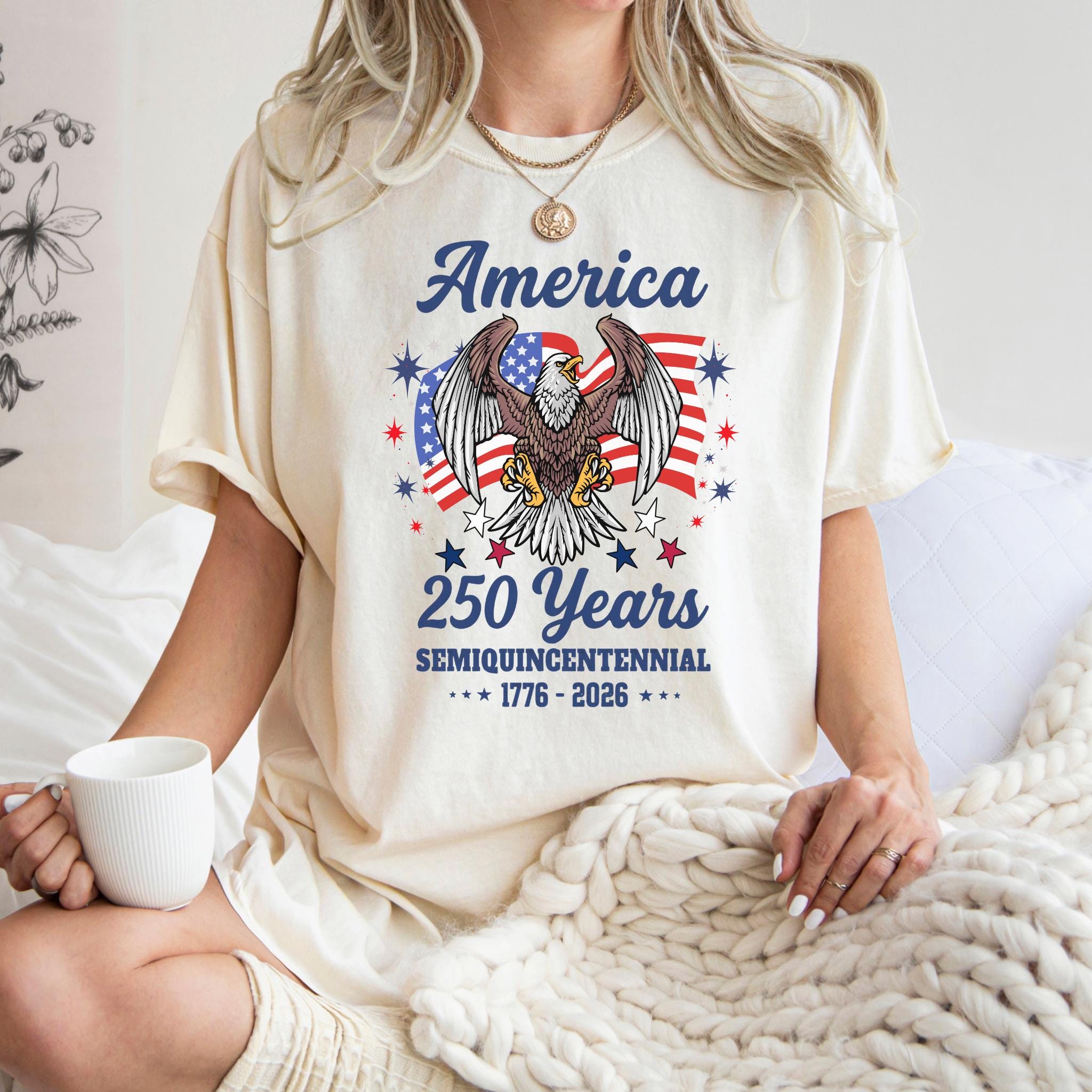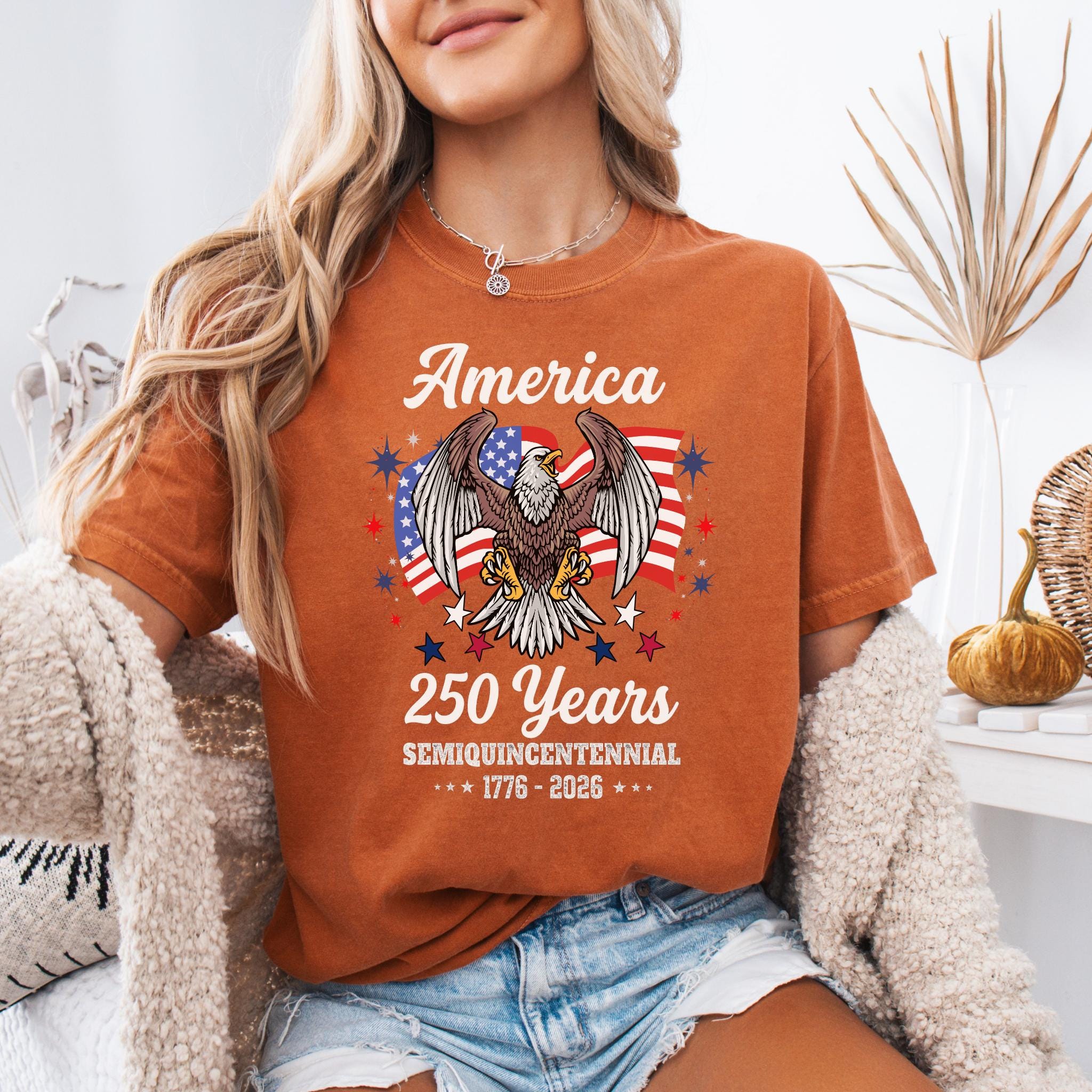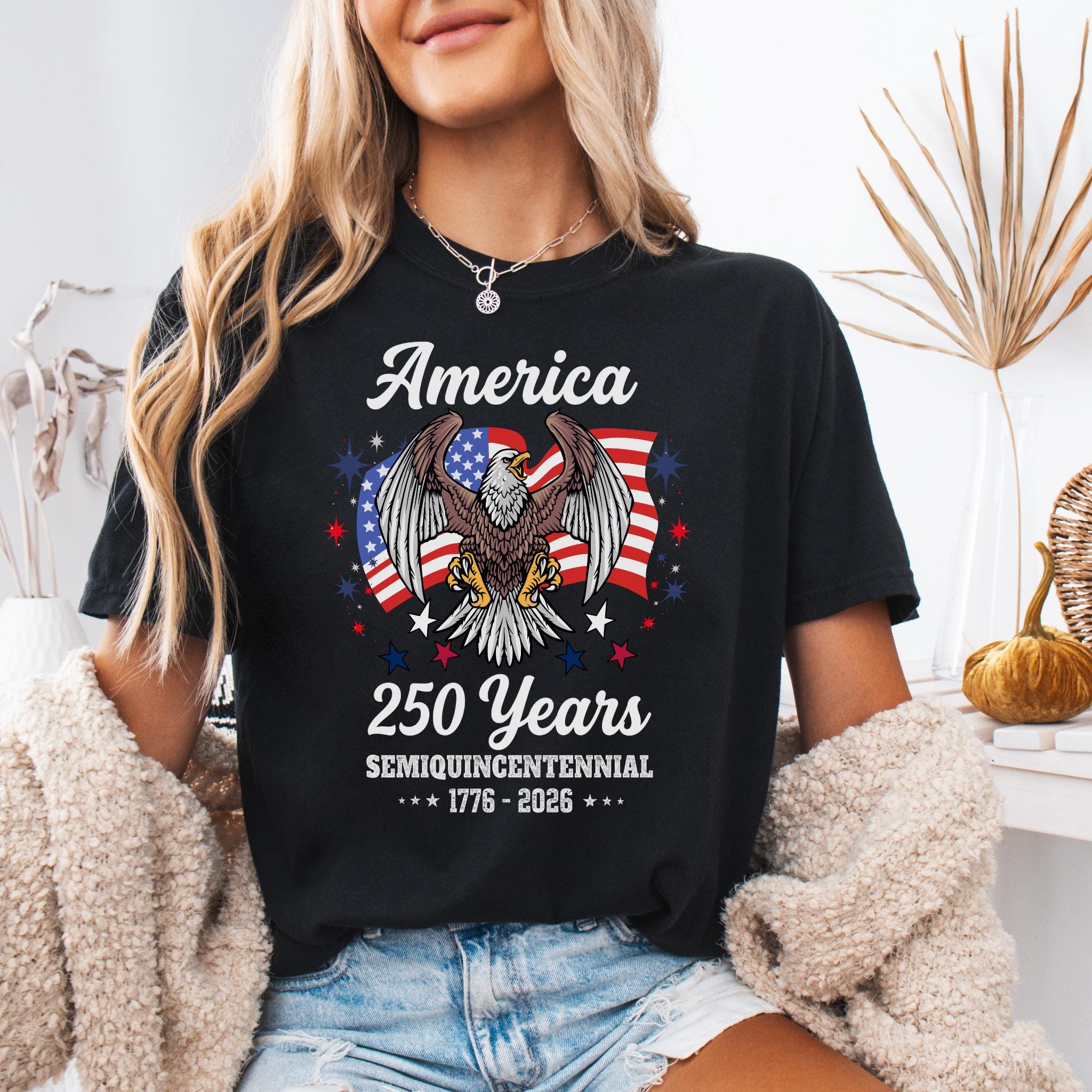 Celebrate America 250 Years Patriotic Eagle (1776–2026) with this bold patriotic eagle design honoring the United States Semiquincentennial. Featuring a powerful bald eagle with American flag backdrop, this graphic represents strength, freedom, and national pride.