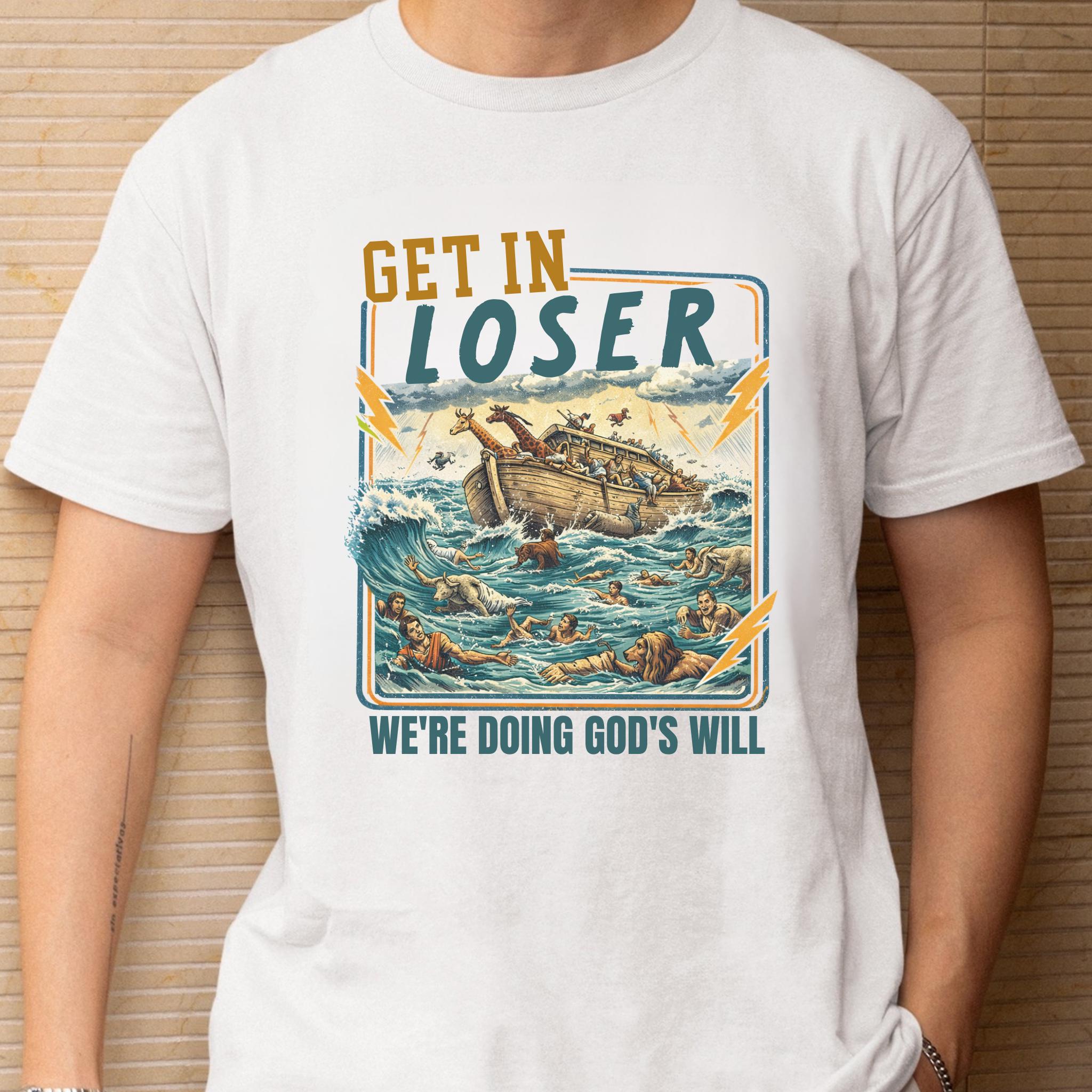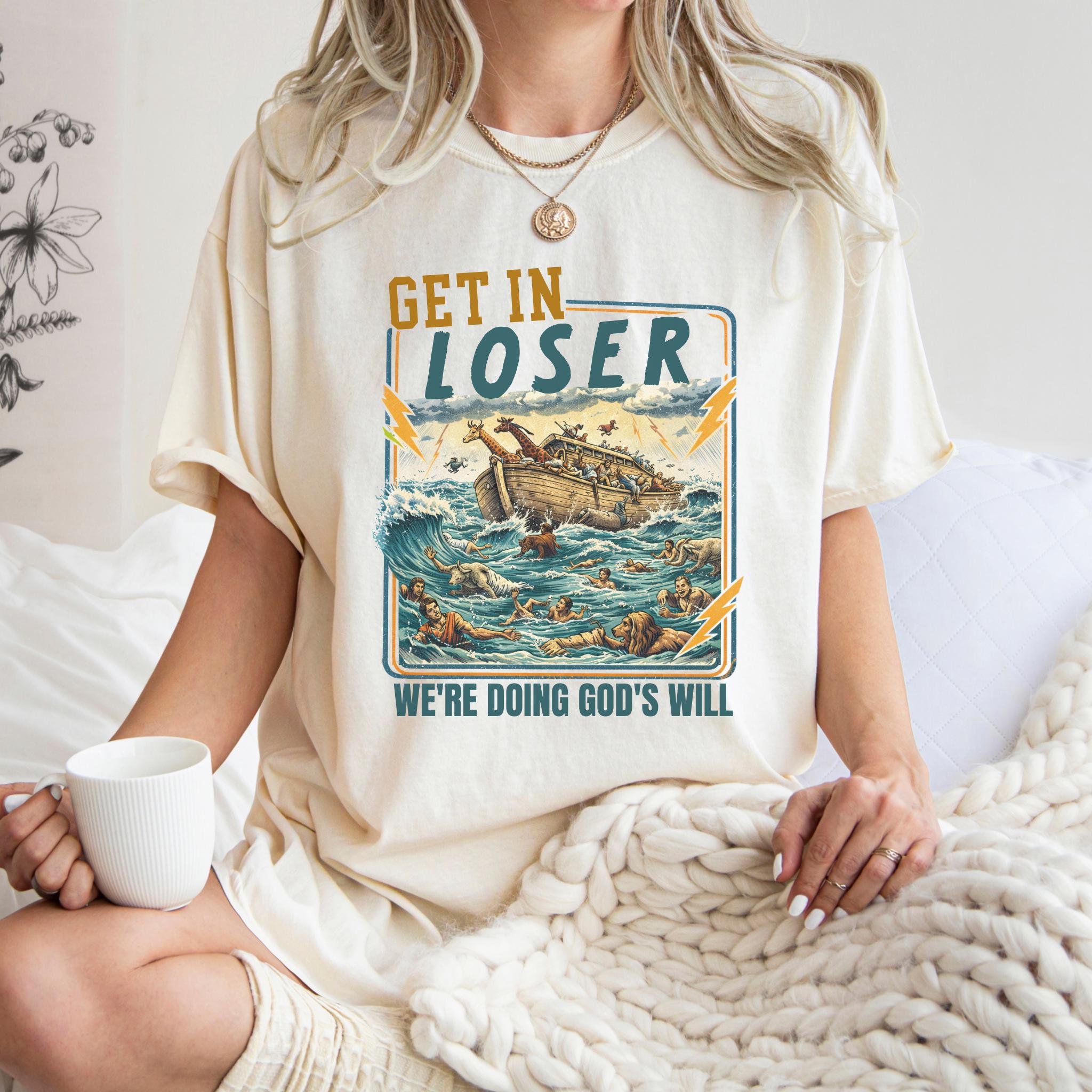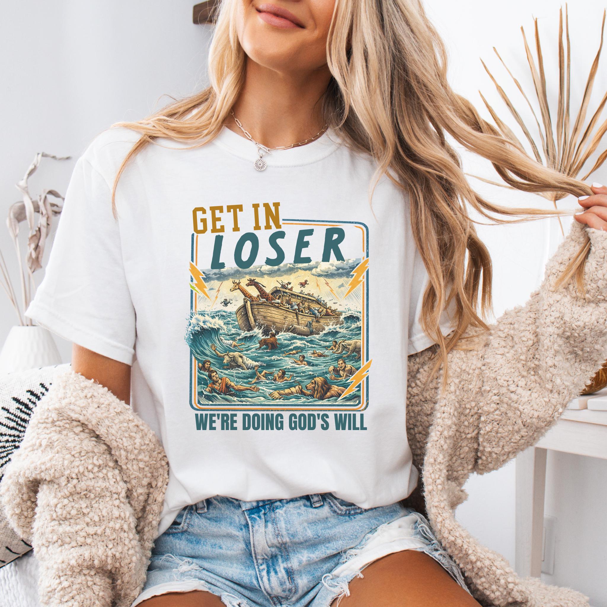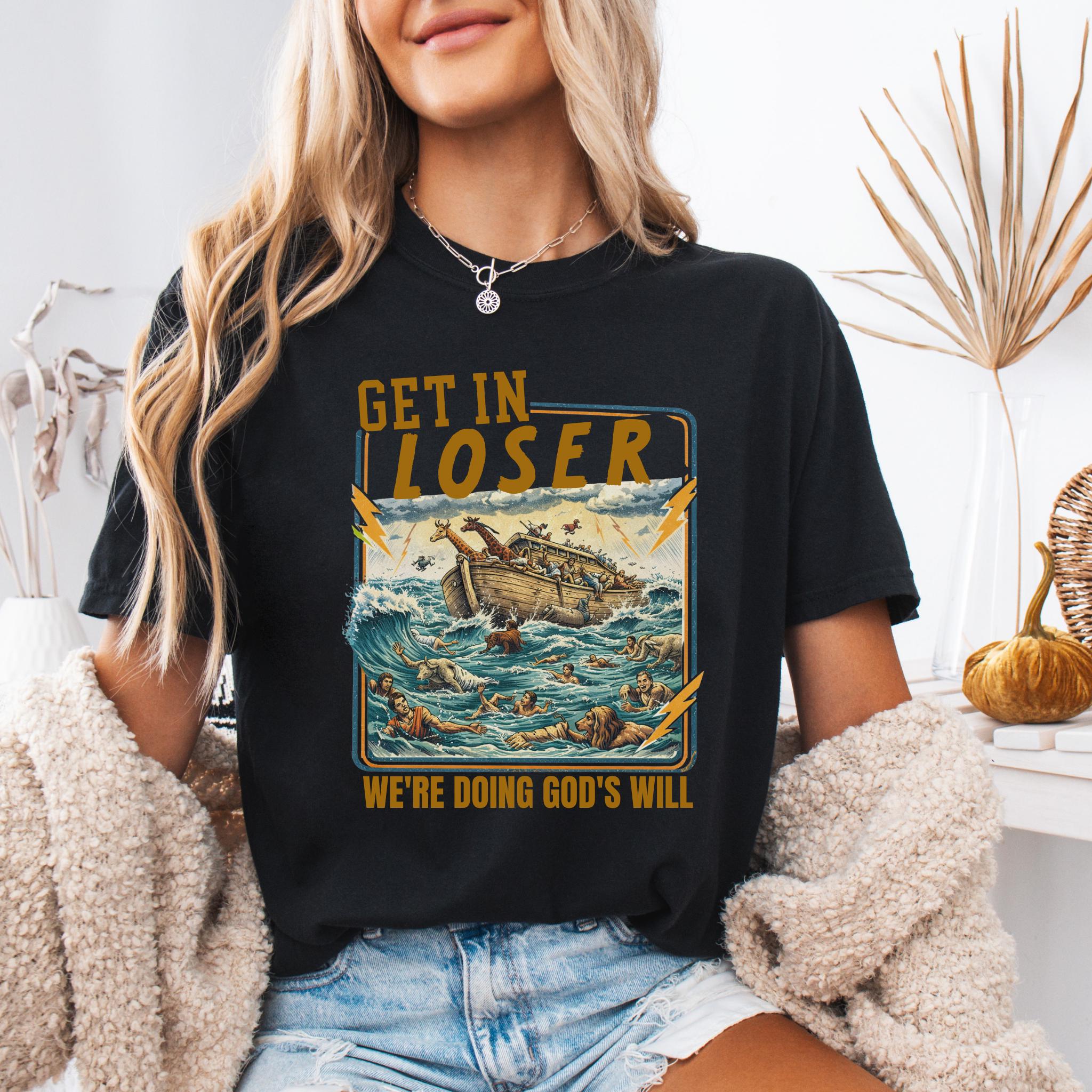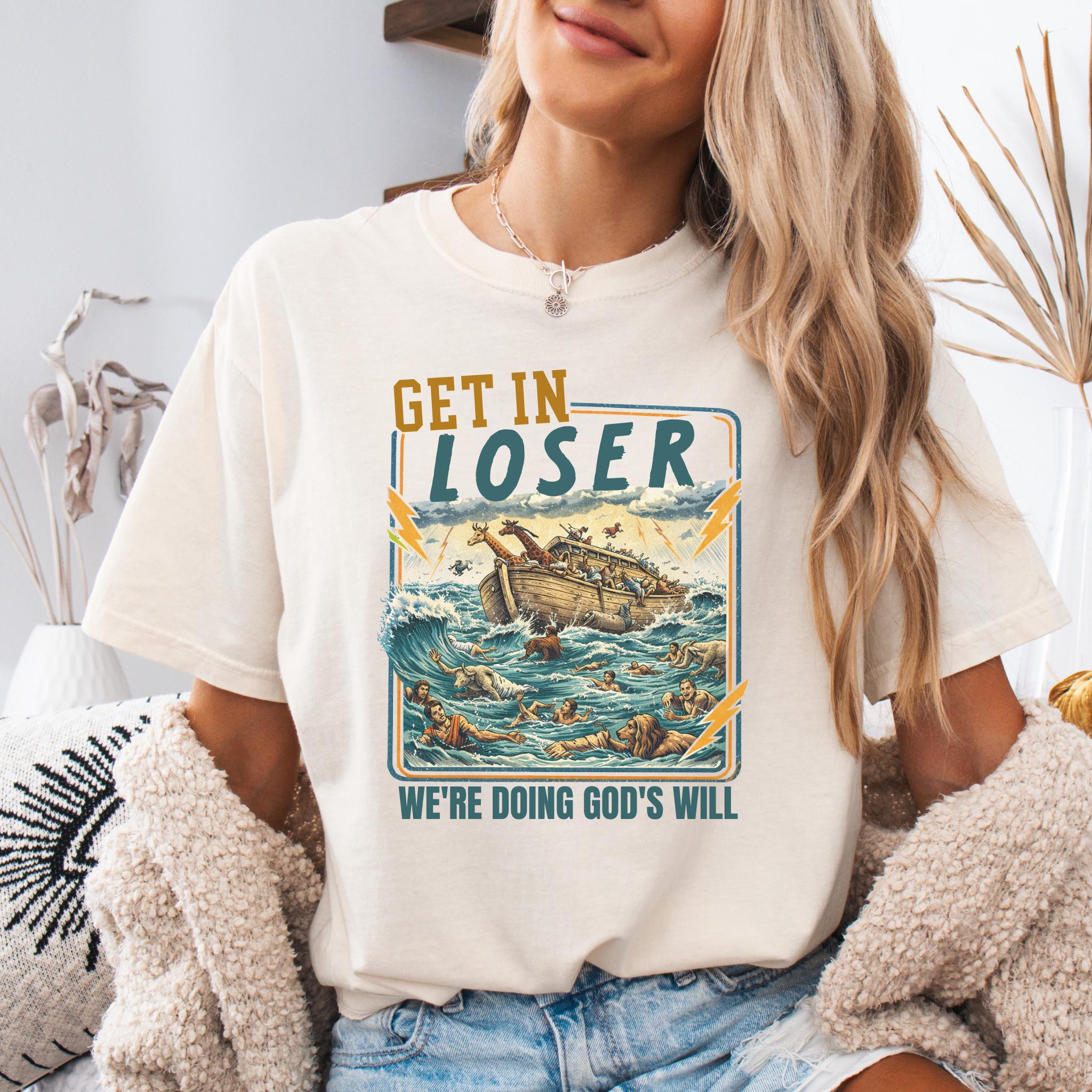 This Get In Loser We’re Doing God’s Will shirt blends vintage humor with faith-inspired design for a bold and memorable graphic tee.
