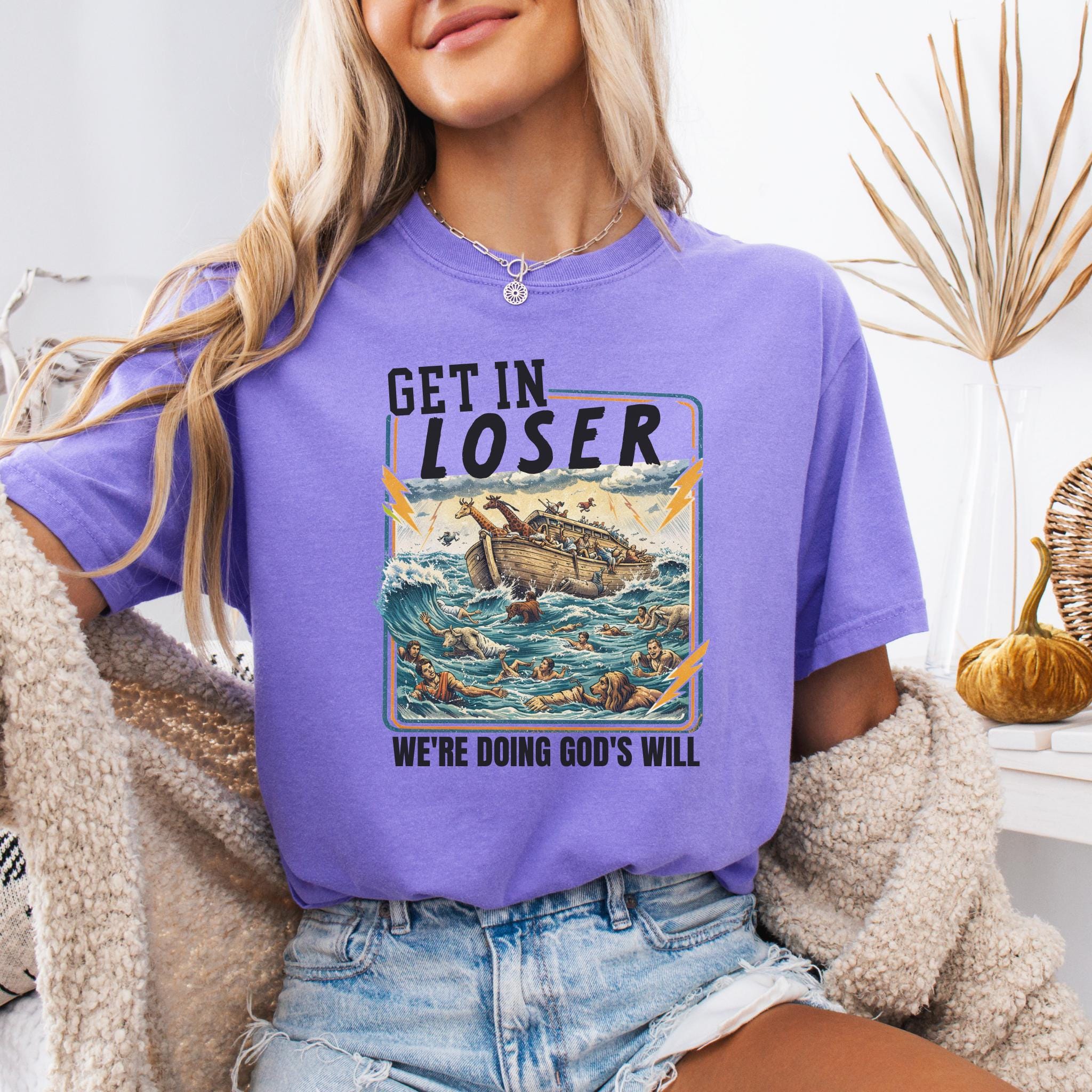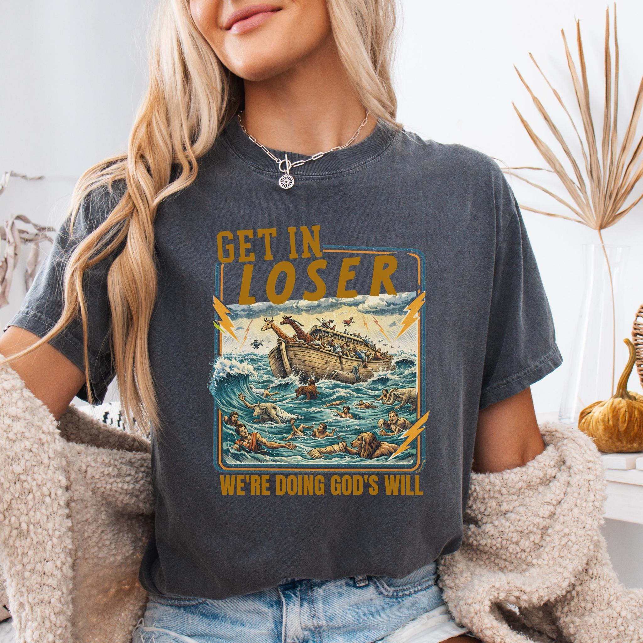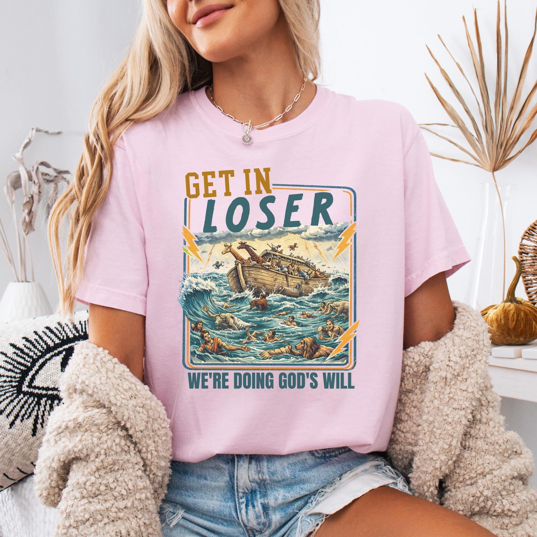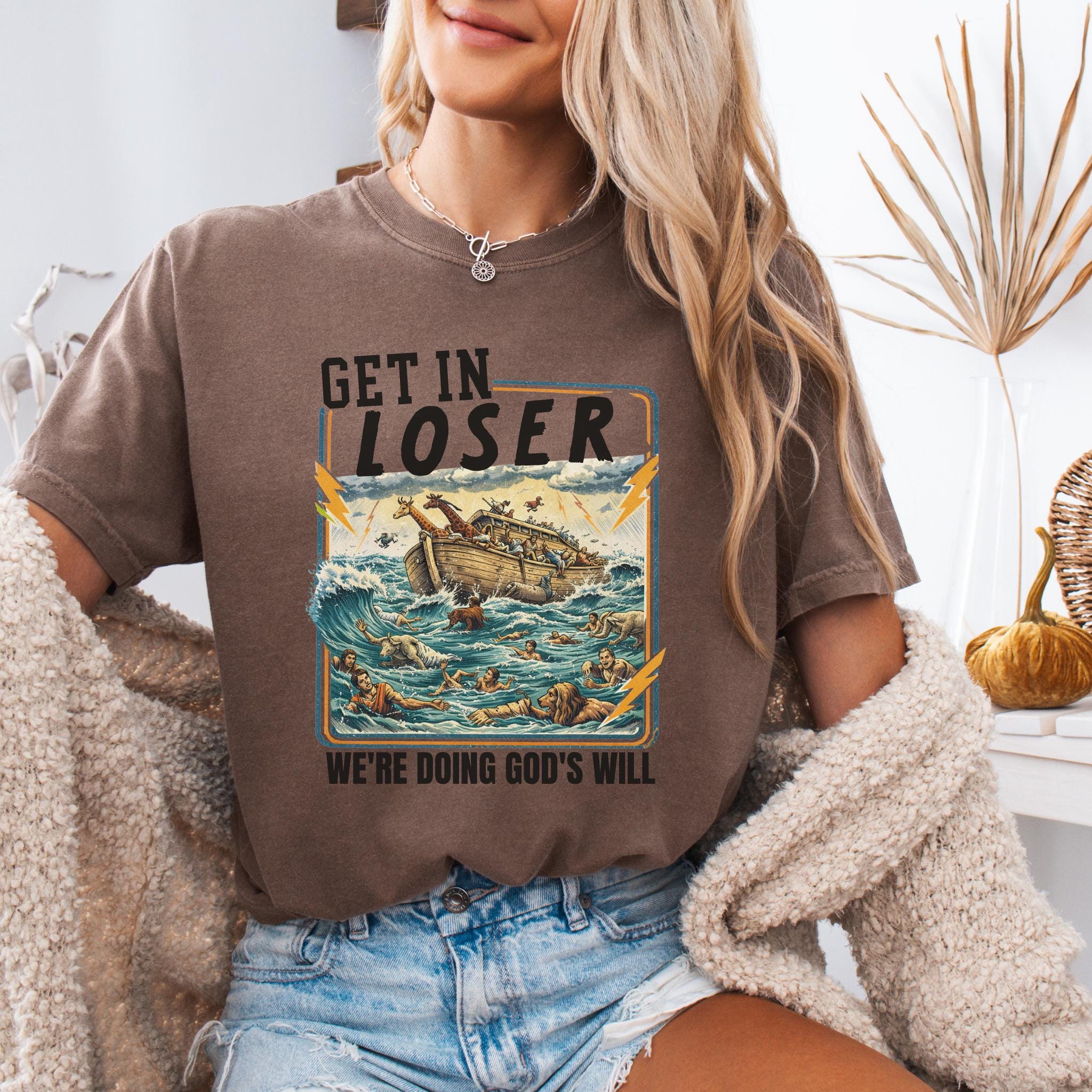 This Get In Loser We’re Doing God’s Will shirt blends vintage humor with faith-inspired design for a bold and memorable graphic tee.