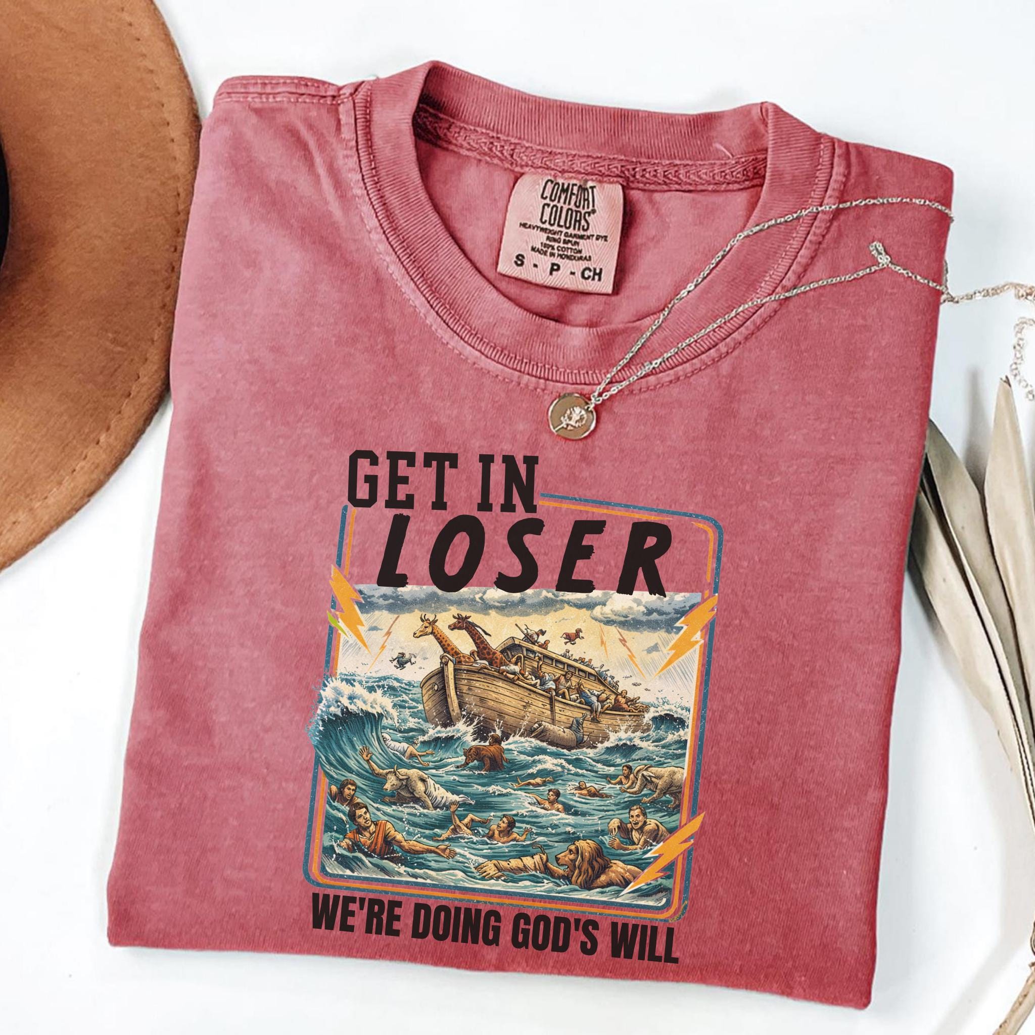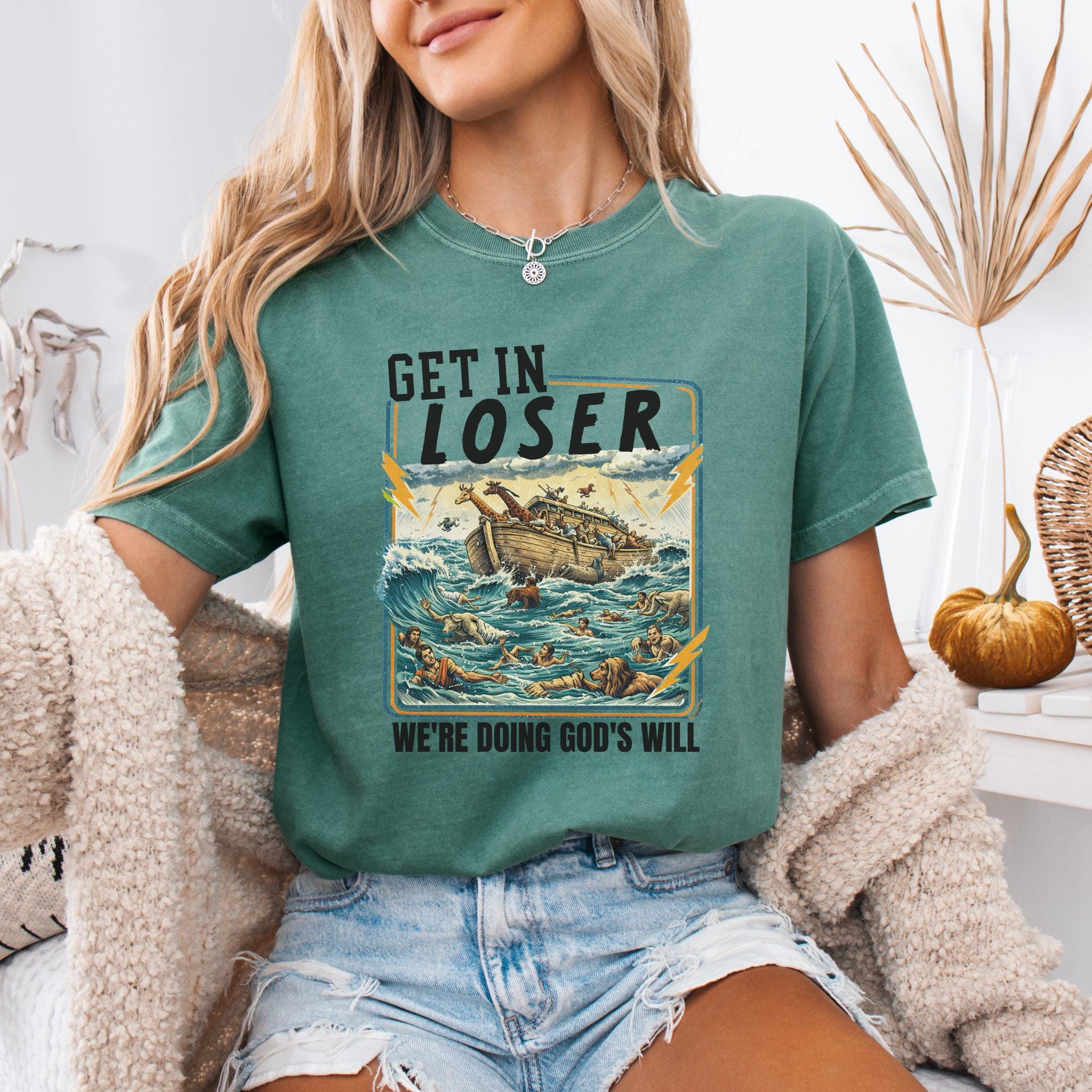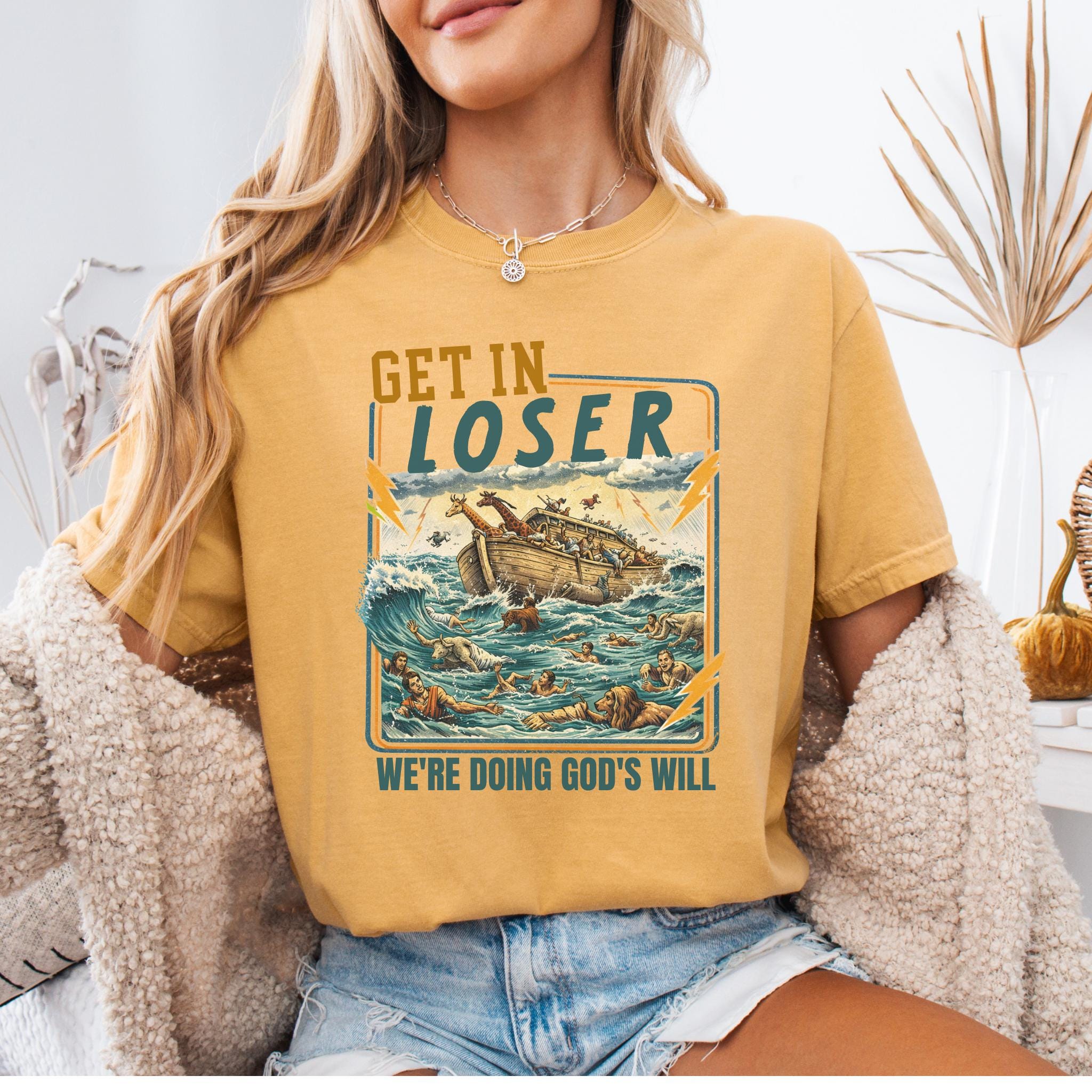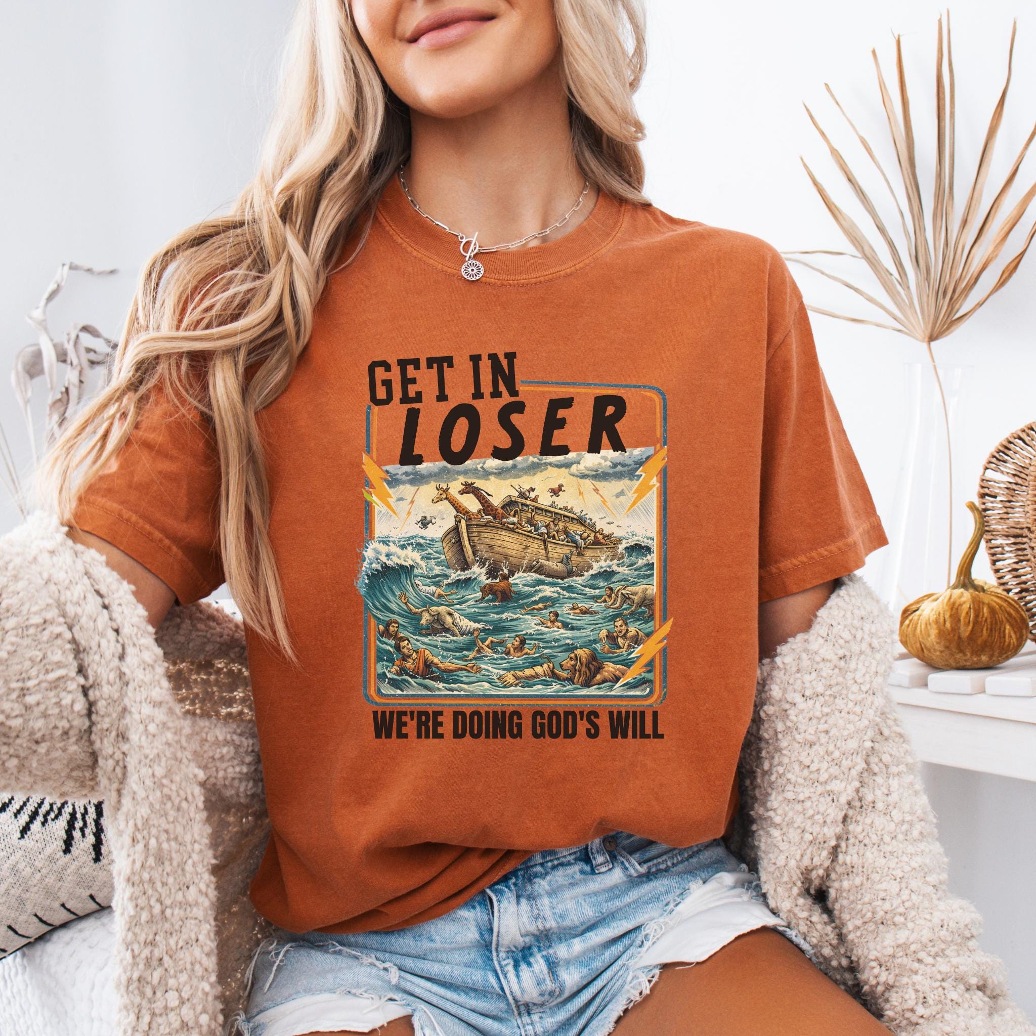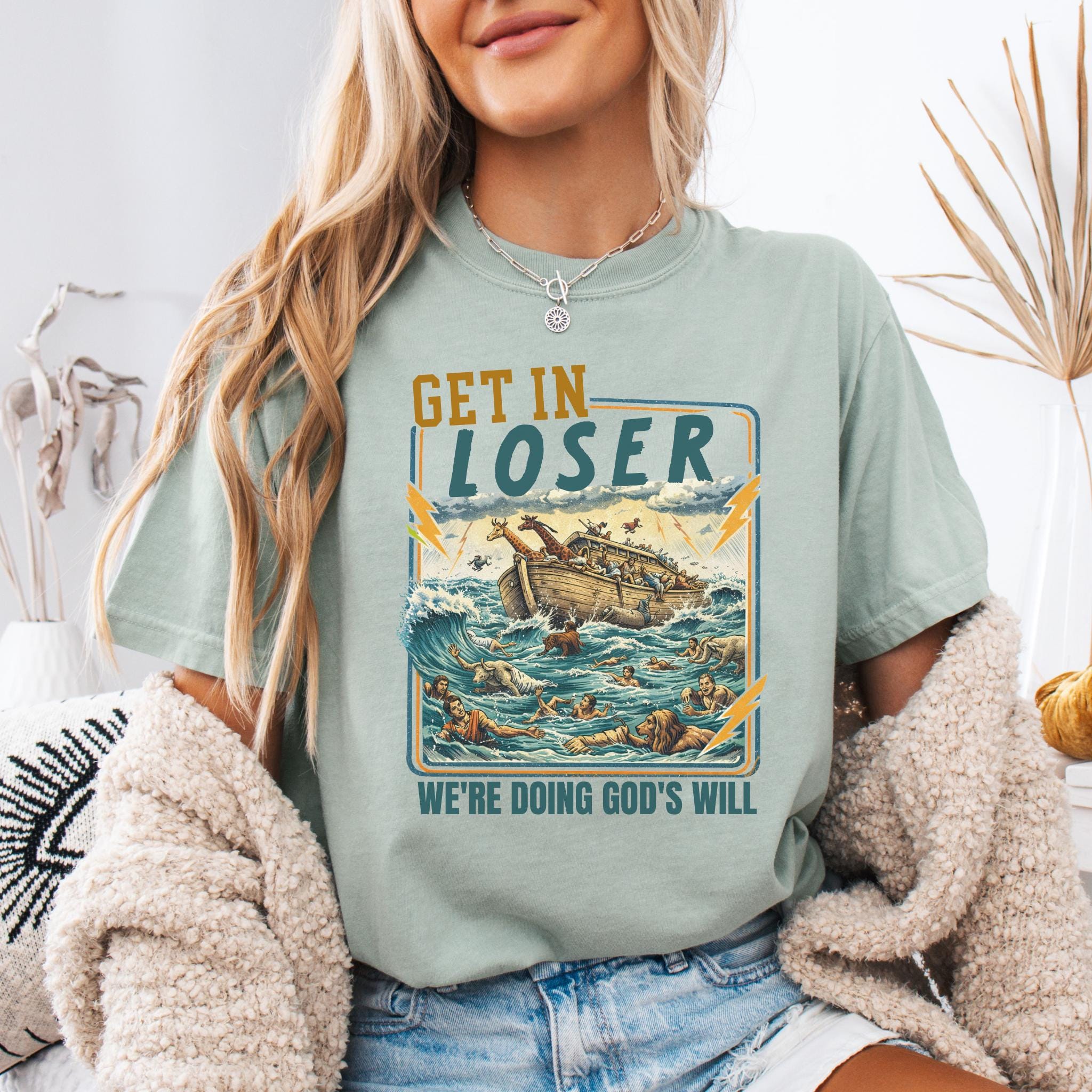This Get In Loser We’re Doing God’s Will shirt blends vintage humor with faith-inspired design for a bold and memorable graphic tee.