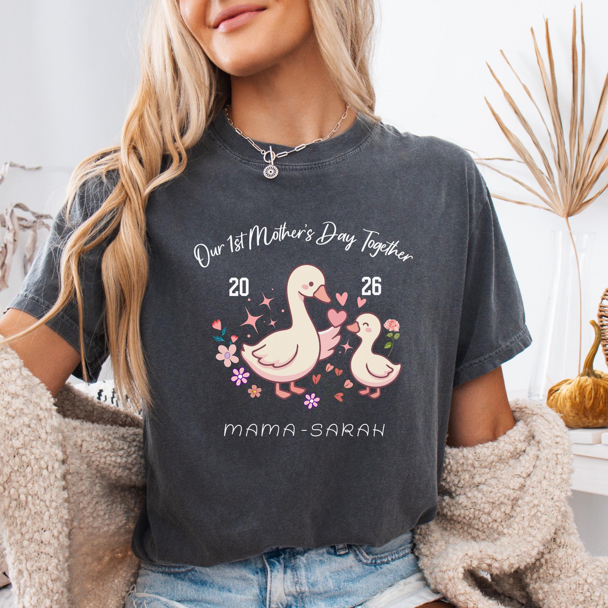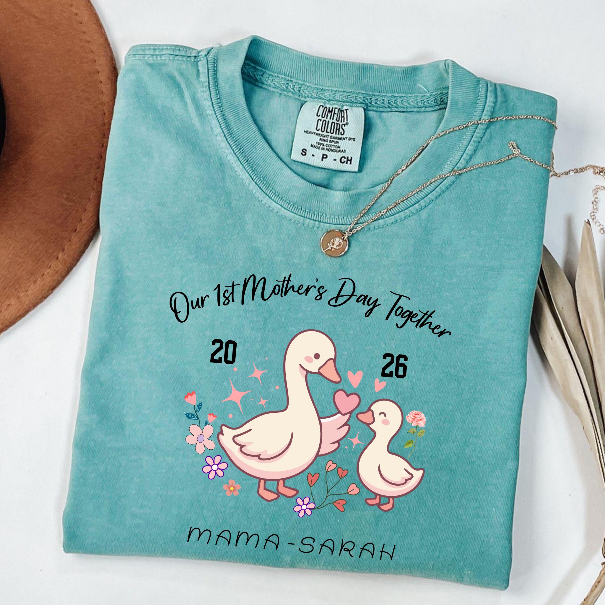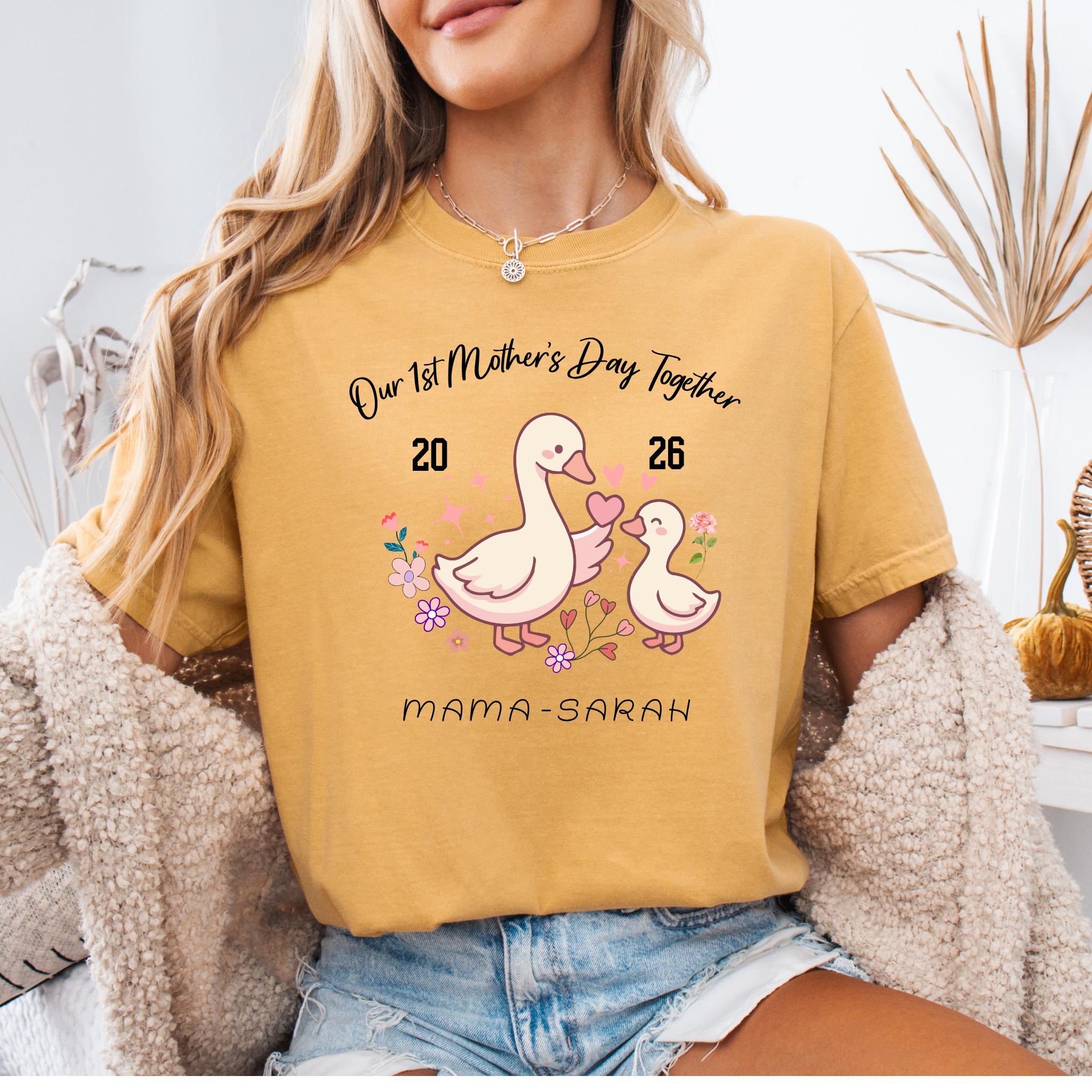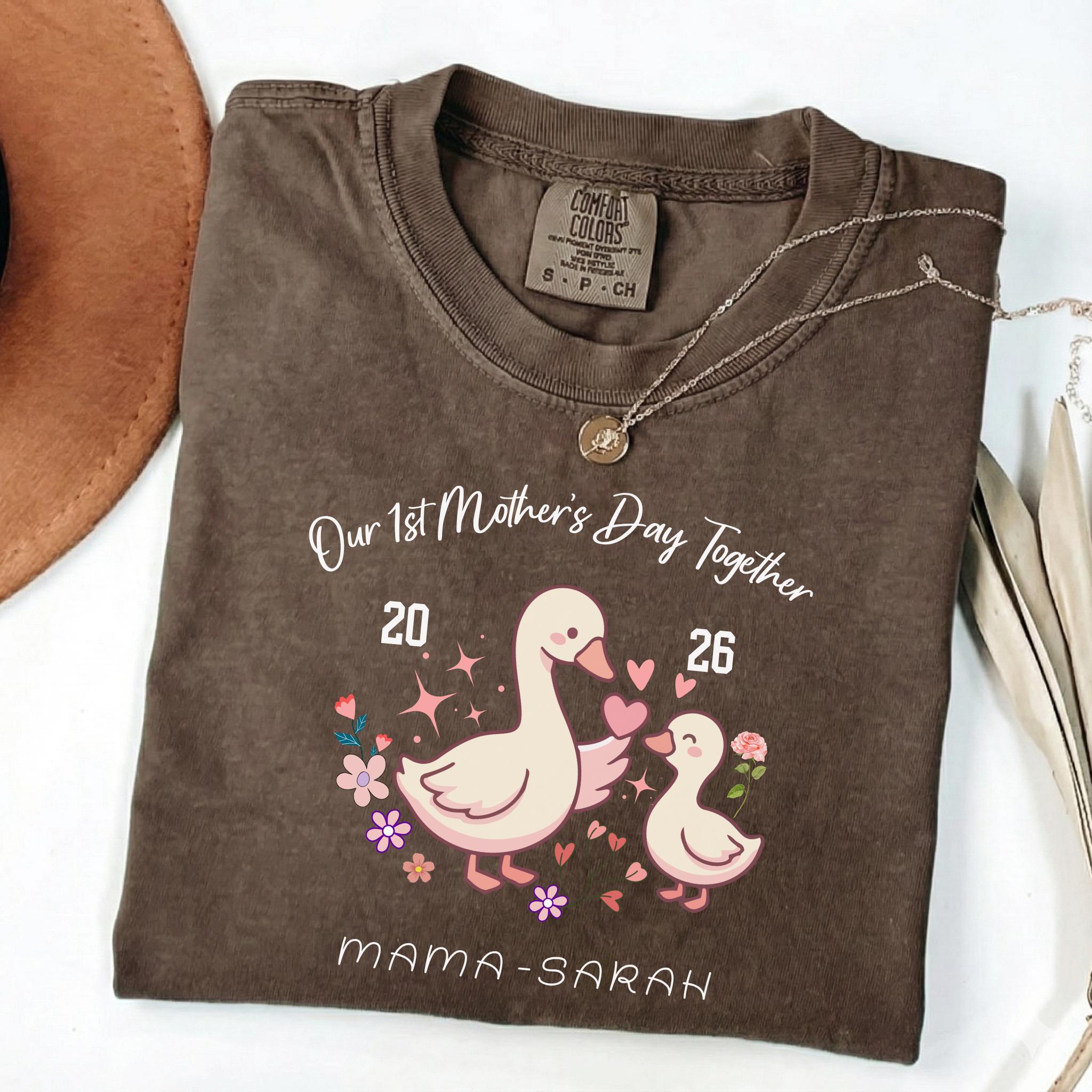 Celebrate a special milestone with this adorable Our 1st Mother's Day Together design featuring a sweet mama and baby goose illustration. This personalized design is perfect for honoring a first Mother’s Day with a custom name or title, making it a meaningful keepsake for new moms.