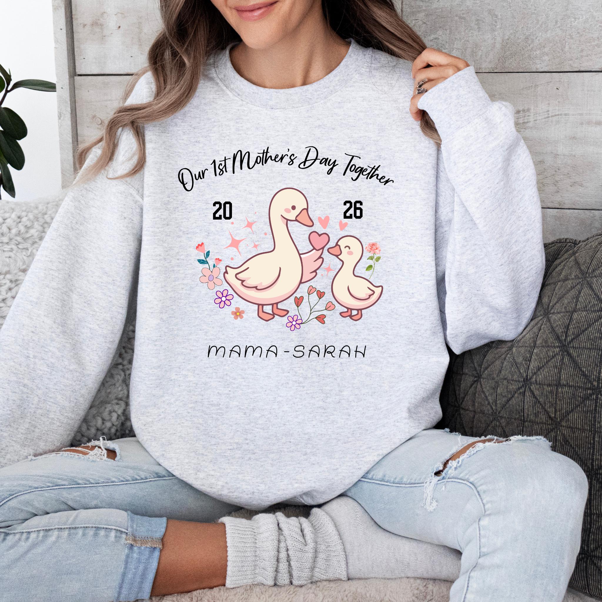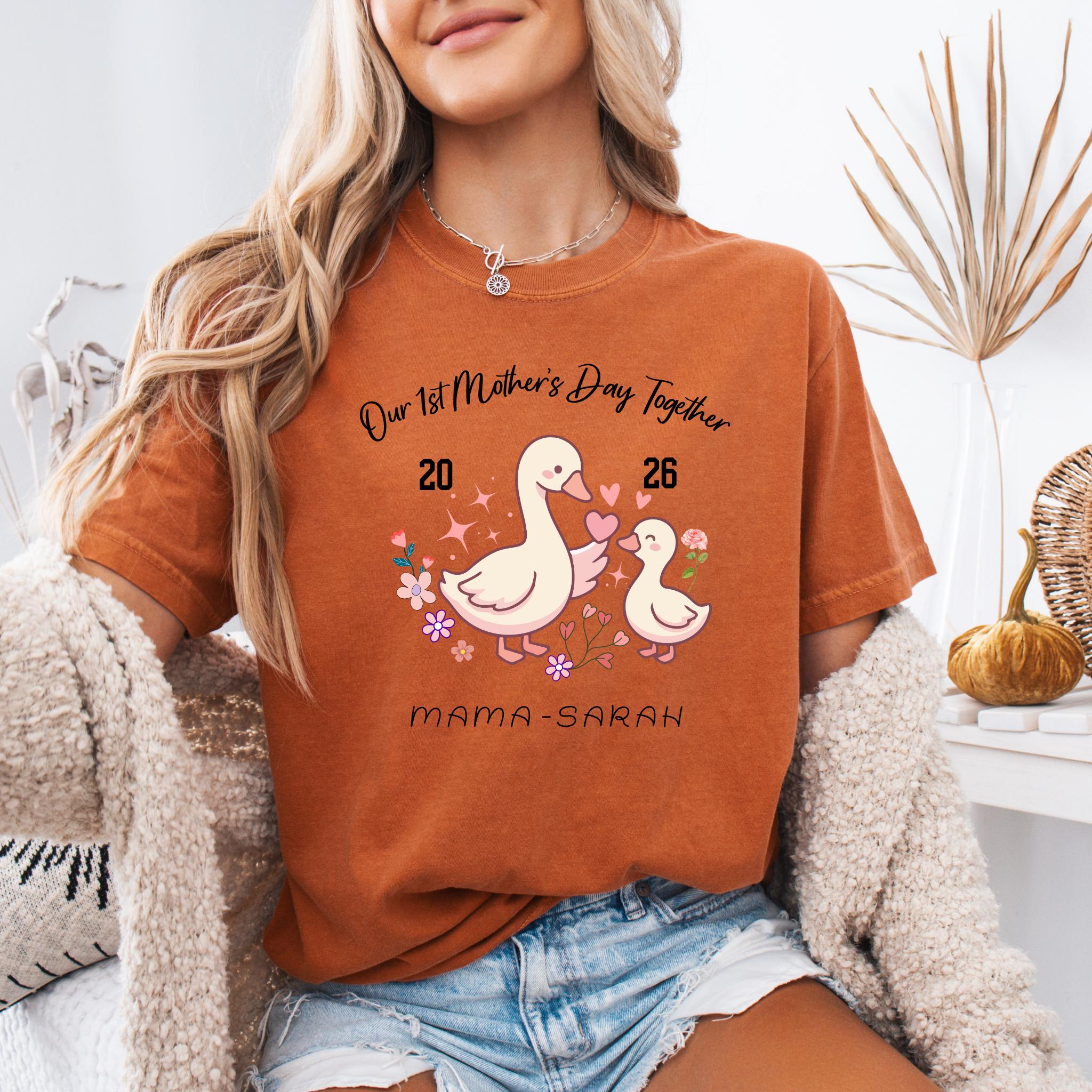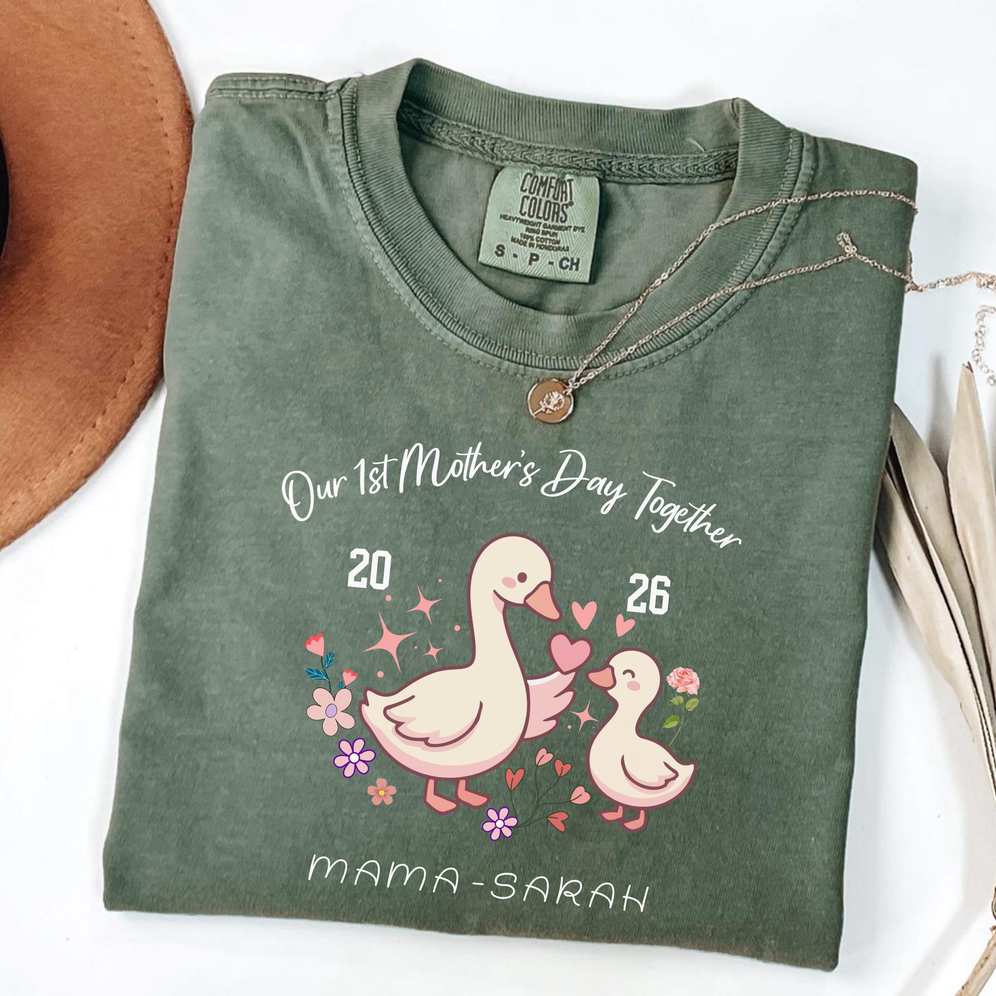 Celebrate a special milestone with this adorable Our 1st Mother's Day Together design featuring a sweet mama and baby goose illustration. This personalized design is perfect for honoring a first Mother’s Day with a custom name or title, making it a meaningful keepsake for new moms.