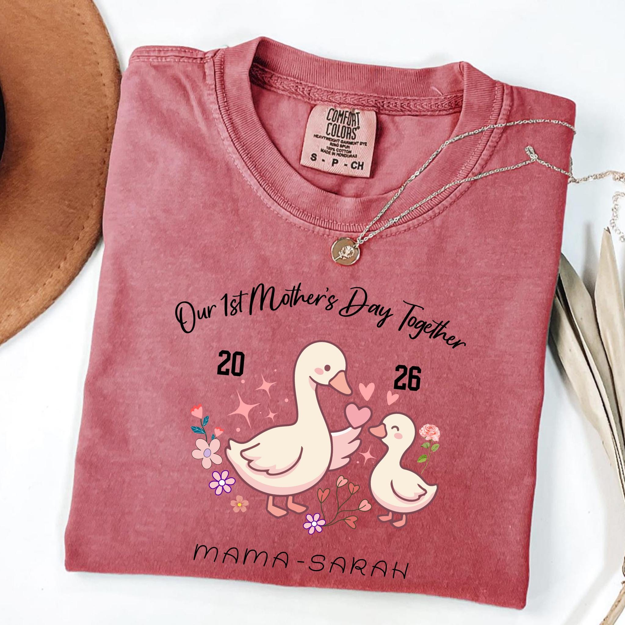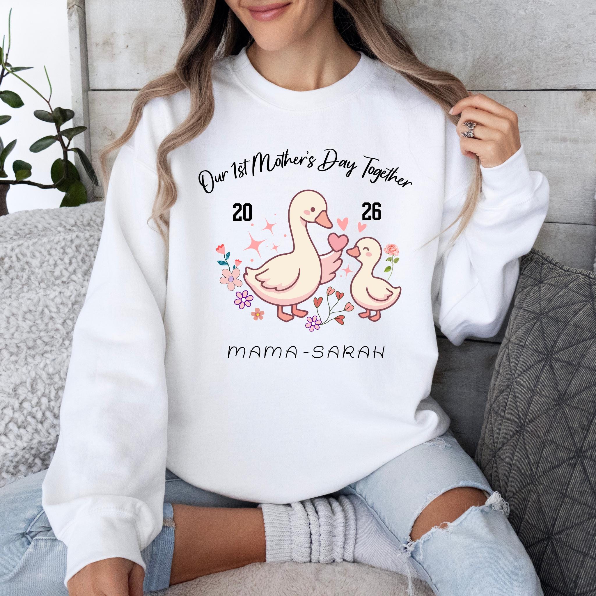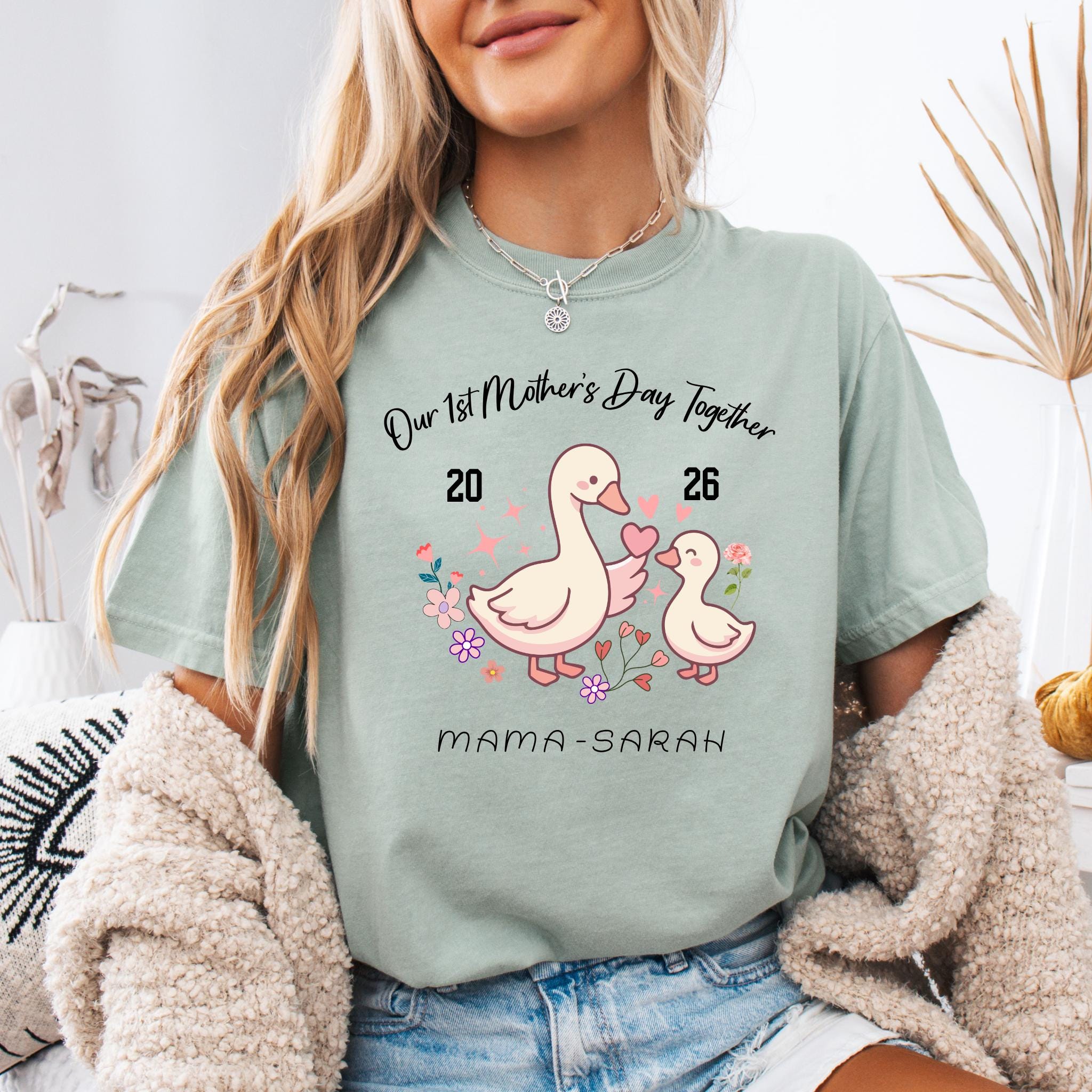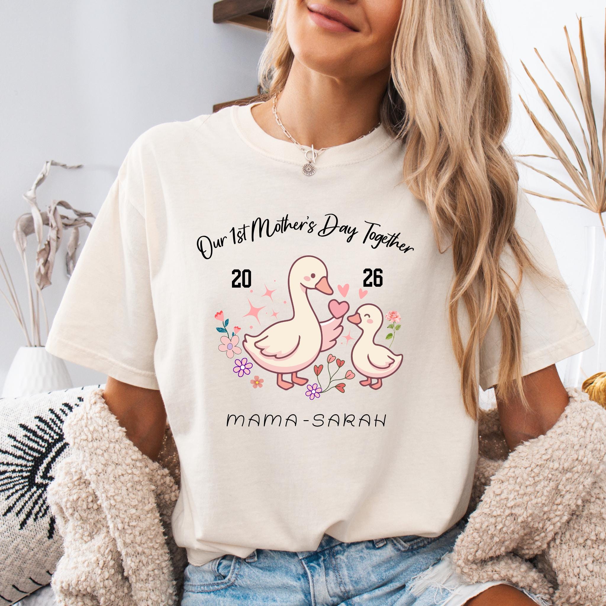 Celebrate a special milestone with this adorable Our 1st Mother's Day Together design featuring a sweet mama and baby goose illustration. This personalized design is perfect for honoring a first Mother’s Day with a custom name or title, making it a meaningful keepsake for new moms.