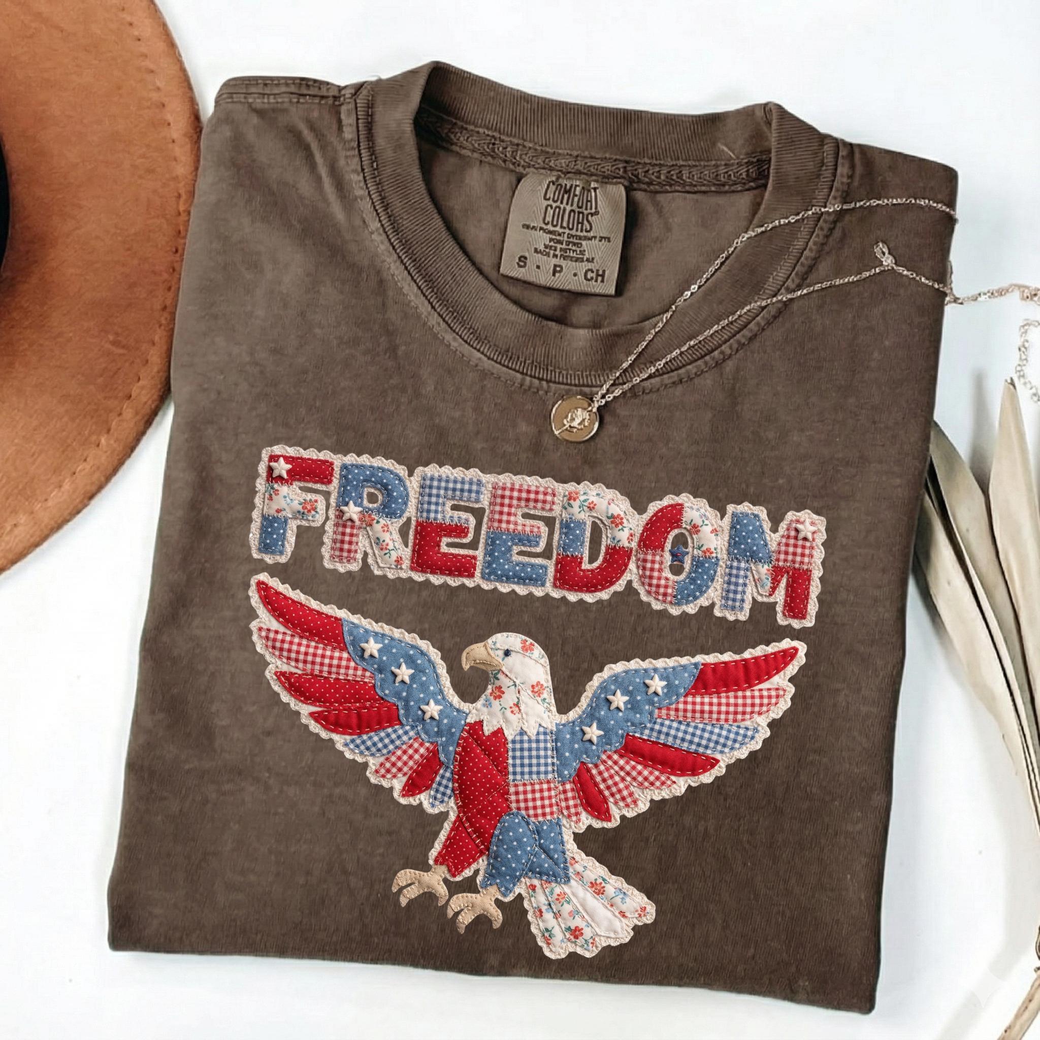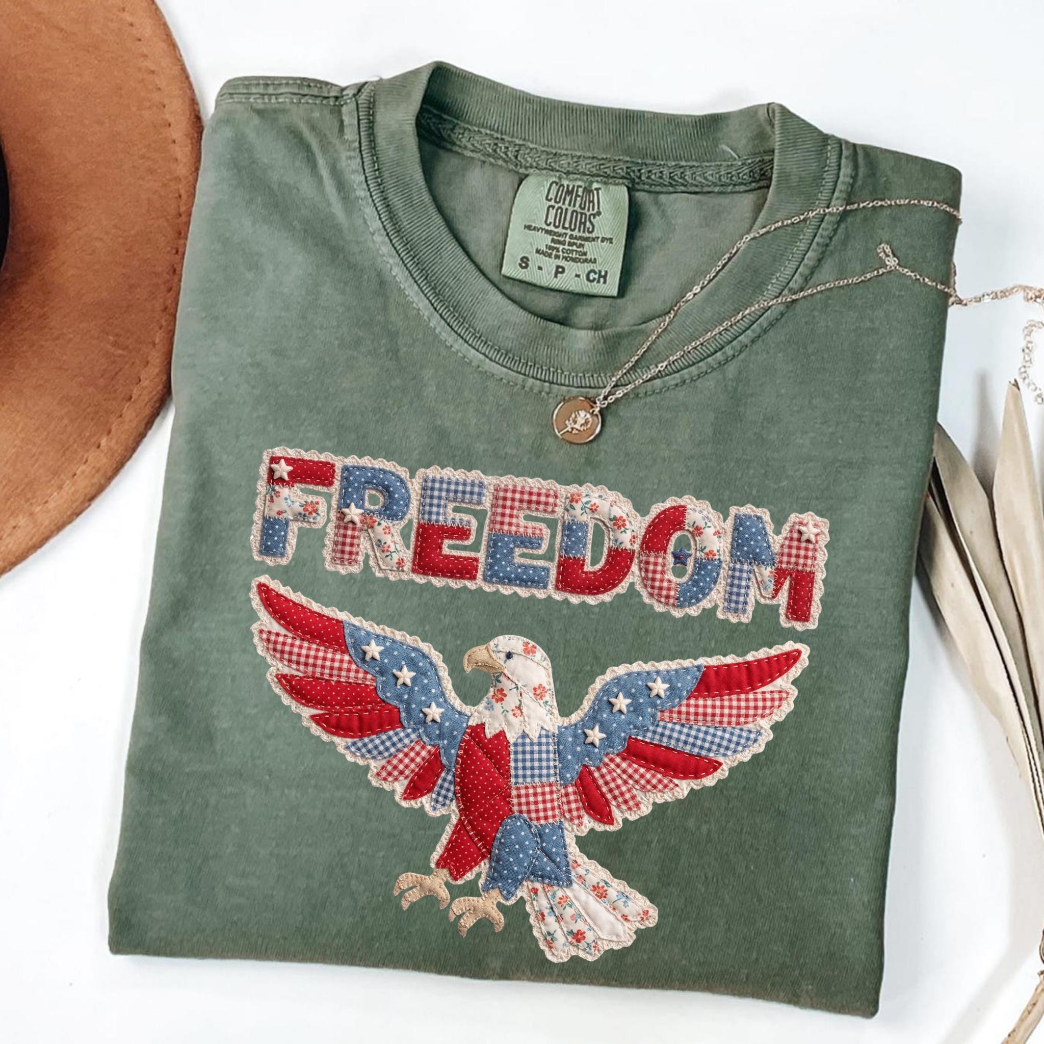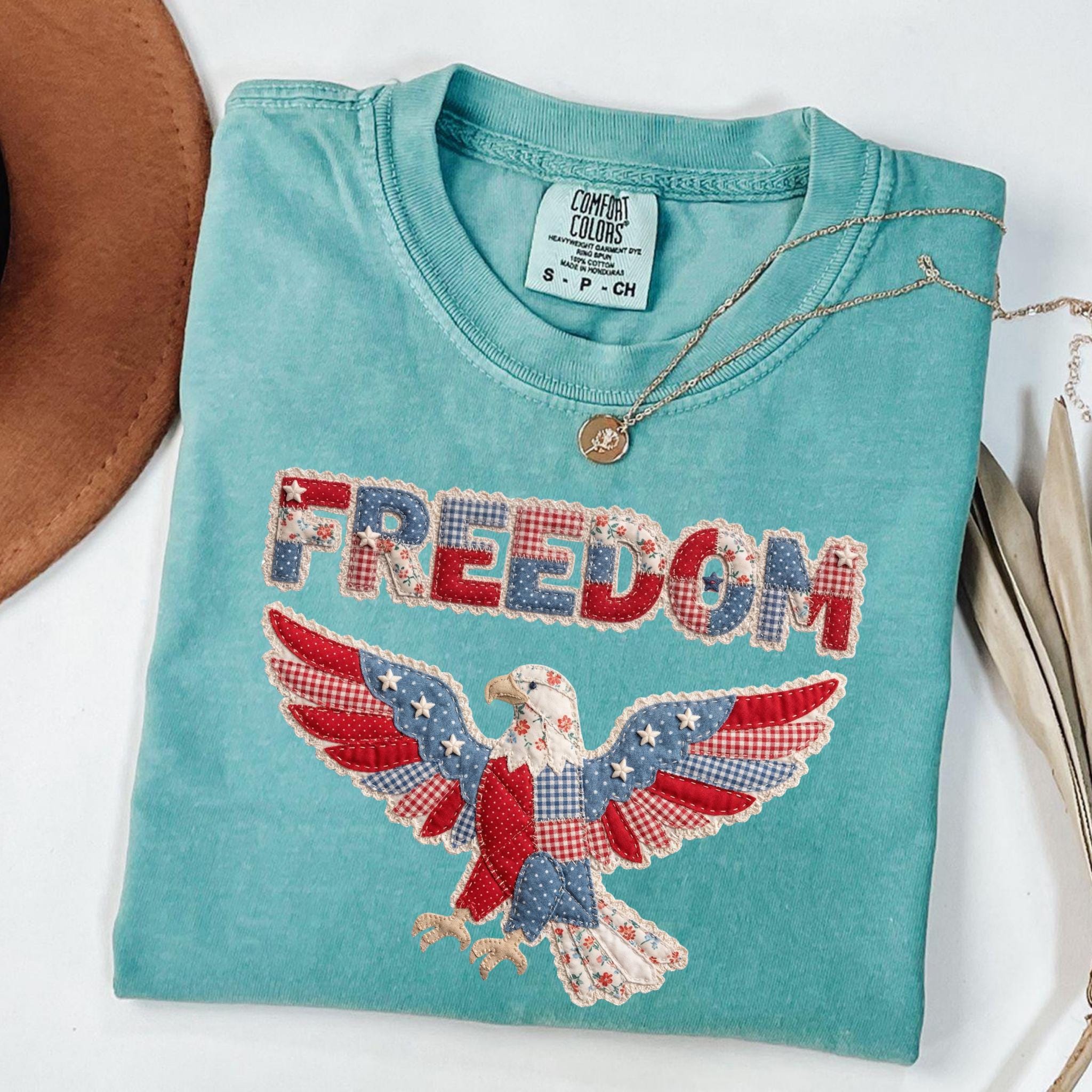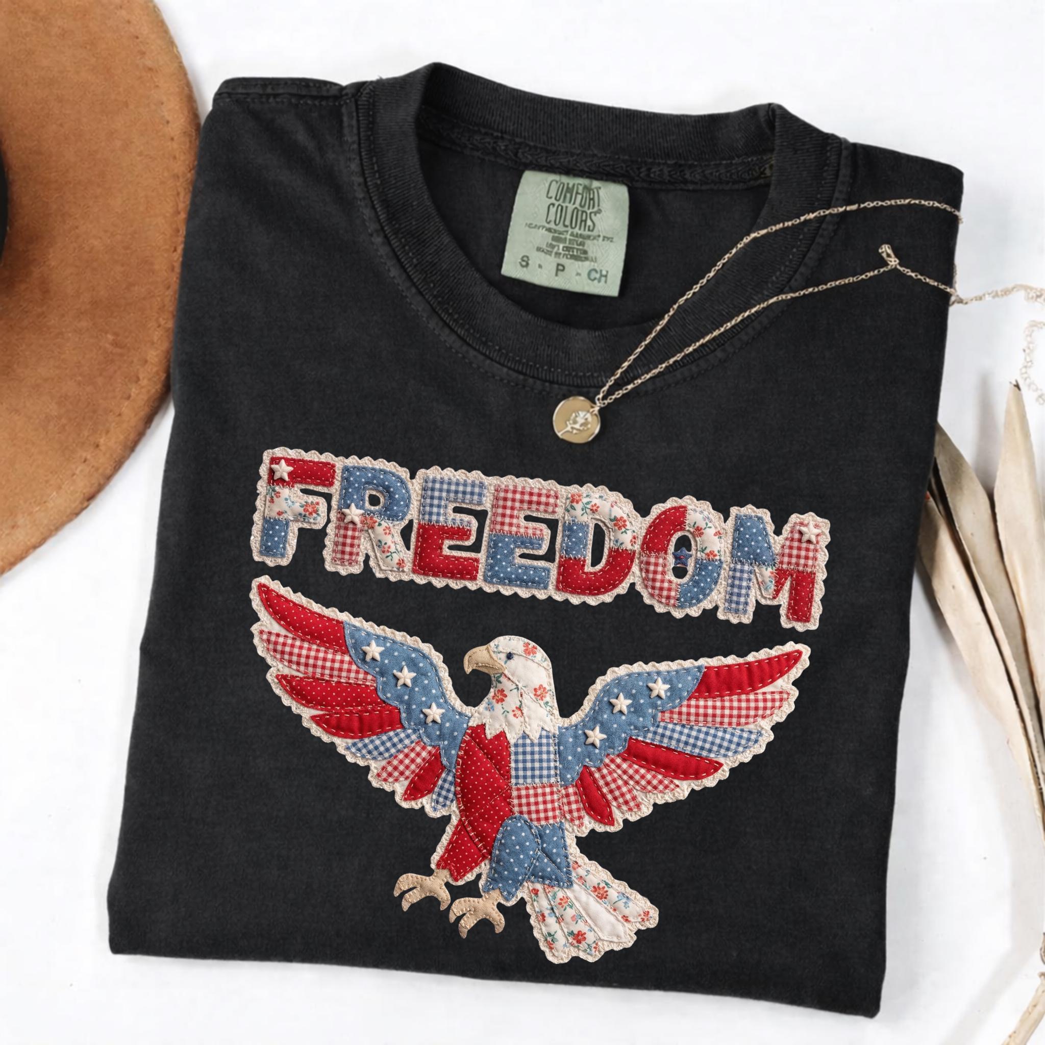 Celebrate freedom in style with this bold and unique Patchwork Freedom Eagle Patriotic Shirt, featuring a patchwork-inspired American eagle design with vintage Americana vibes.