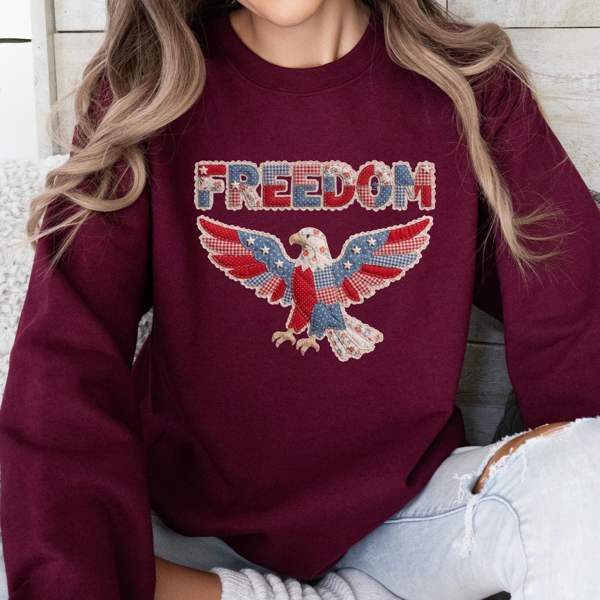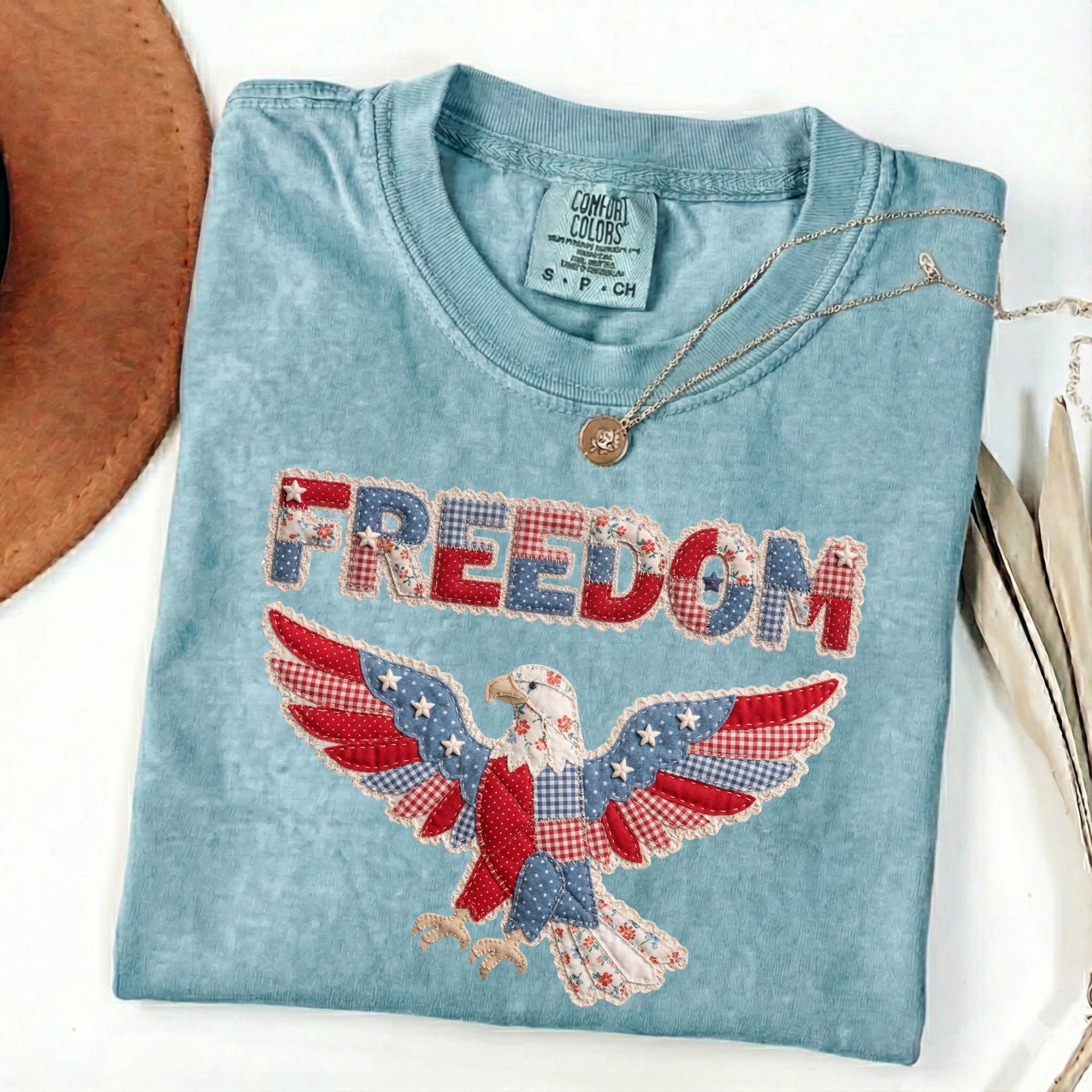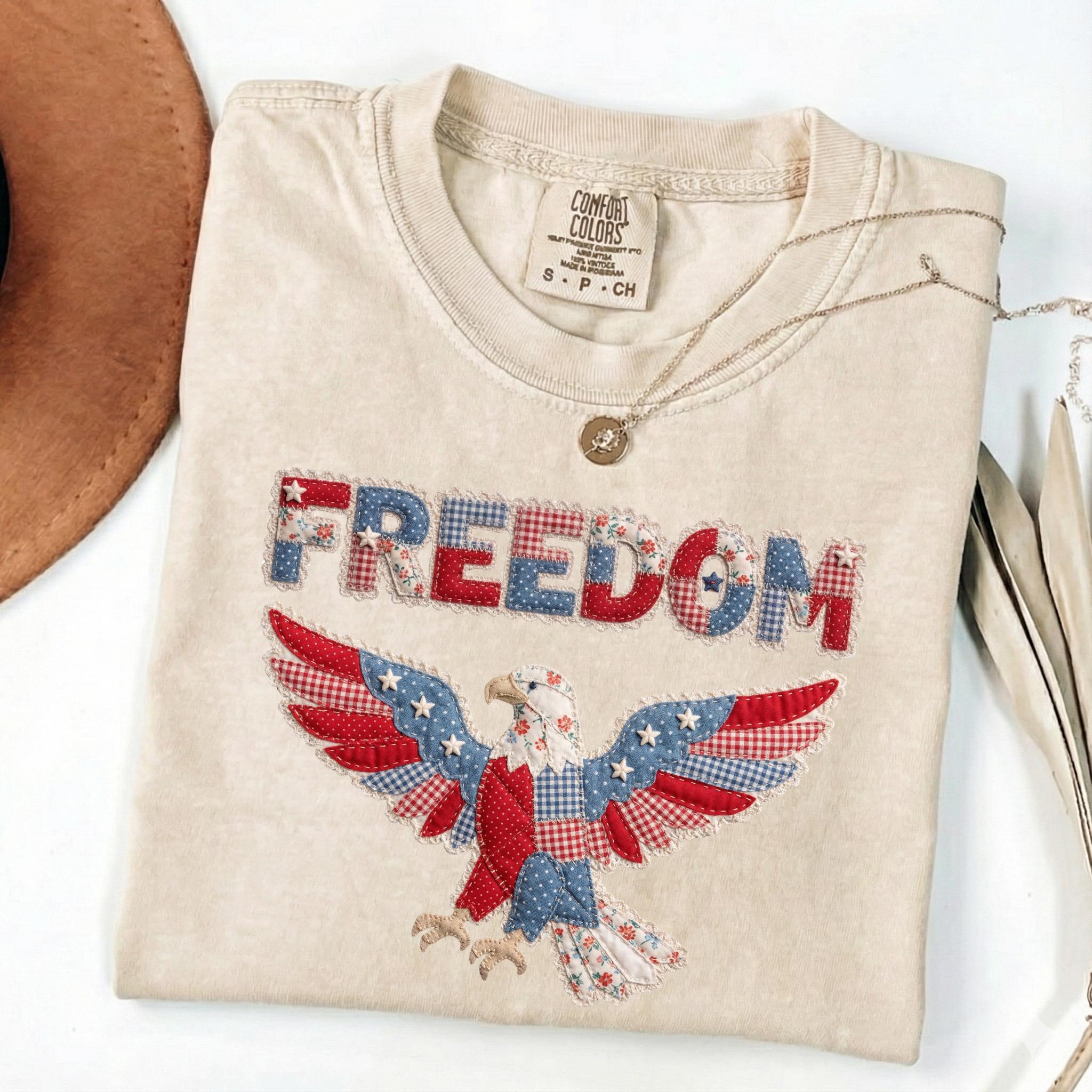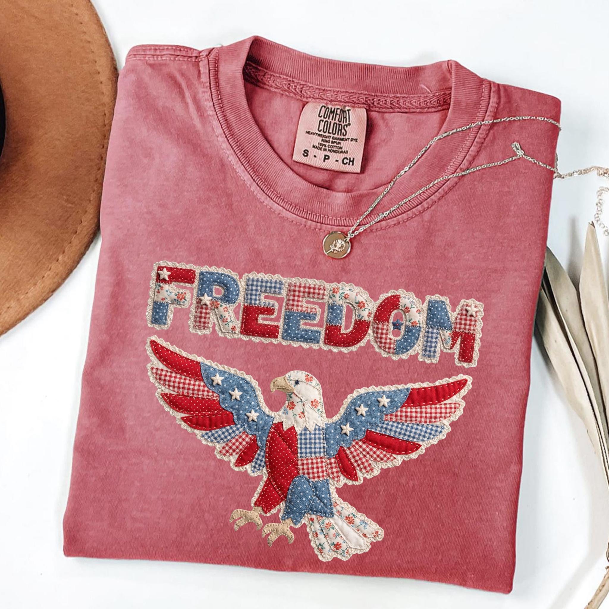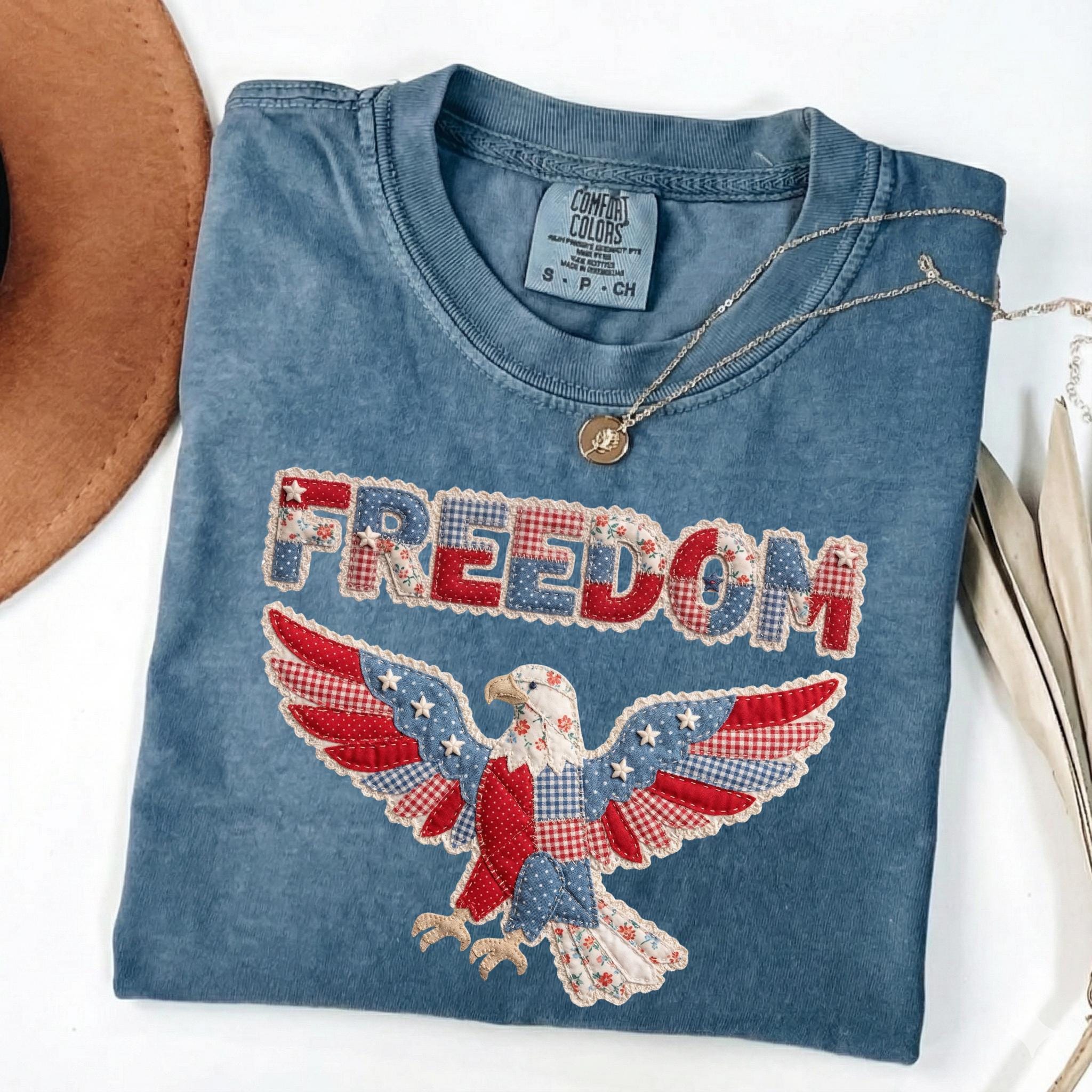 Celebrate freedom in style with this bold and unique Patchwork Freedom Eagle Patriotic Shirt, featuring a patchwork-inspired American eagle design with vintage Americana vibes.
