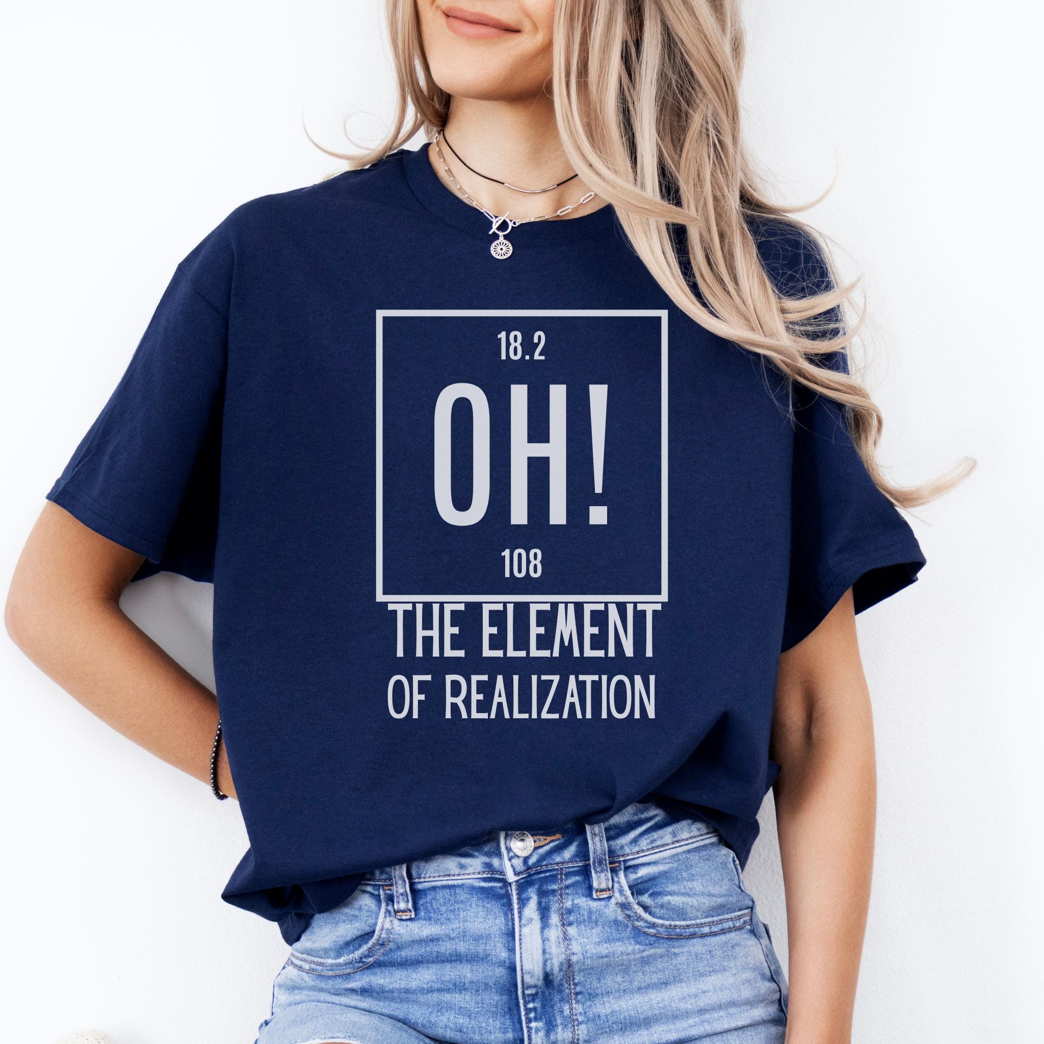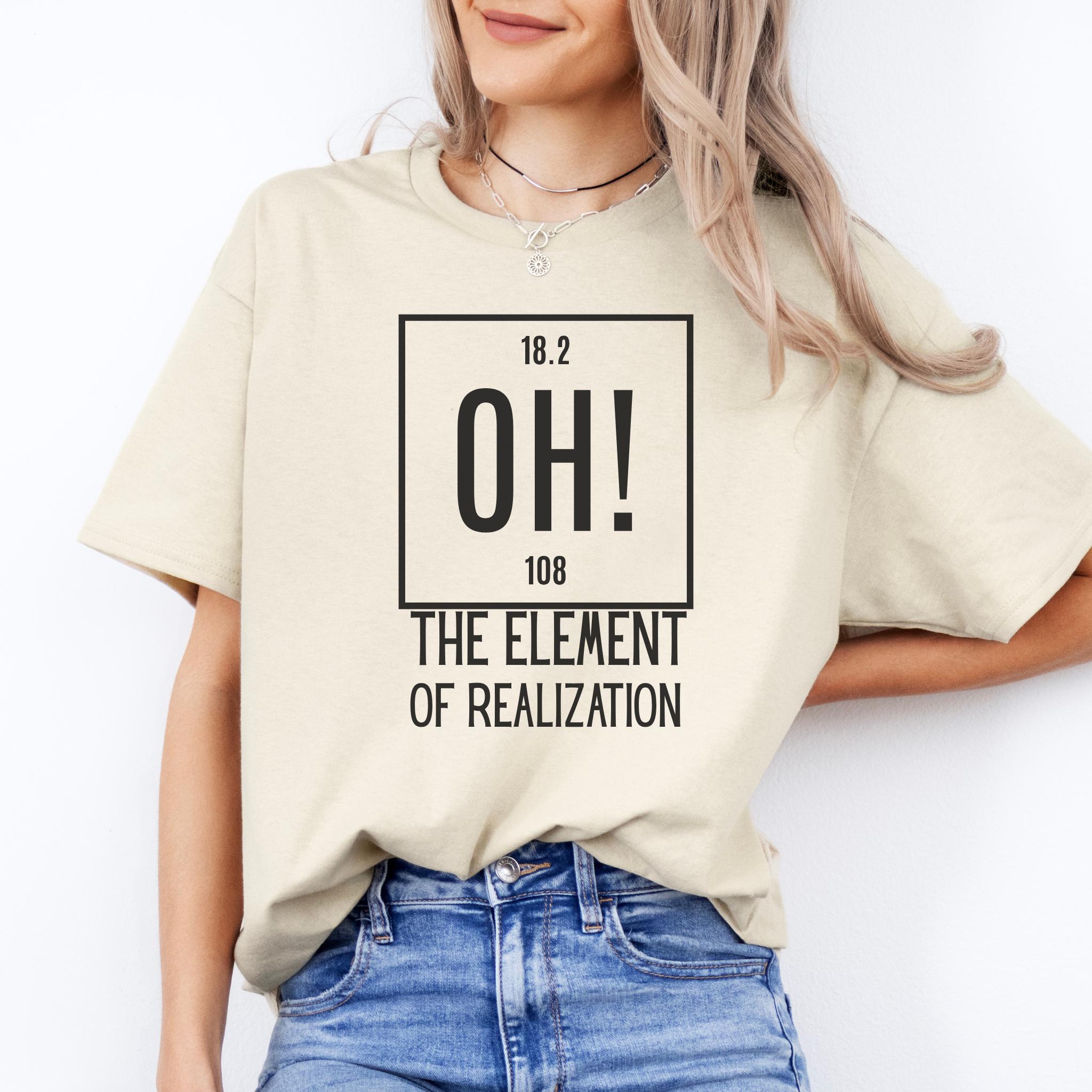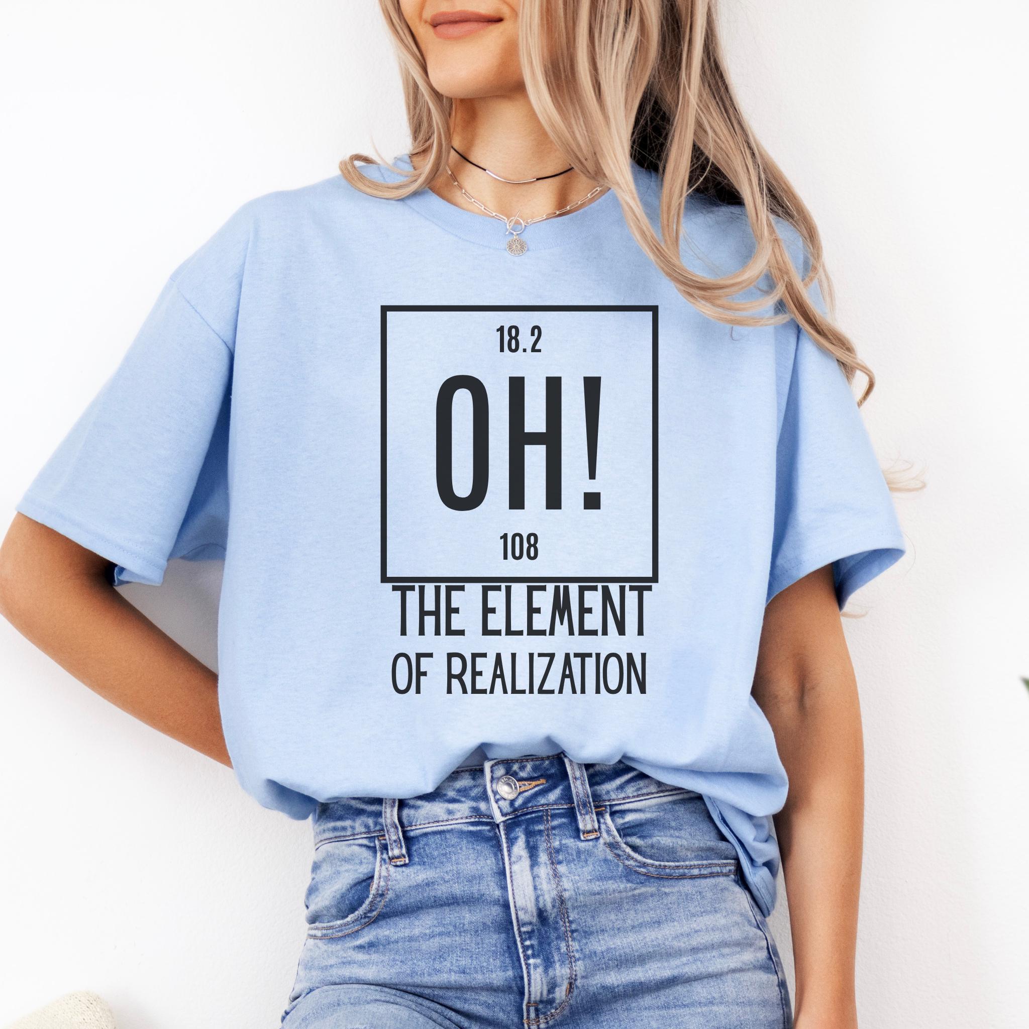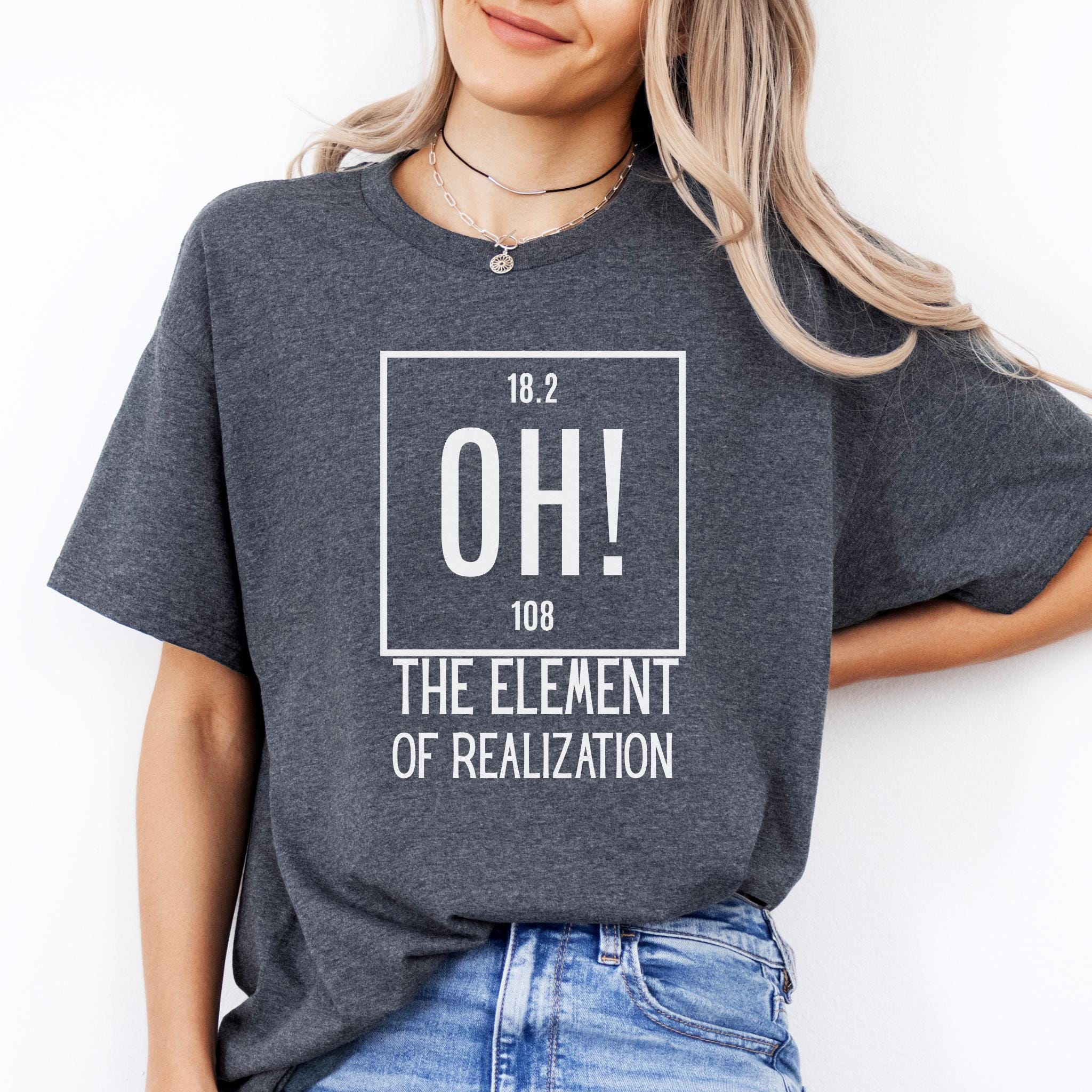 Some moments hit all at once—and this clever OH! The Element of Realization shirt captures that feeling with smart humor and a clean minimalist design. It is the perfect mix of wit, surprise, and personality for anyone who loves science jokes with a sharp, relatable twist.