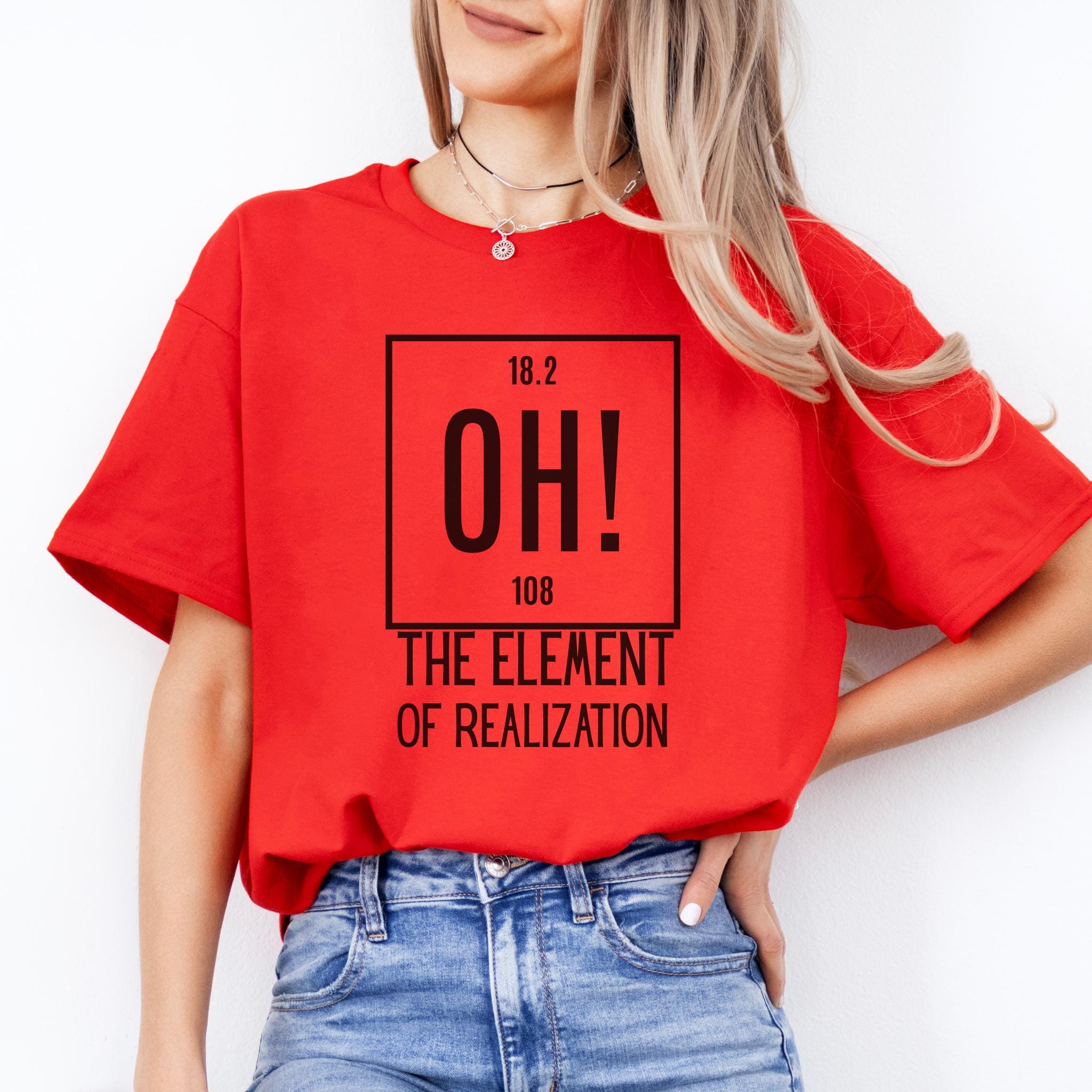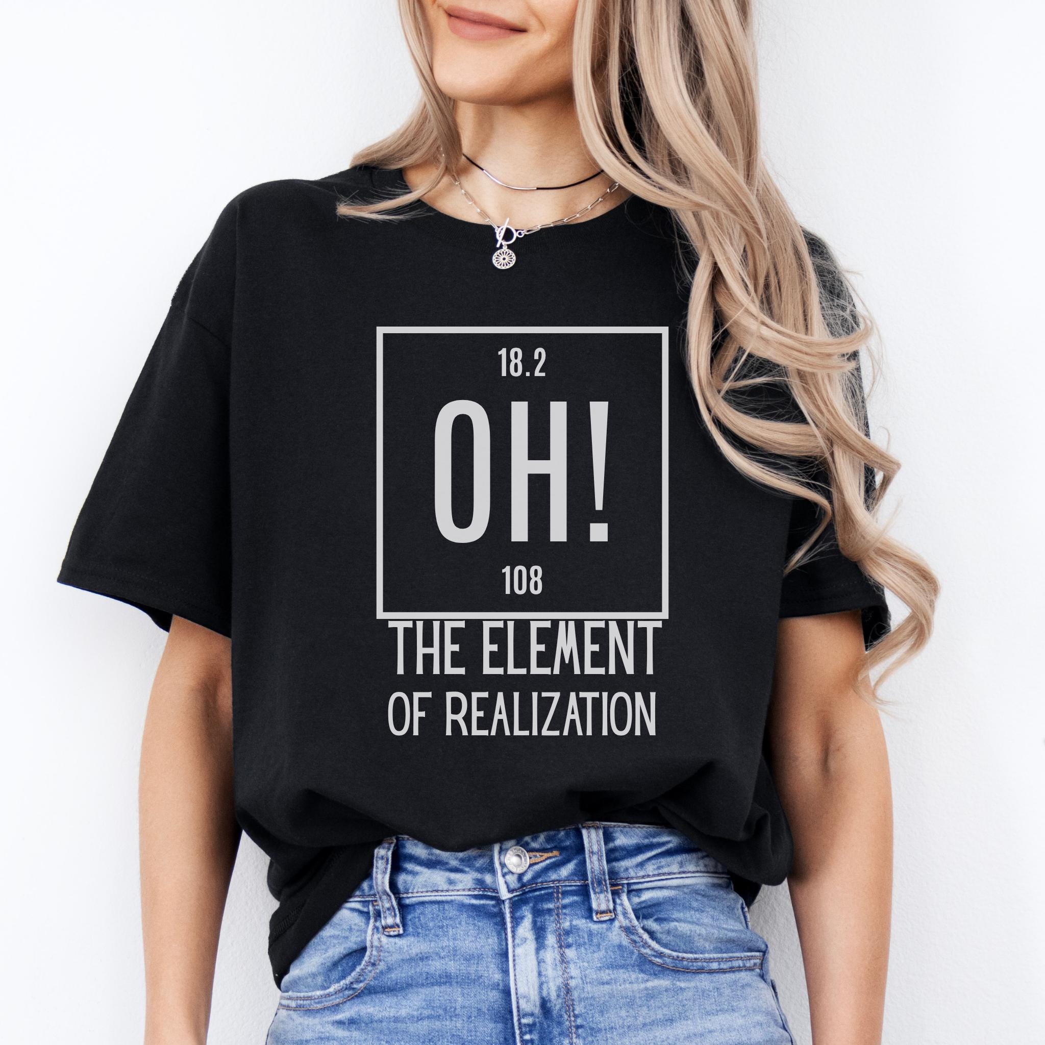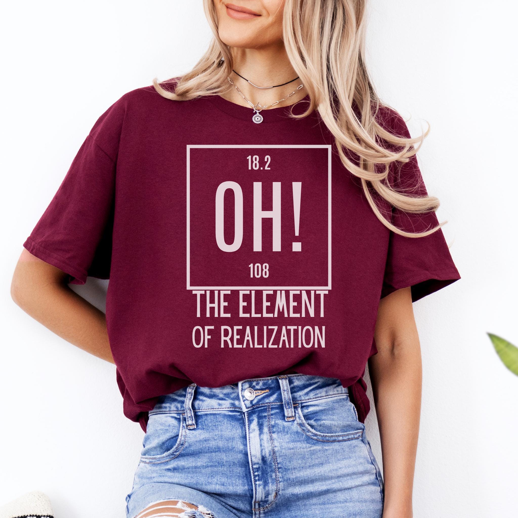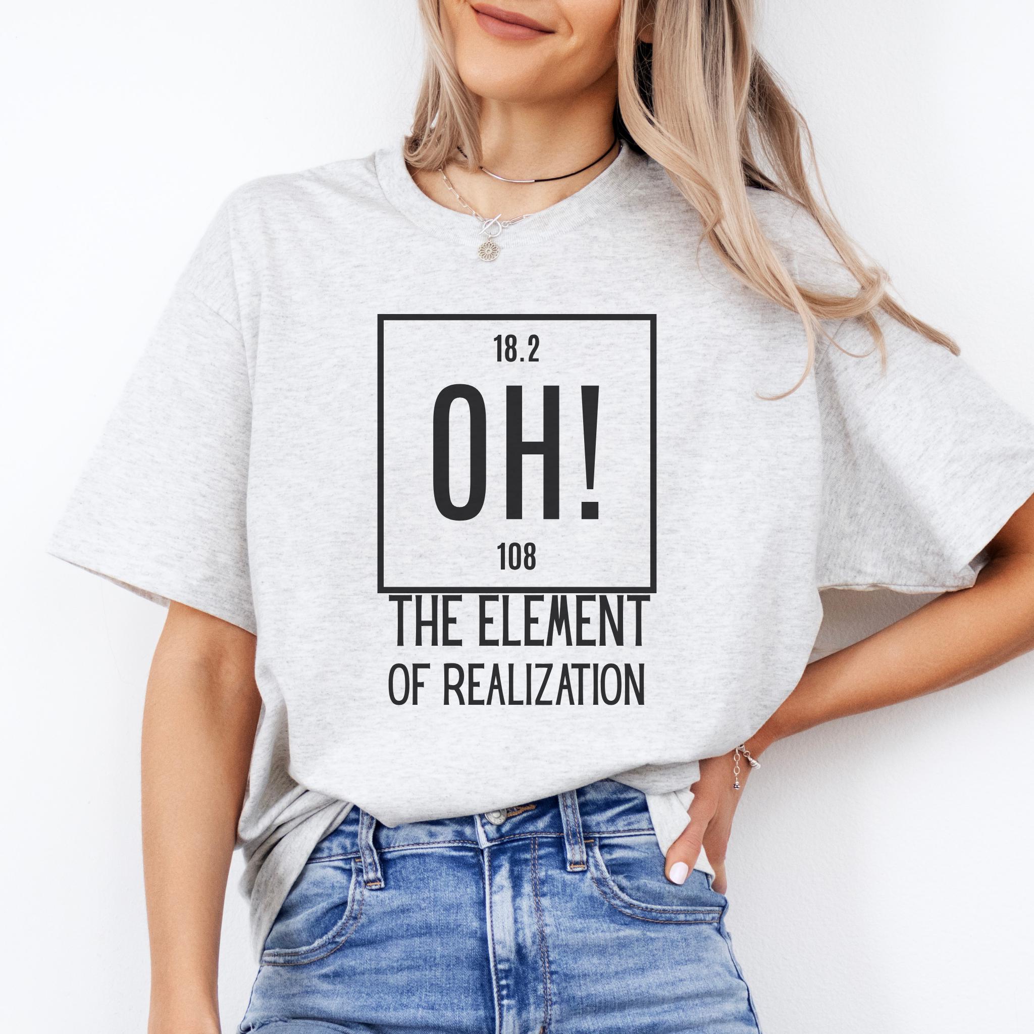Some moments hit all at once—and this clever OH! The Element of Realization shirt captures that feeling with smart humor and a clean minimalist design. It is the perfect mix of wit, surprise, and personality for anyone who loves science jokes with a sharp, relatable twist.