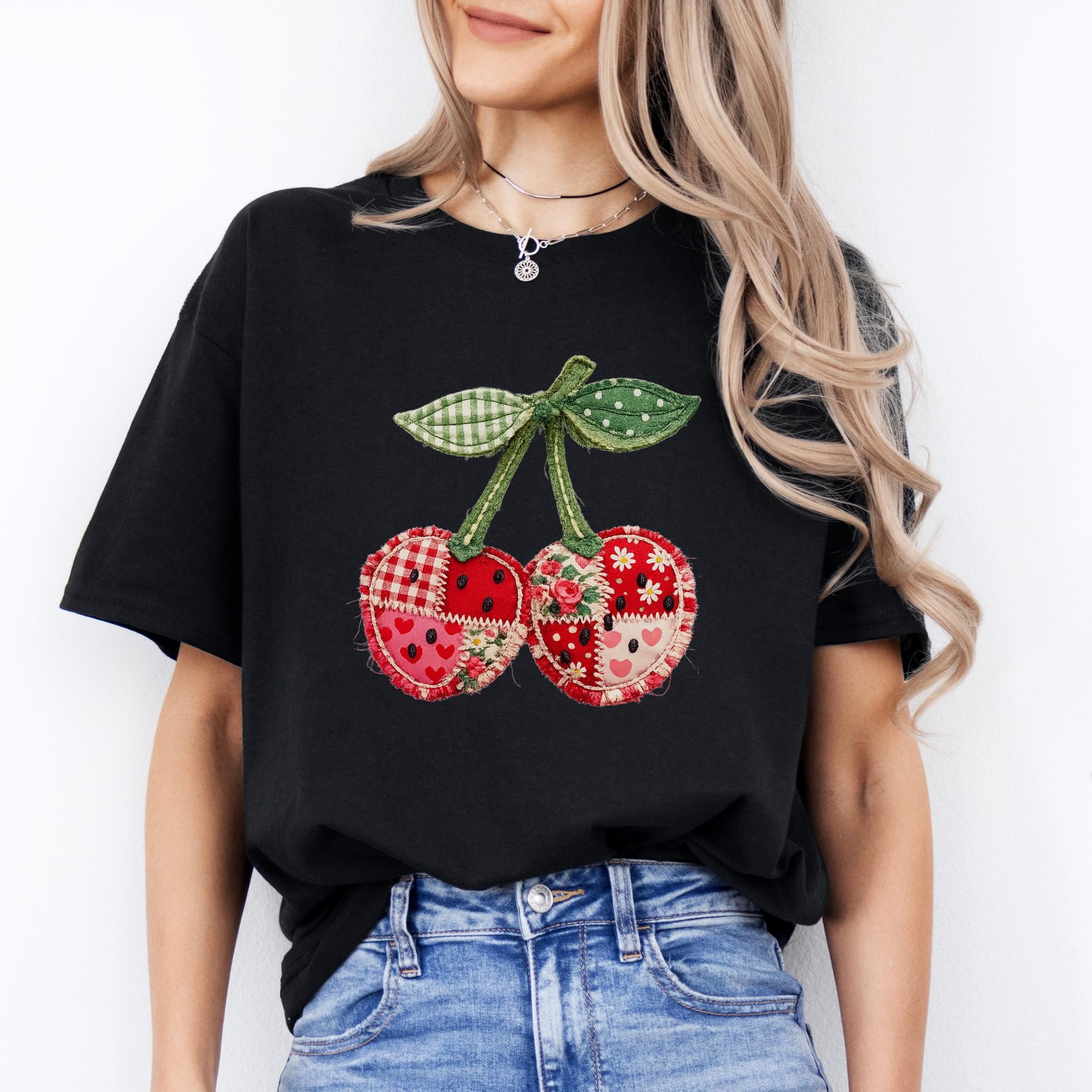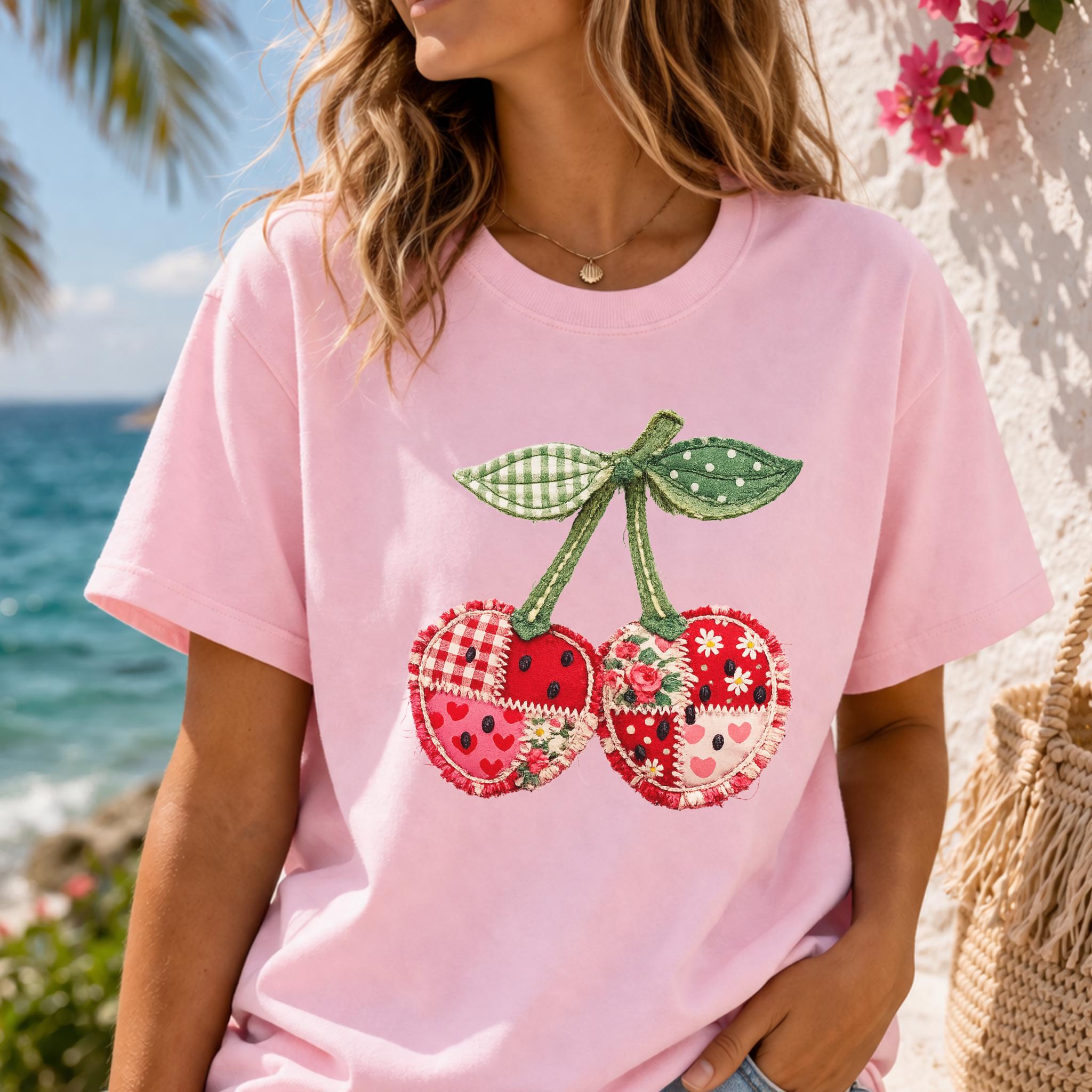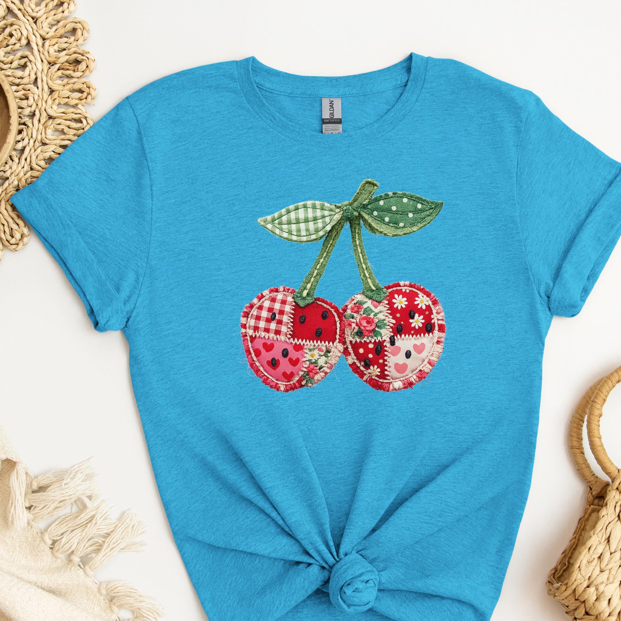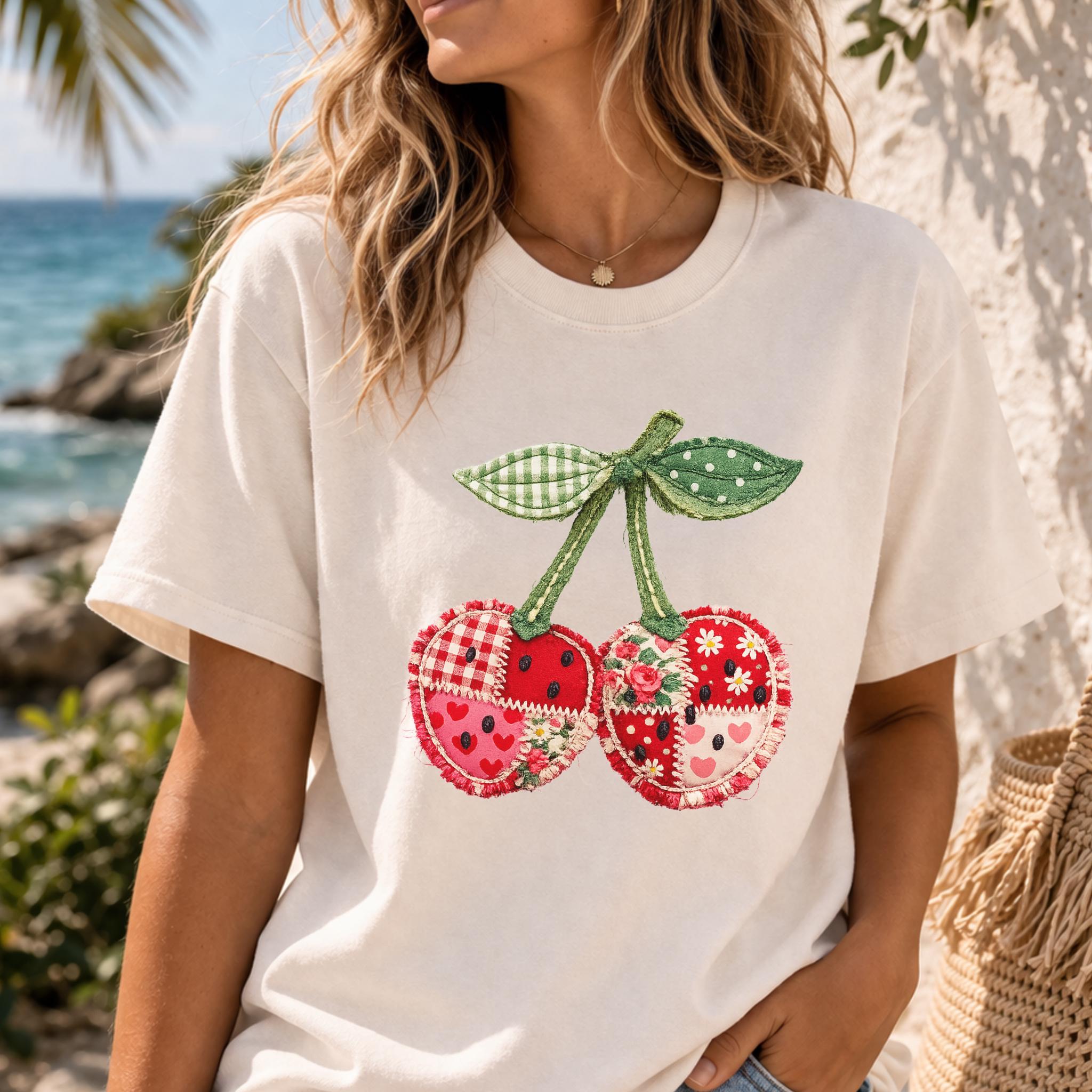 Its biggest strength is the way it blends coquette charm, patchwork texture, and cottagecore appeal into one eye-catching design that feels unique and easy to style. It works beautifully for summer outfits, casual everyday wear, and gift giving for anyone who loves girly, fruit-themed fashion. Printed using premium DTG (Direct to Garment) technology, this shirt offers a soft feel with vibrant, lasting detail that stays beautiful wear after wear.
