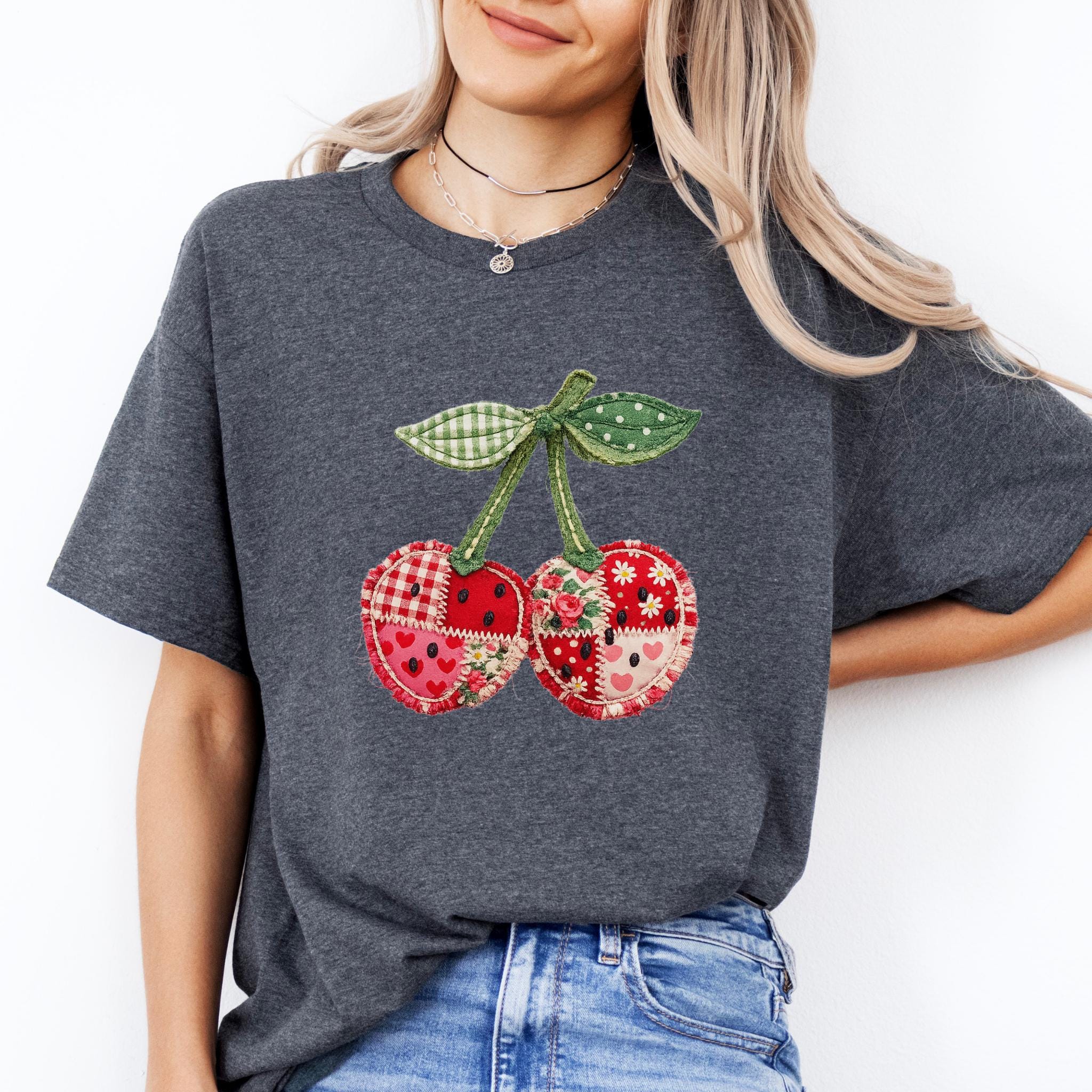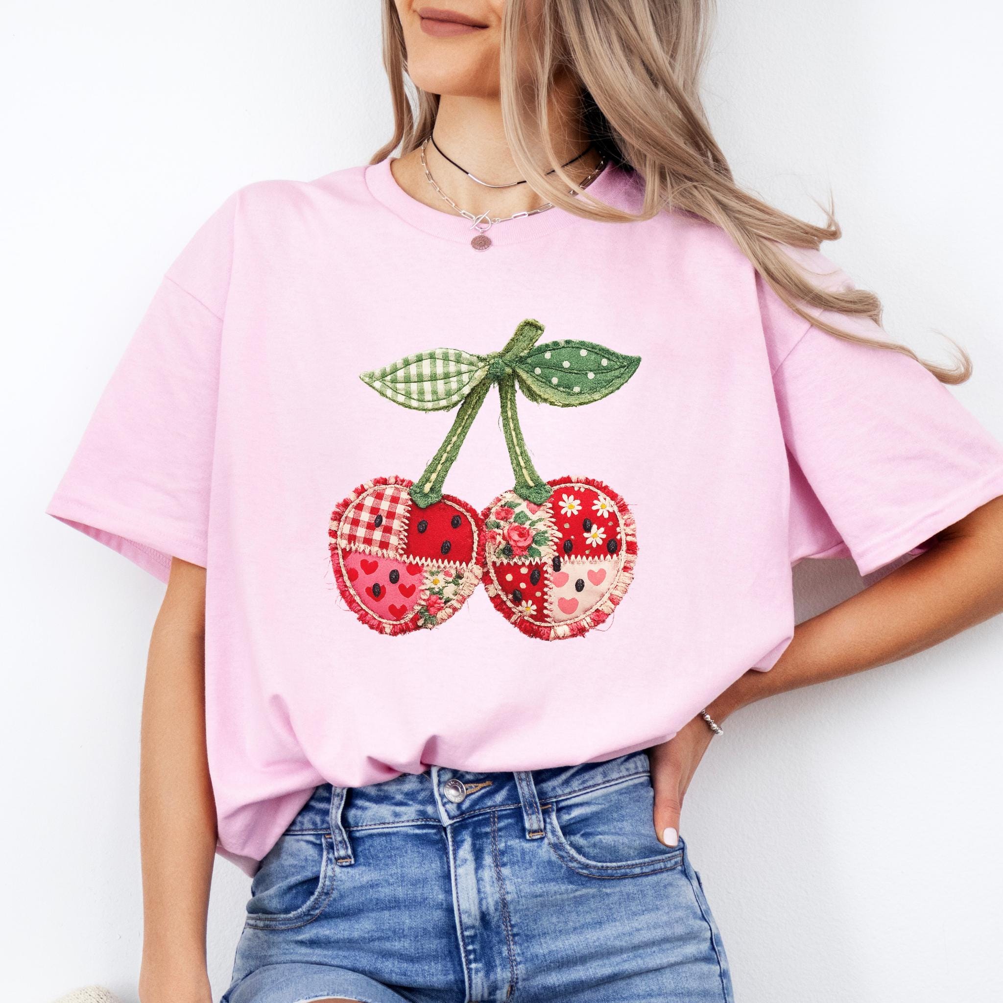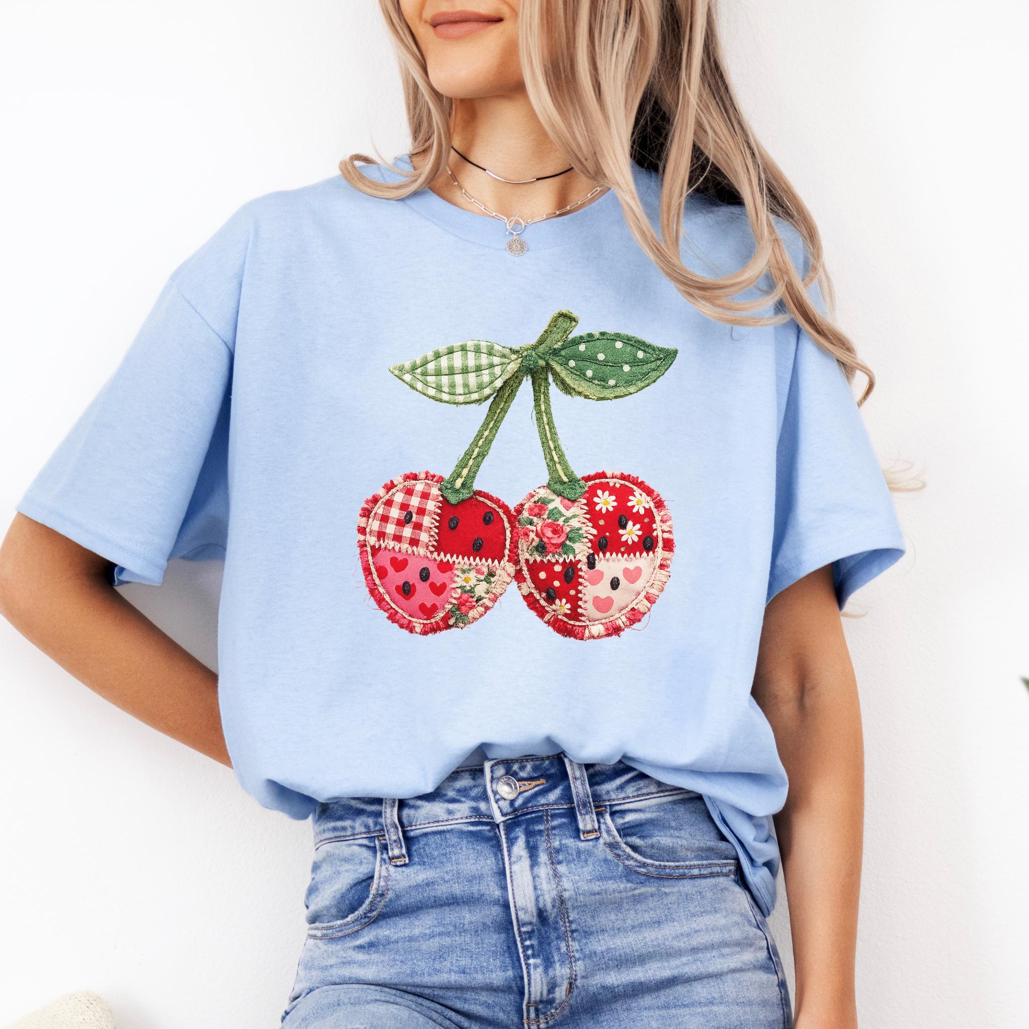 Its biggest strength is the way it blends coquette charm, patchwork texture, and cottagecore appeal into one eye-catching design that feels unique and easy to style. It works beautifully for summer outfits, casual everyday wear, and gift giving for anyone who loves girly, fruit-themed fashion. Printed using premium DTG (Direct to Garment) technology, this shirt offers a soft feel with vibrant, lasting detail that stays beautiful wear after wear.