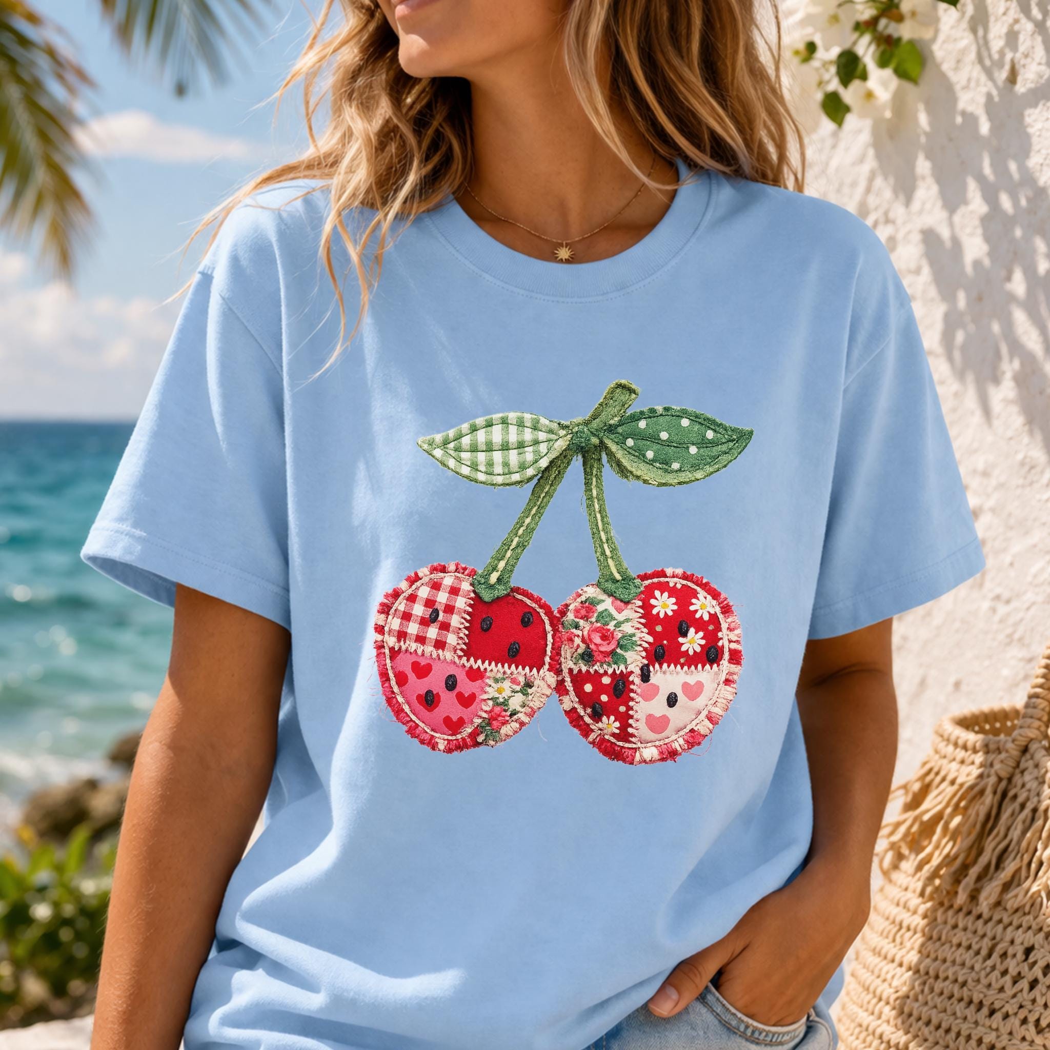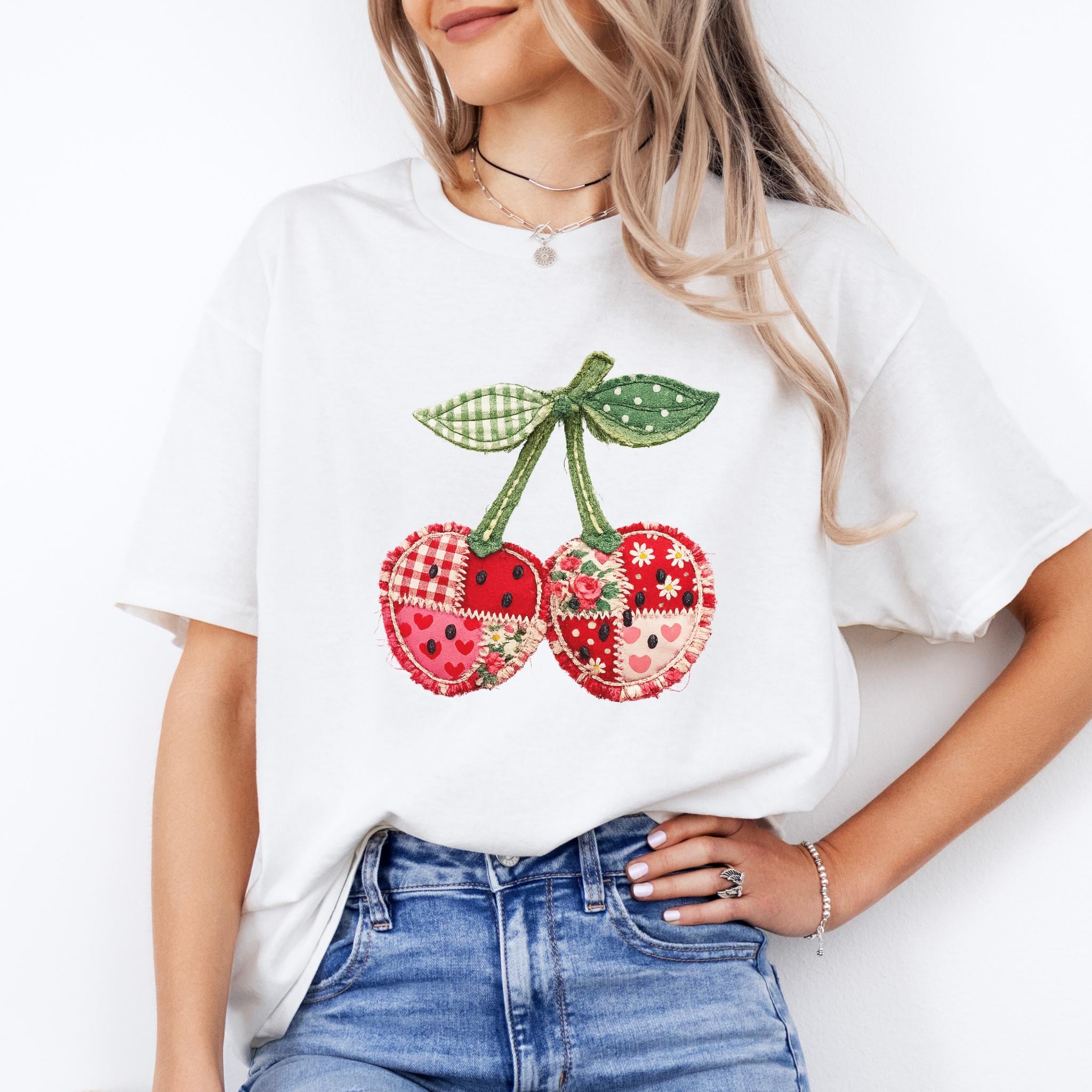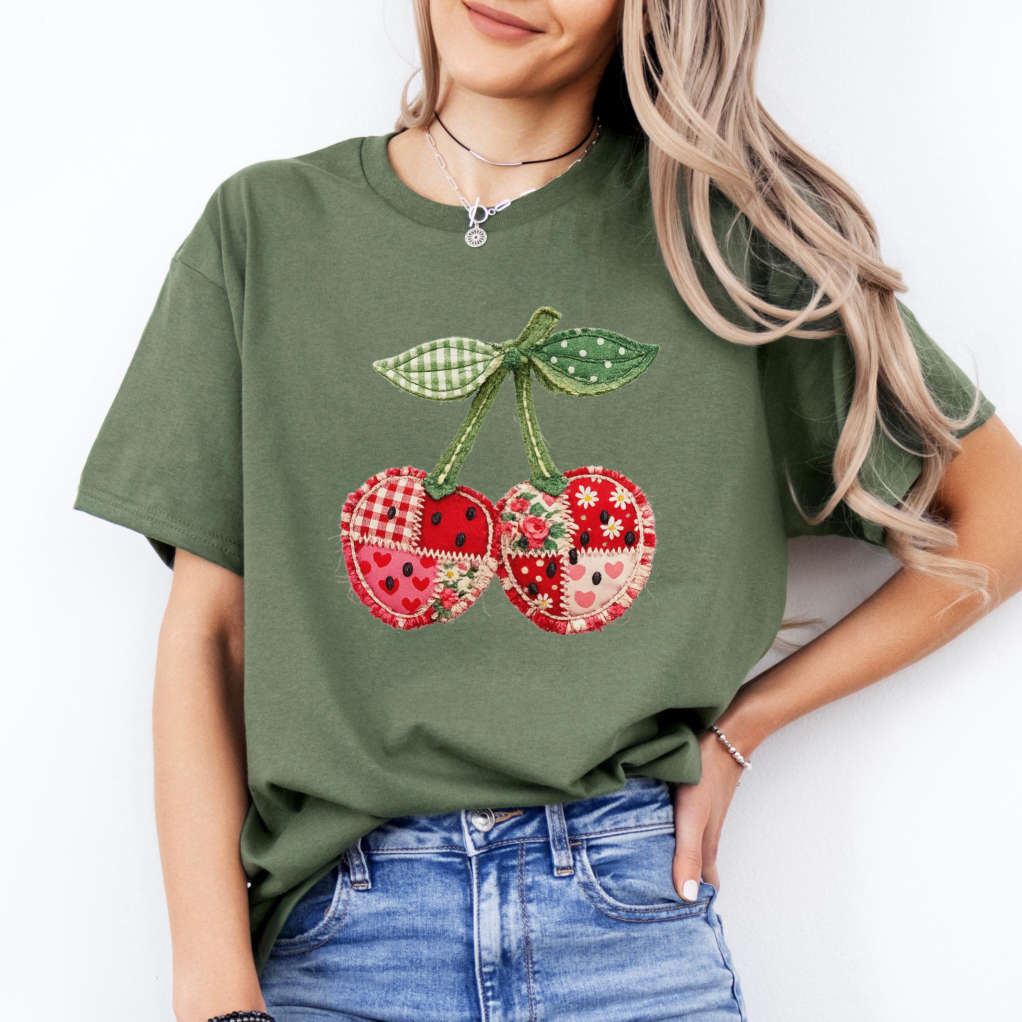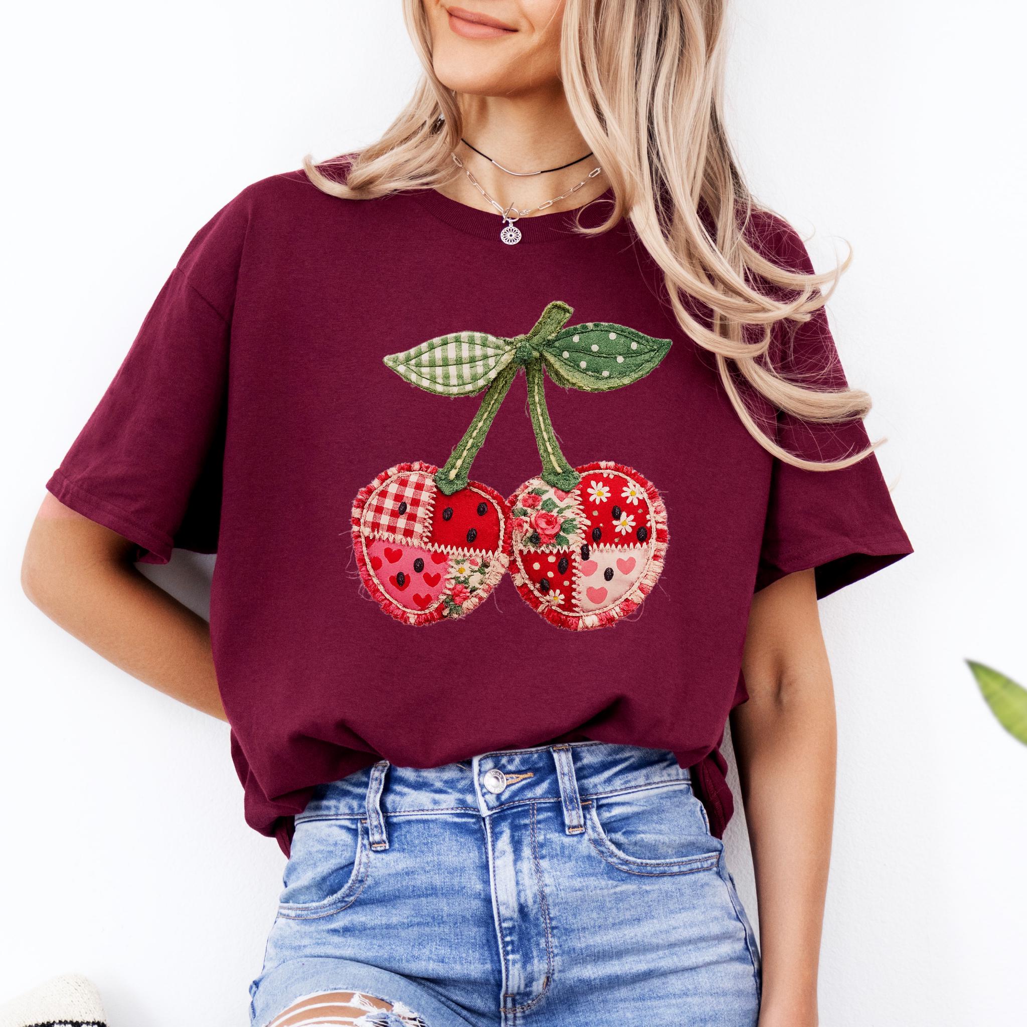 Its biggest strength is the way it blends coquette charm, patchwork texture, and cottagecore appeal into one eye-catching design that feels unique and easy to style. It works beautifully for summer outfits, casual everyday wear, and gift giving for anyone who loves girly, fruit-themed fashion. Printed using premium DTG (Direct to Garment) technology, this shirt offers a soft feel with vibrant, lasting detail that stays beautiful wear after wear.