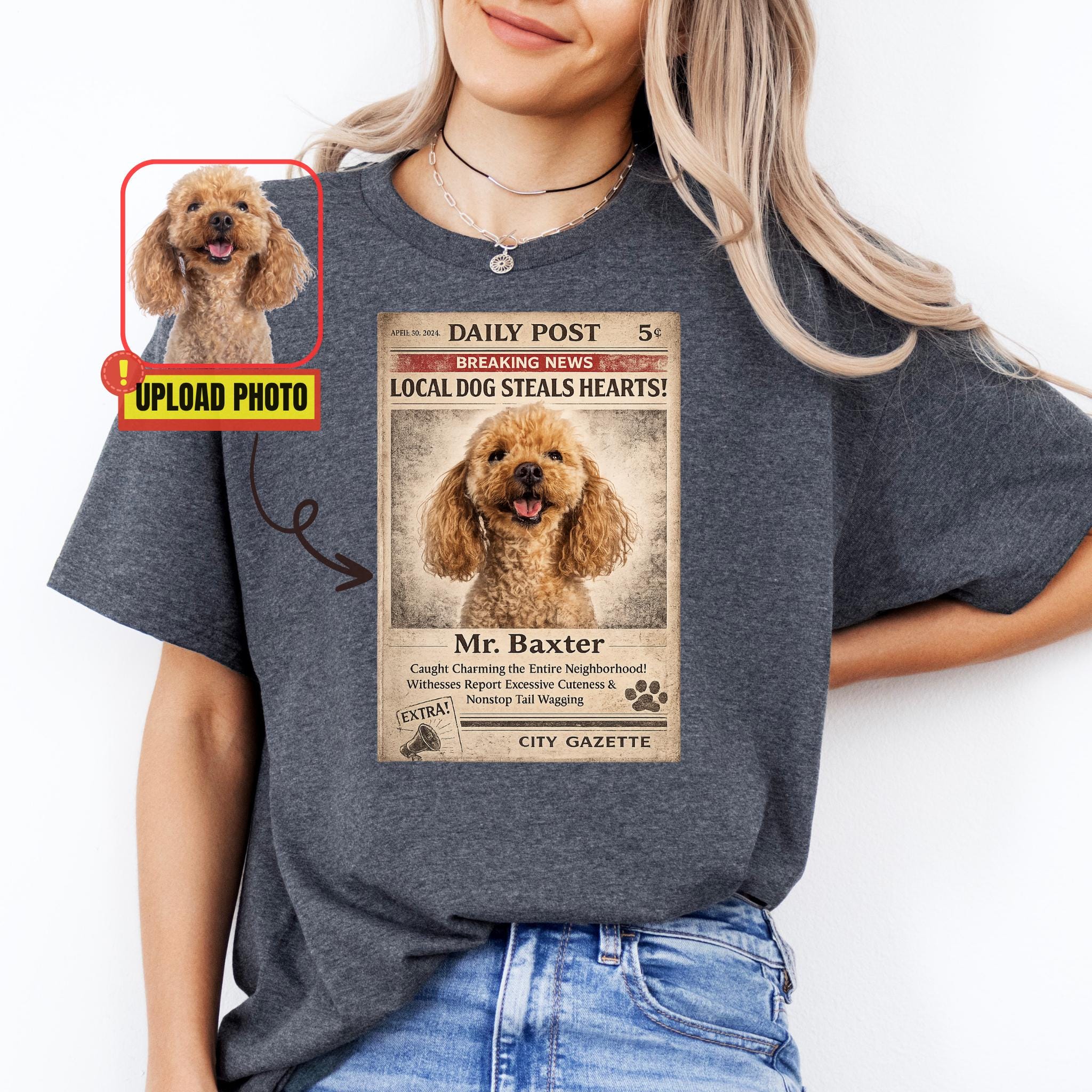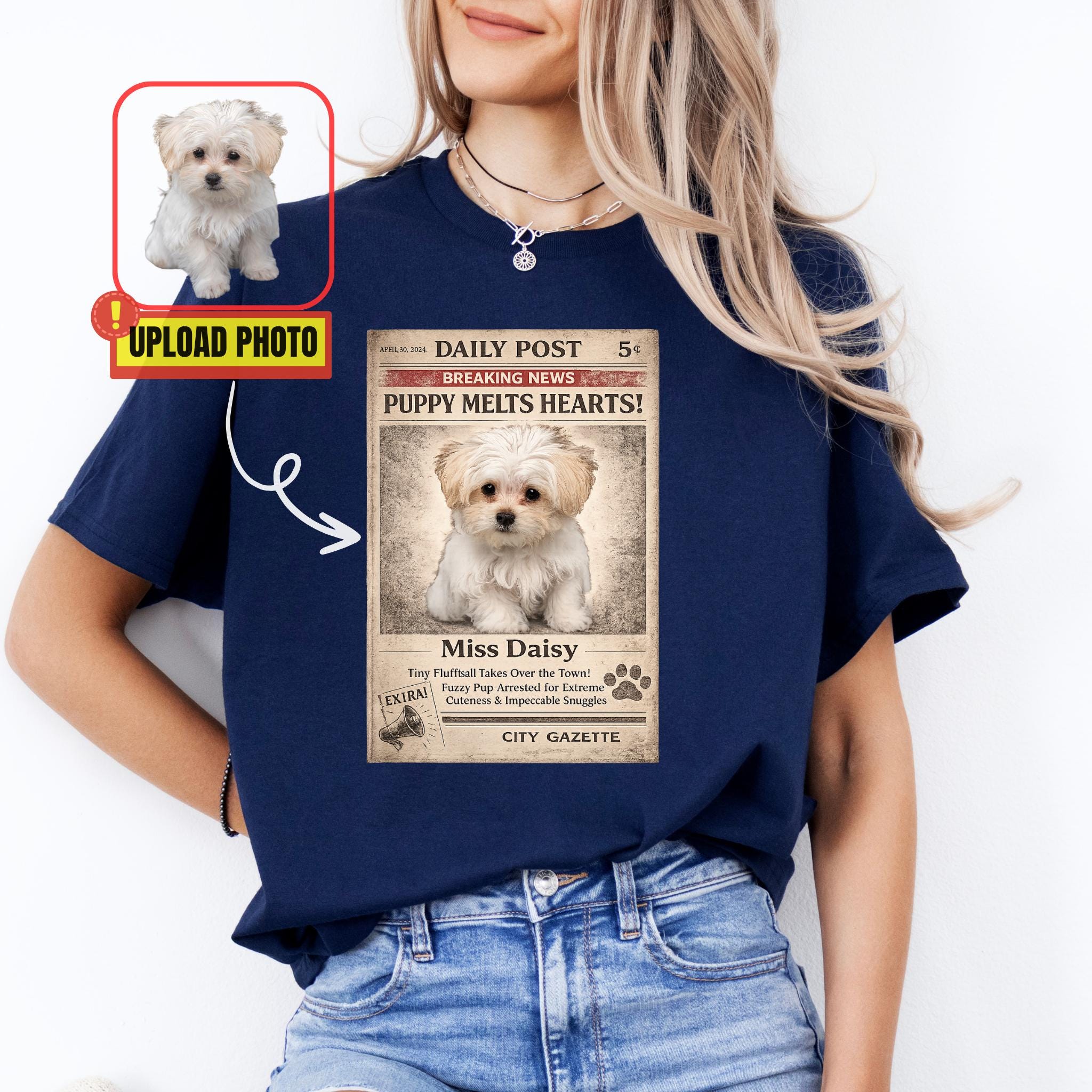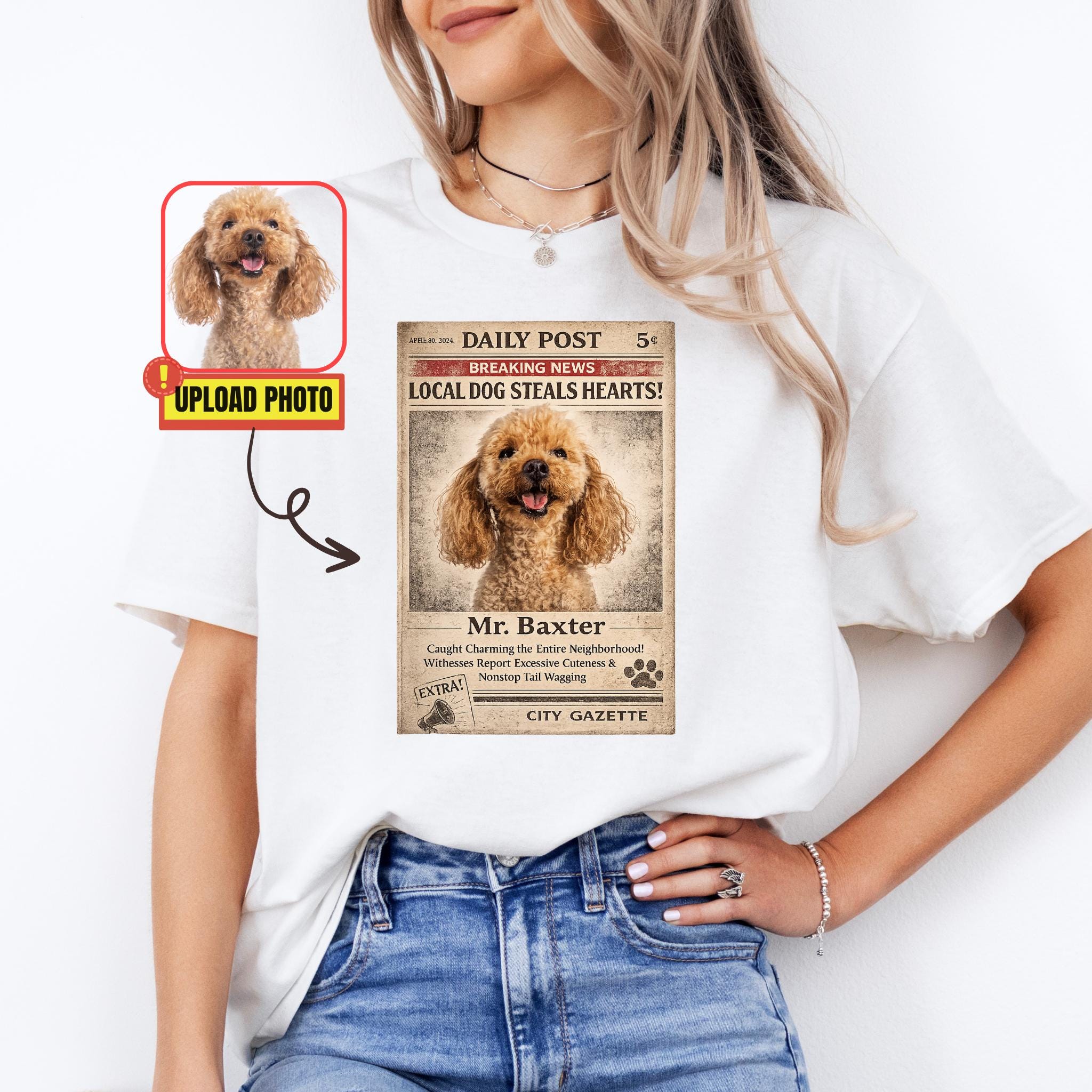 Turn your favorite furry face into a heart-melting keepsake with this playful Custom Dog Photo Shirt. Designed like a vintage newspaper front page, this tee captures the joy, personality, and nonstop charm that makes your dog impossible not to love.