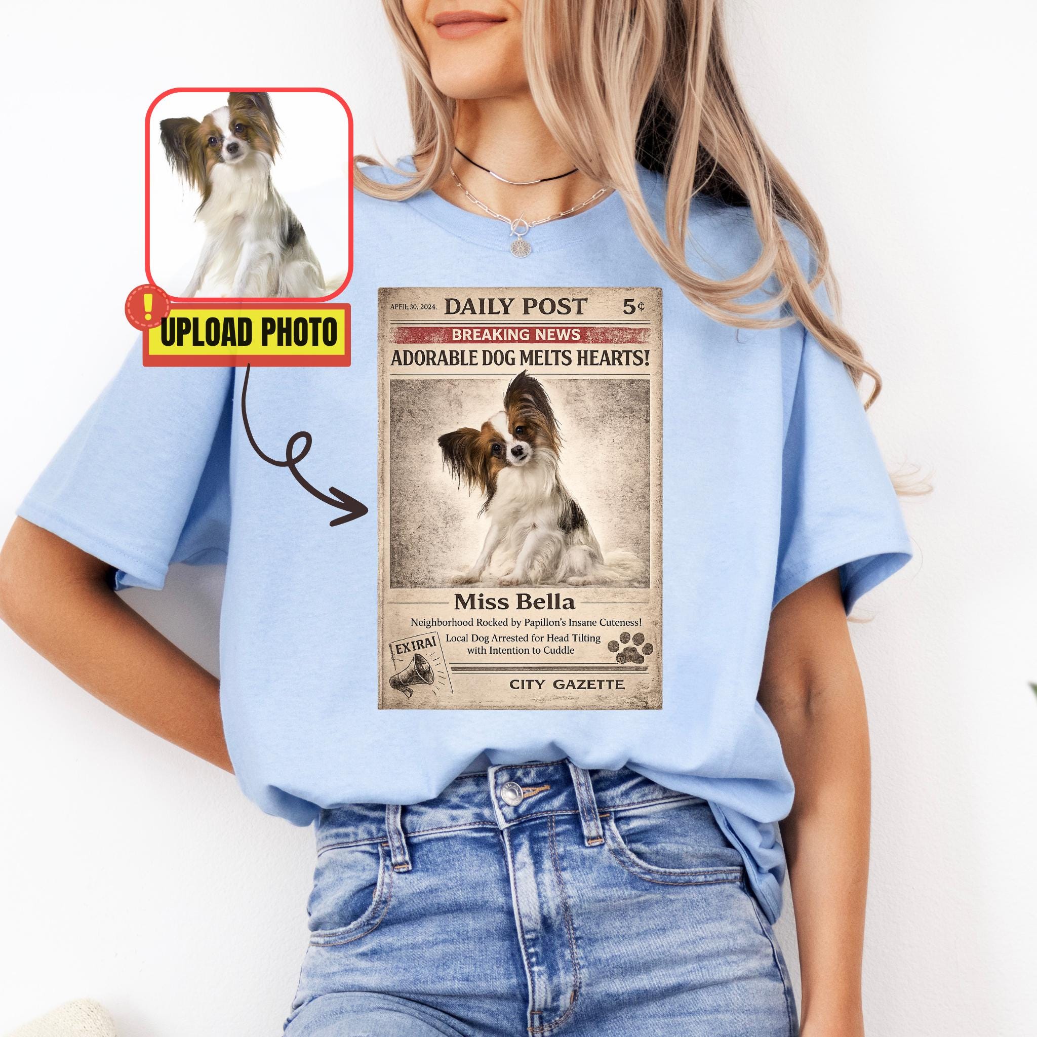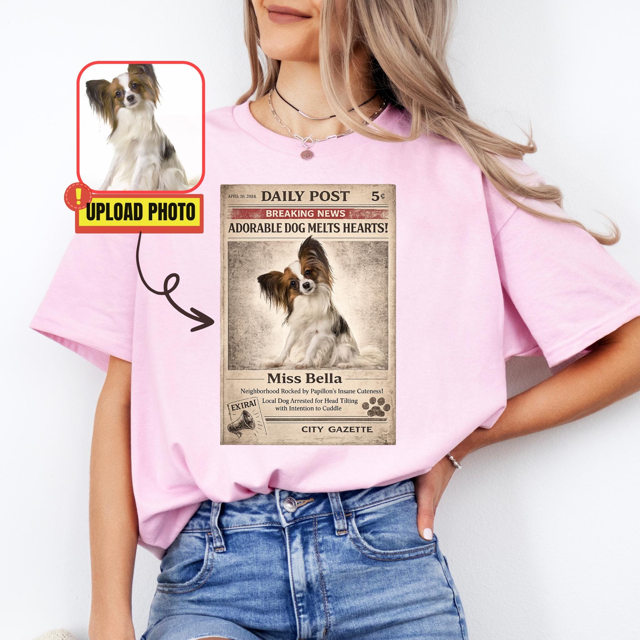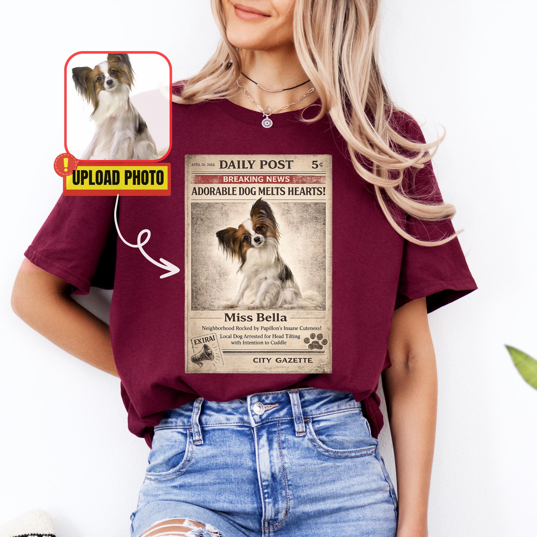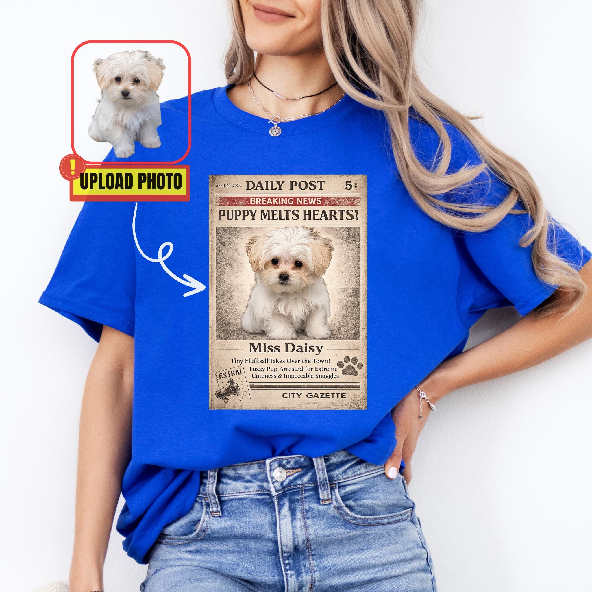 Turn your favorite furry face into a heart-melting keepsake with this playful Custom Dog Photo Shirt. Designed like a vintage newspaper front page, this tee captures the joy, personality, and nonstop charm that makes your dog impossible not to love.